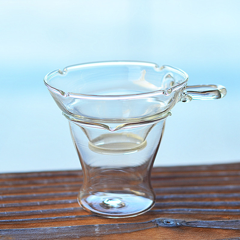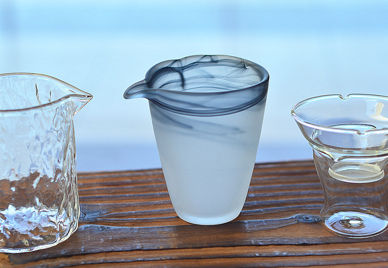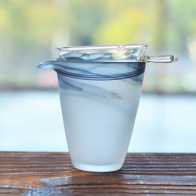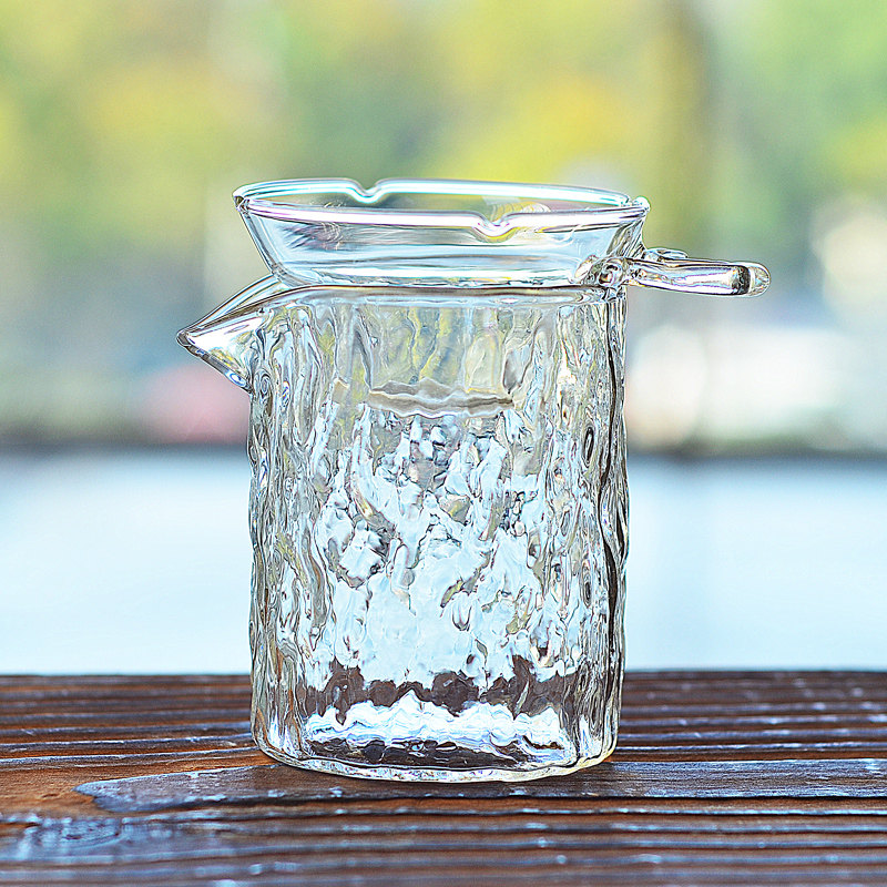 家用公道杯樹皮茶杯錘紋玻璃功夫茶具日式水墨風泡茶琉璃茶漏套裝