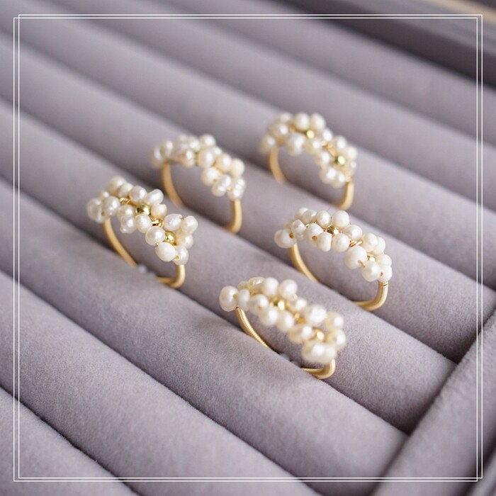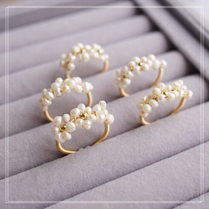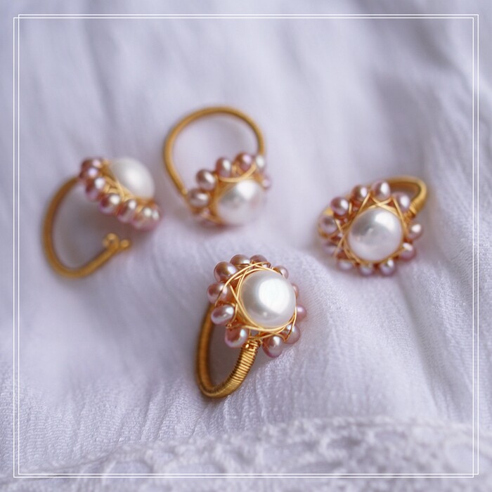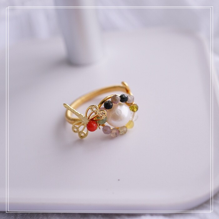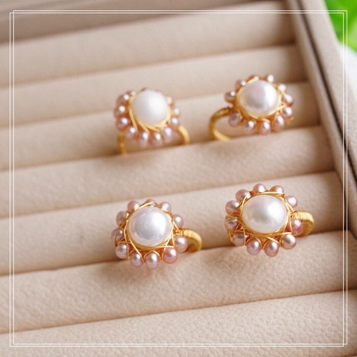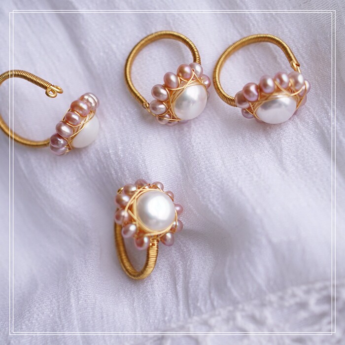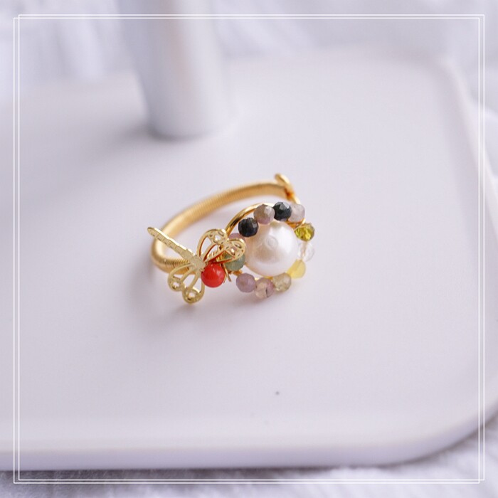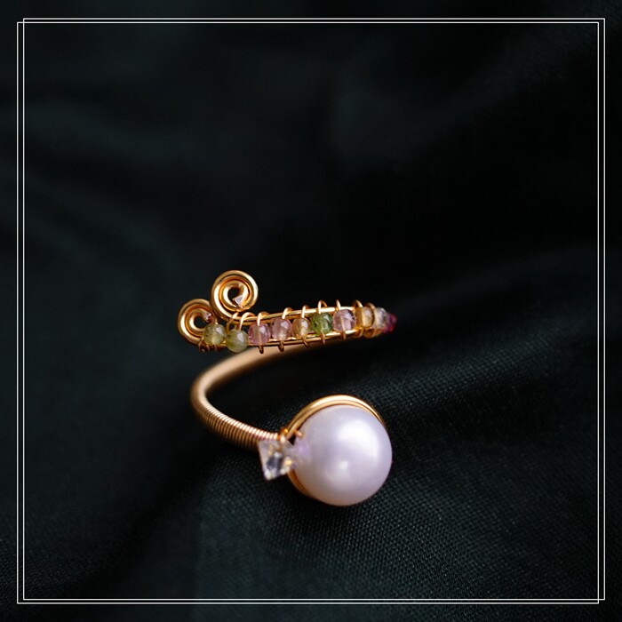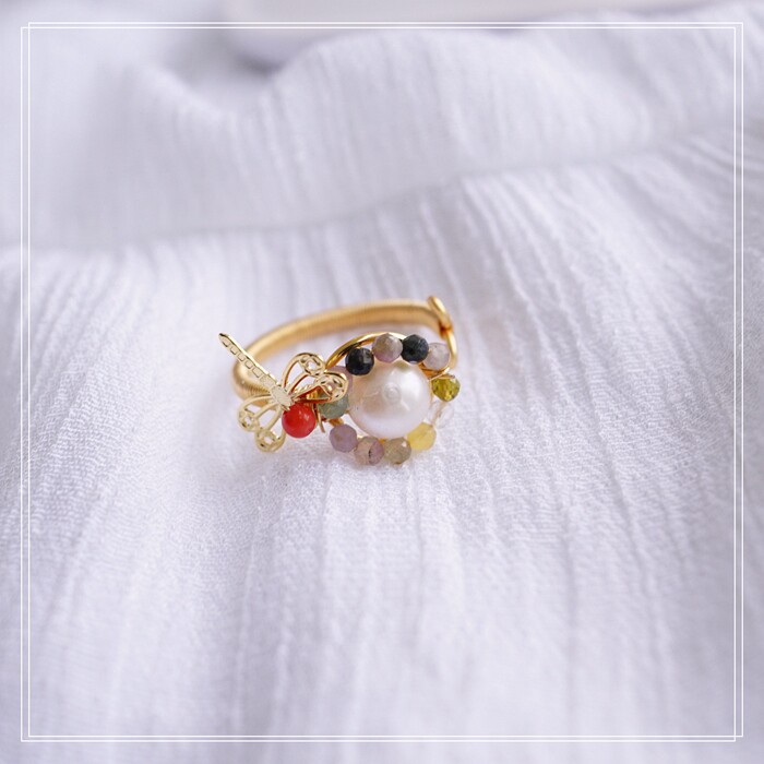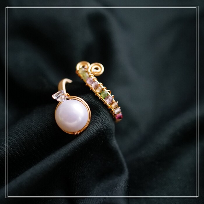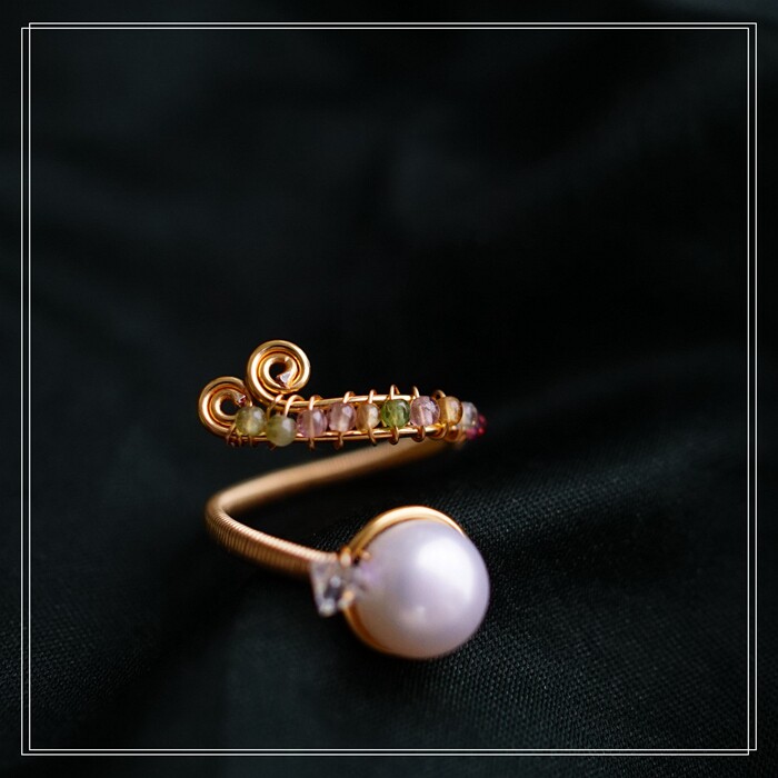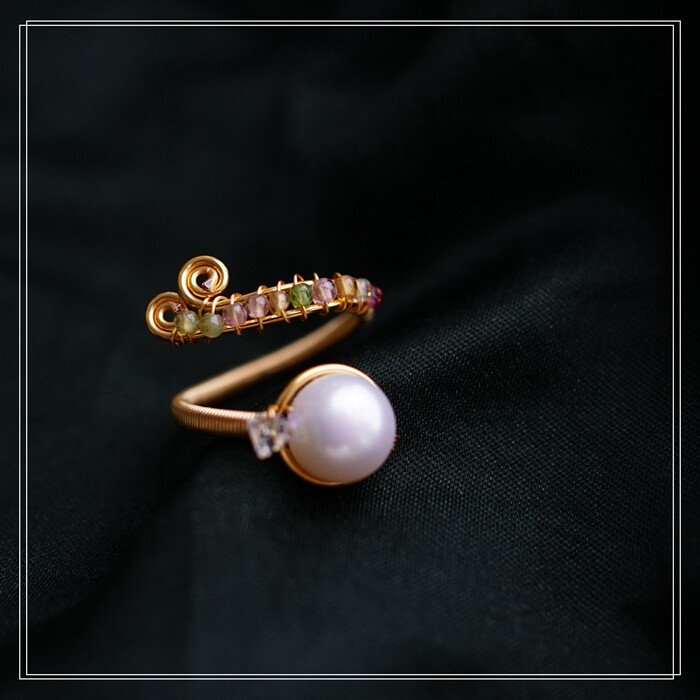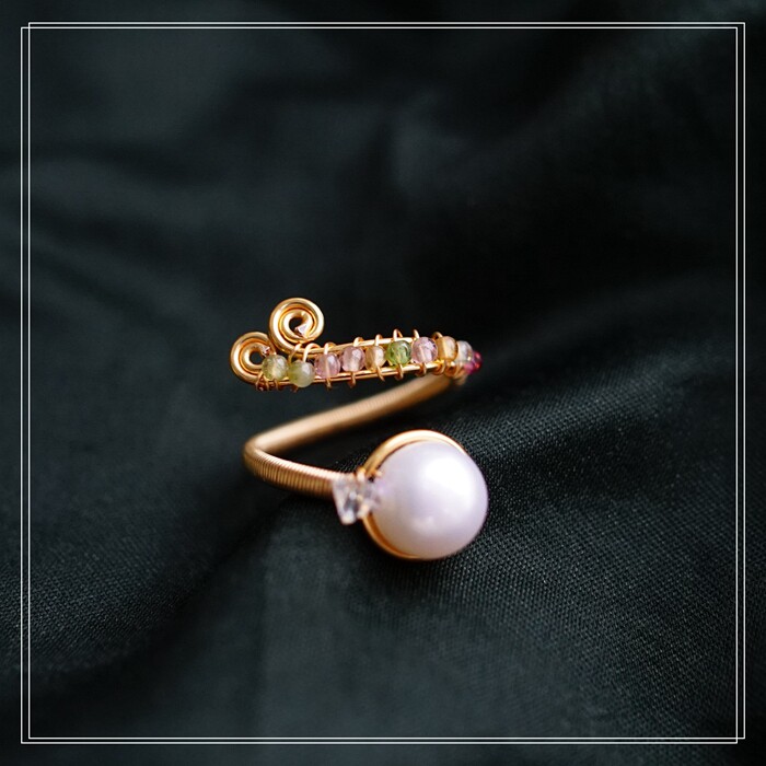 全部手工制作的14K戒指繞線纏繞 淡水珍珠珍珠蜜蠟碧璽等天然寶石