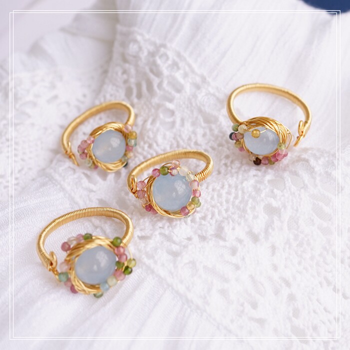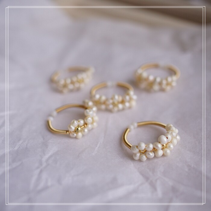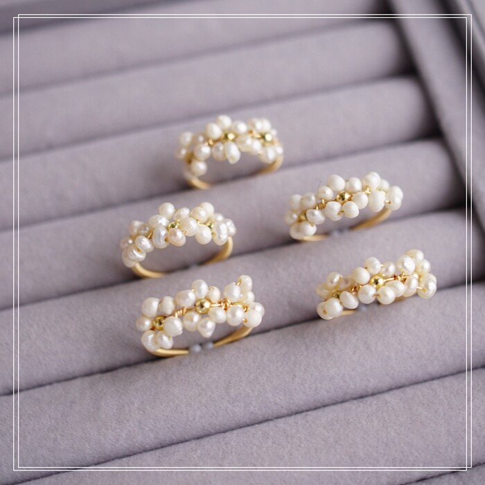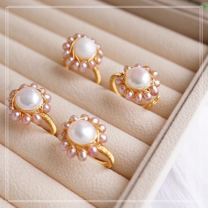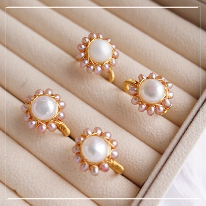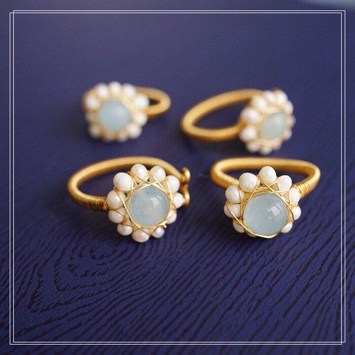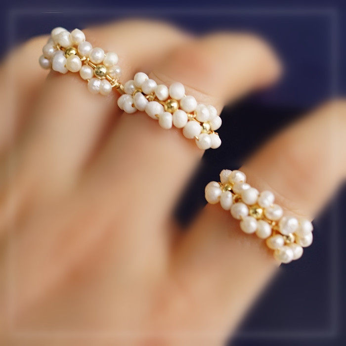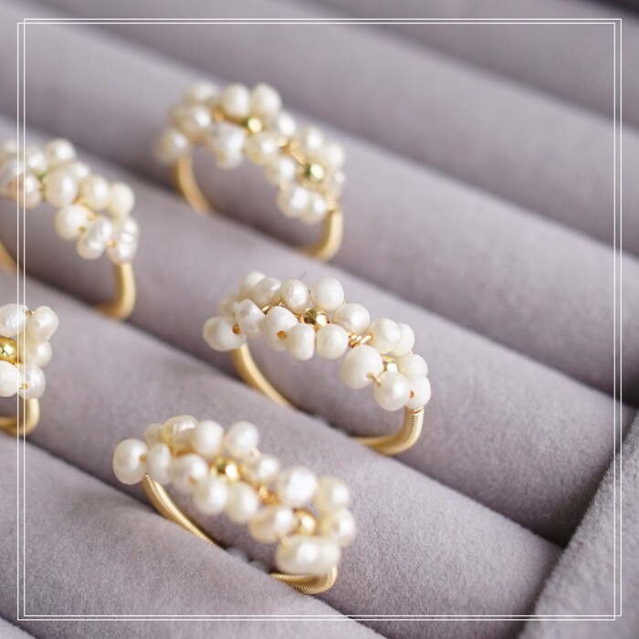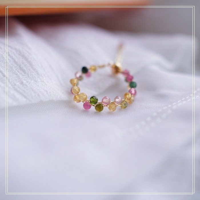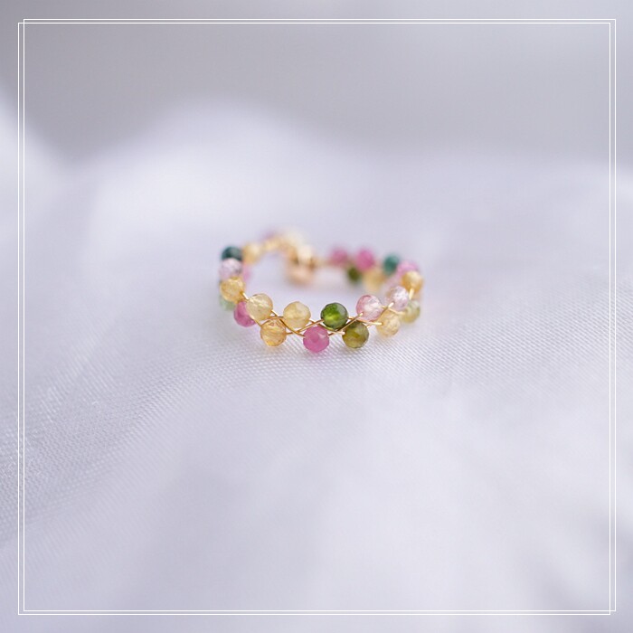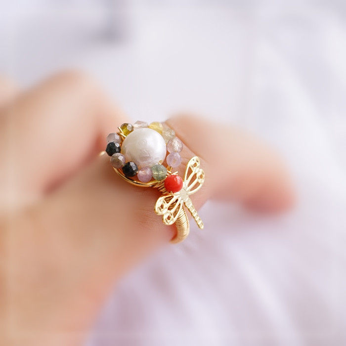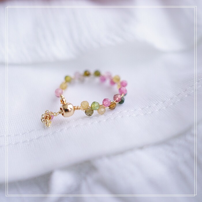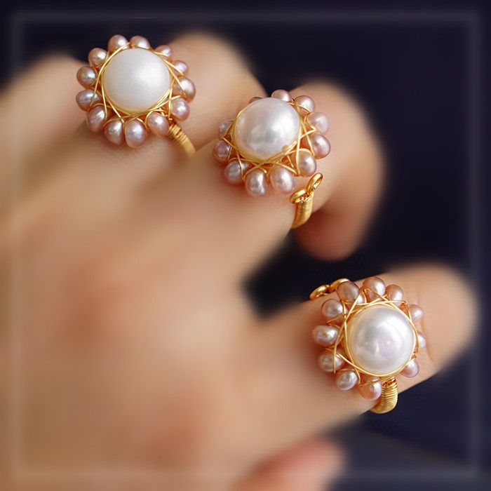 全部手工制作的14K戒指繞線纏繞 淡水珍珠珍珠蜜蠟碧璽等天然寶石
