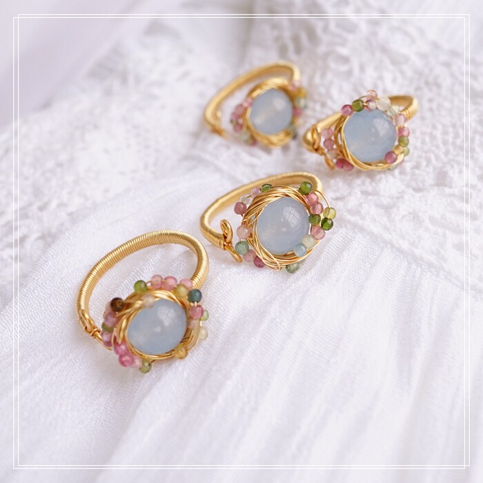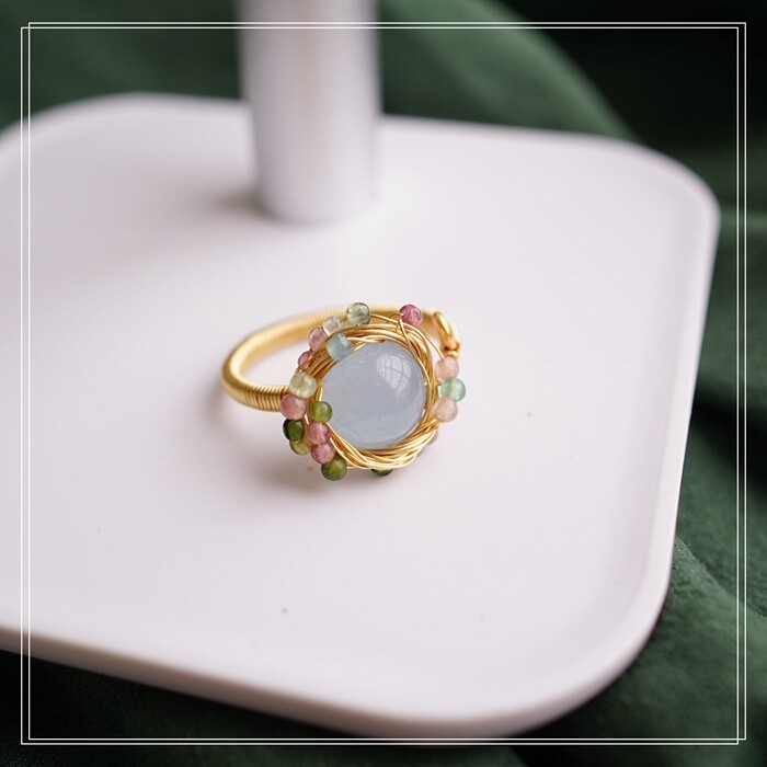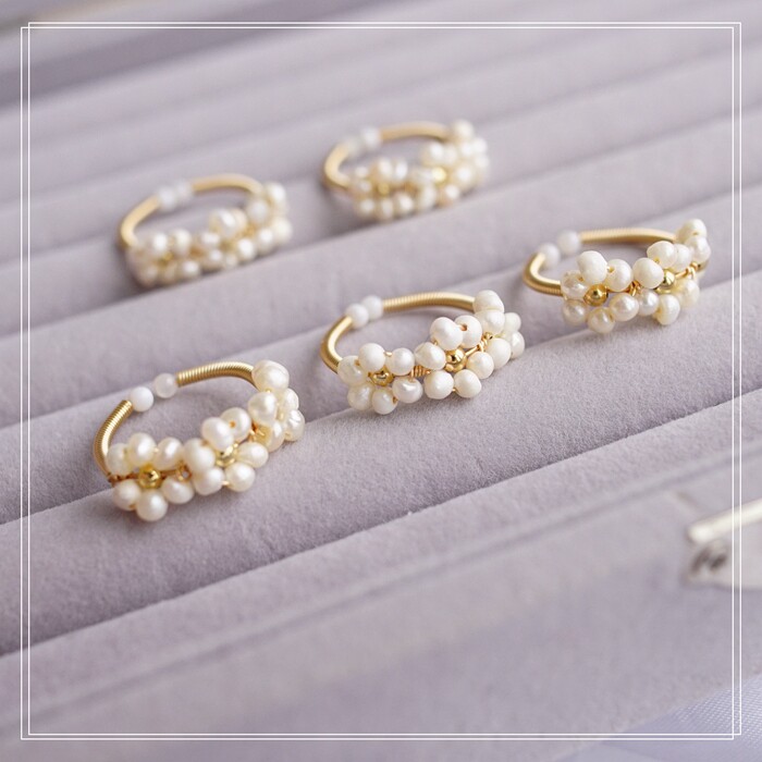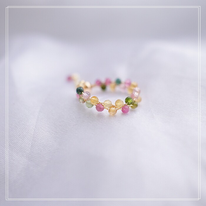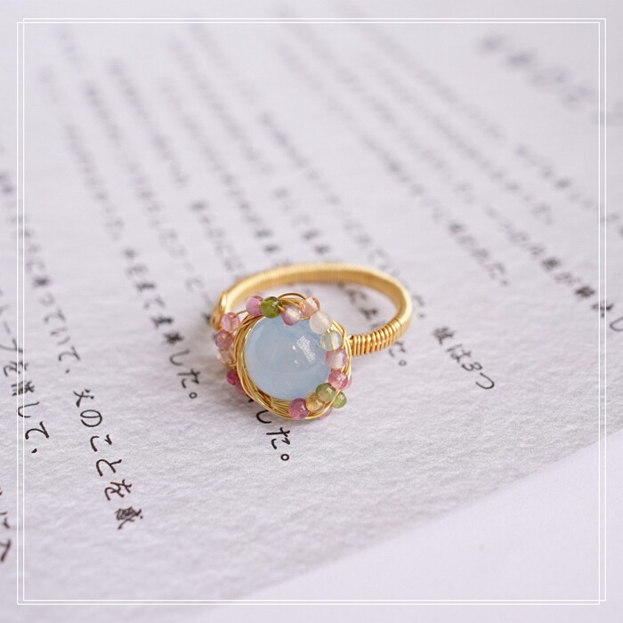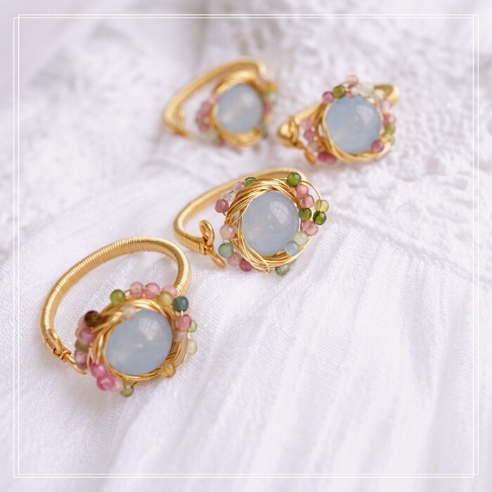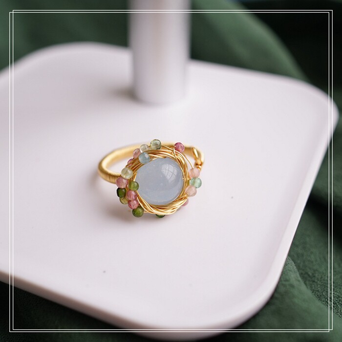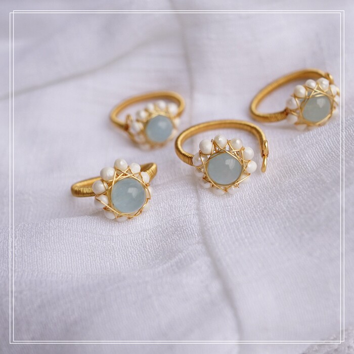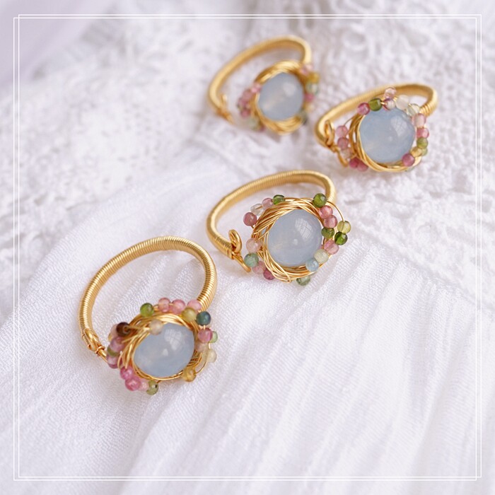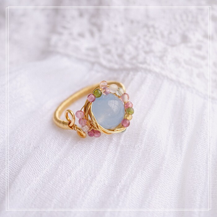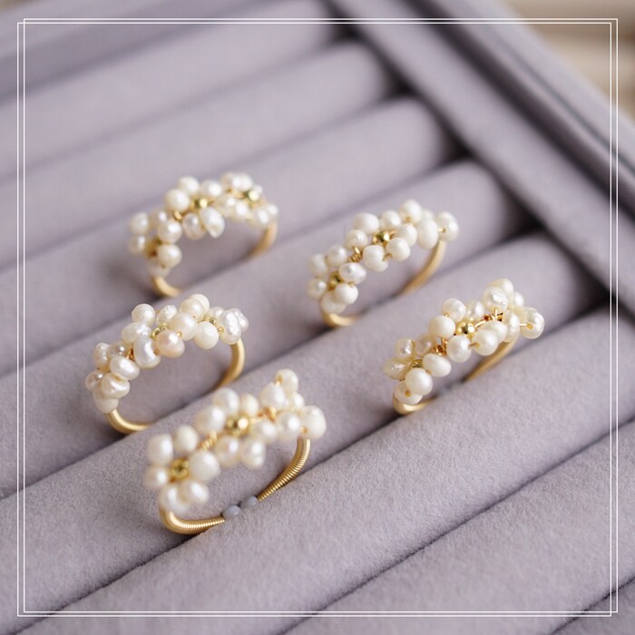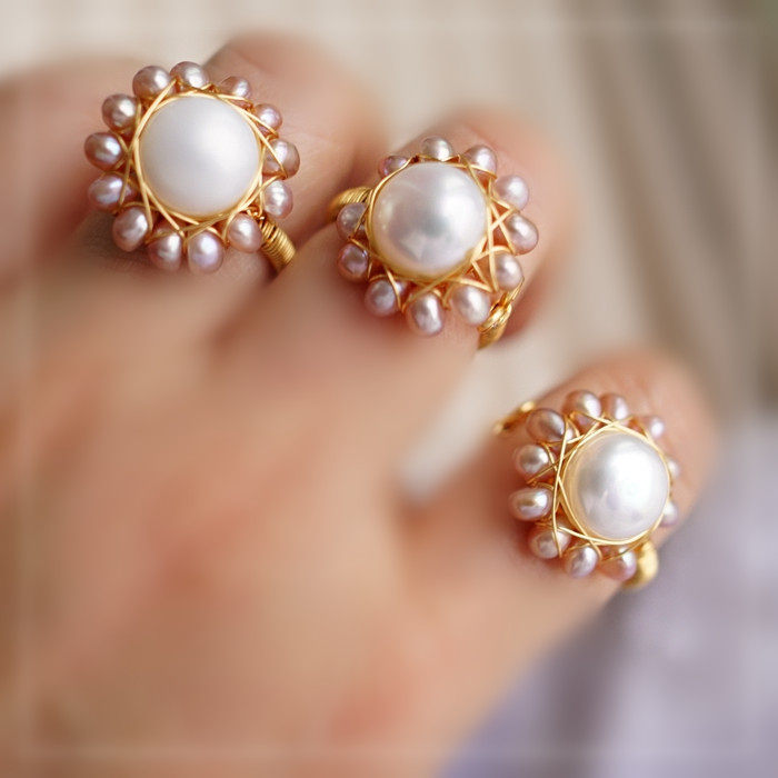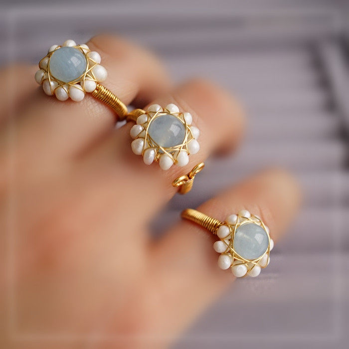 全部手工制作的14K戒指繞線纏繞 淡水珍珠珍珠蜜蠟碧璽等天然寶石