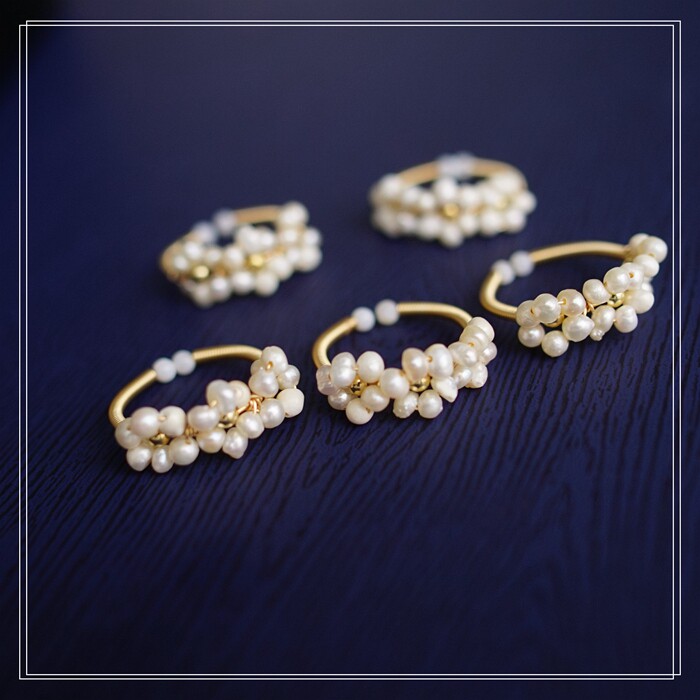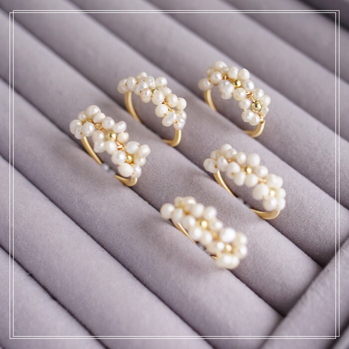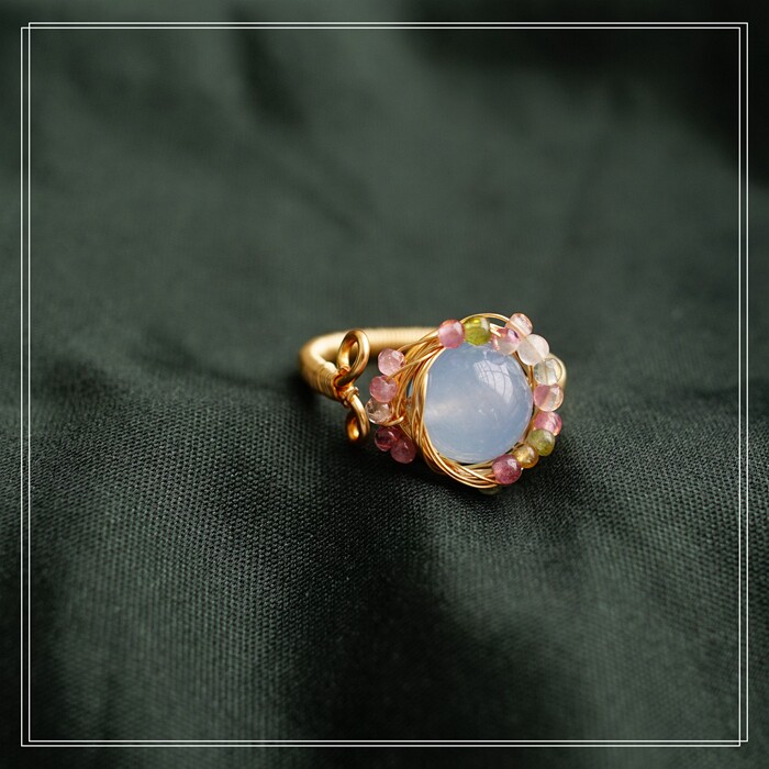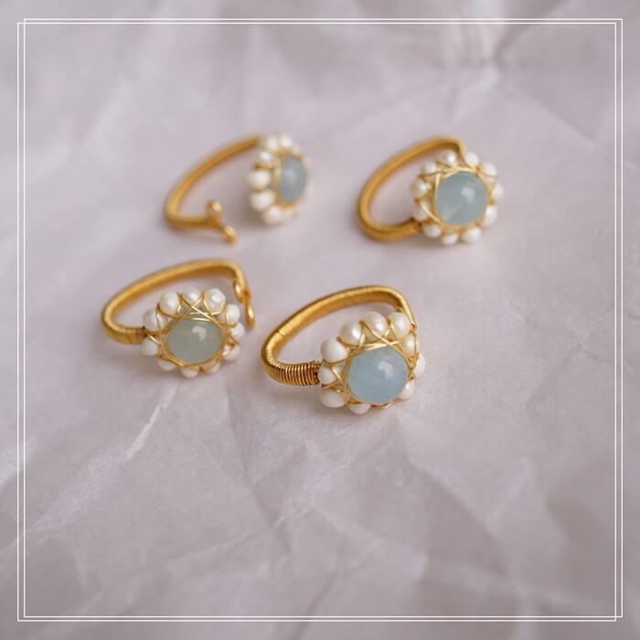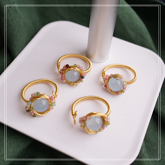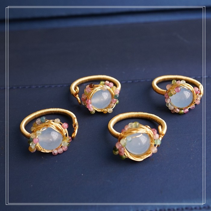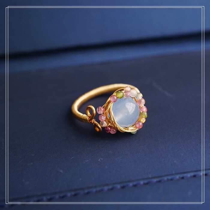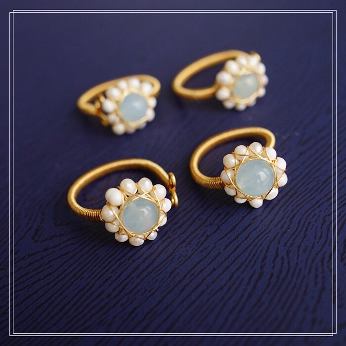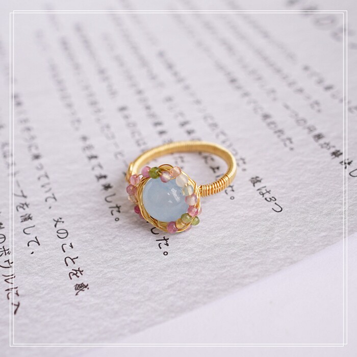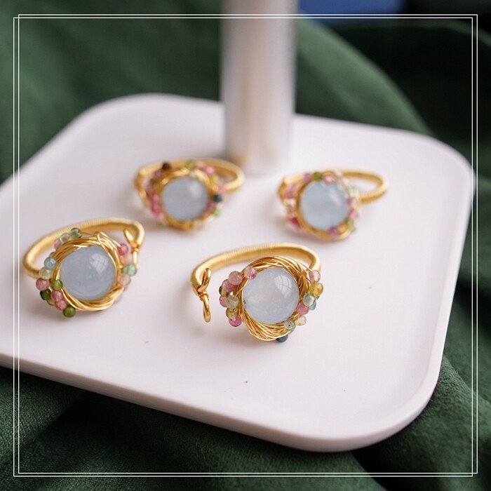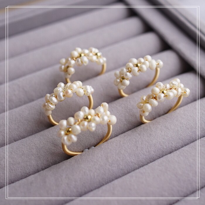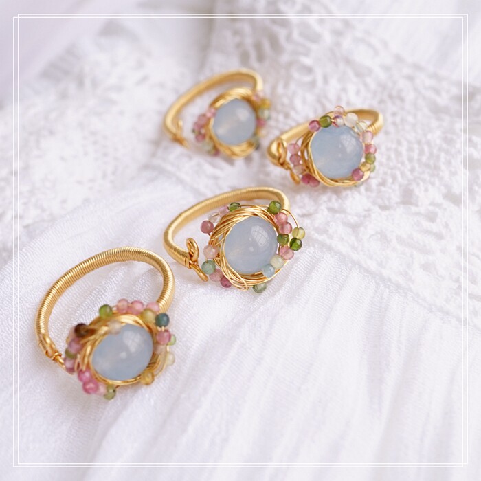 全部手工制作的14K戒指繞線纏繞 淡水珍珠珍珠蜜蠟碧璽等天然寶石
