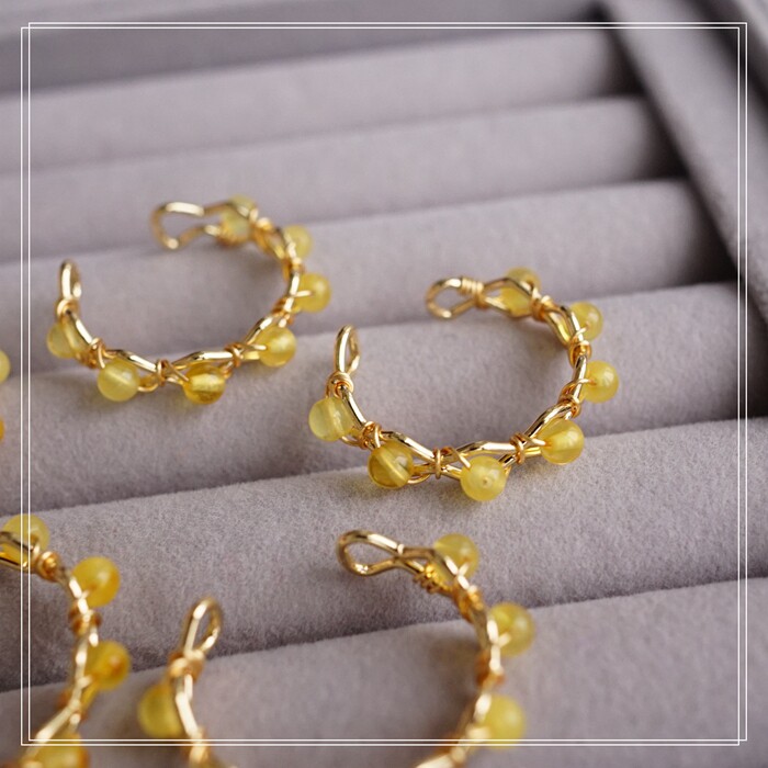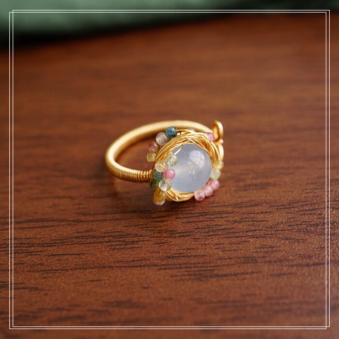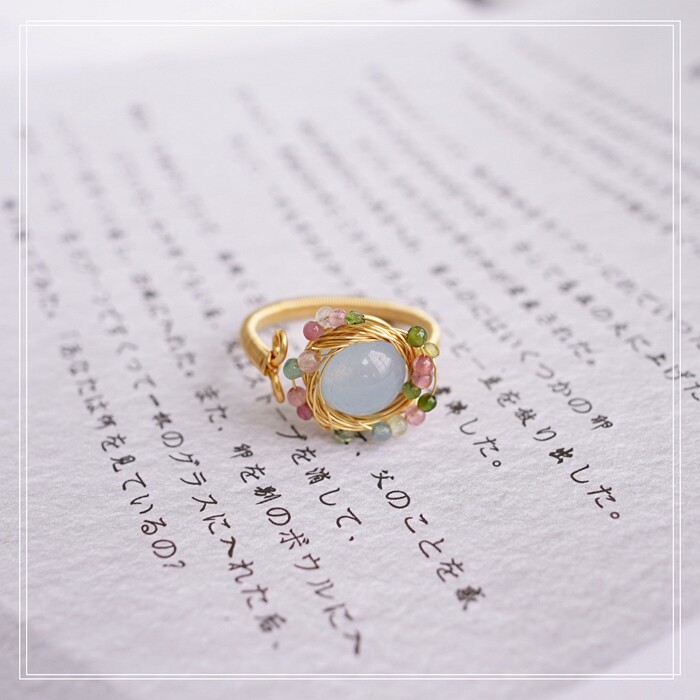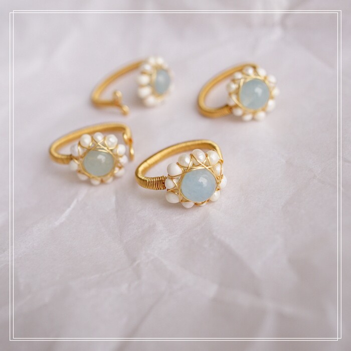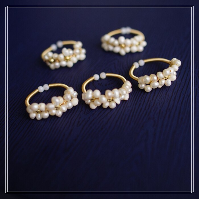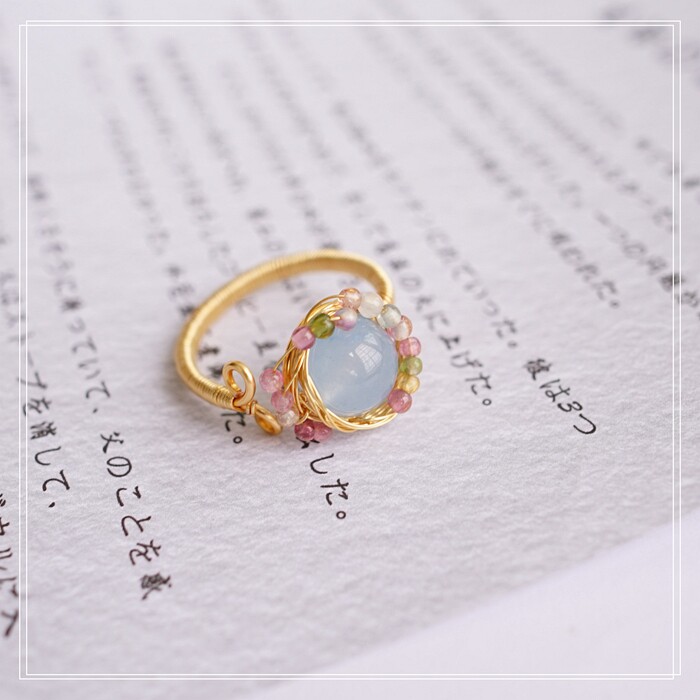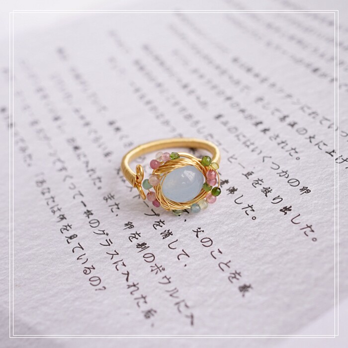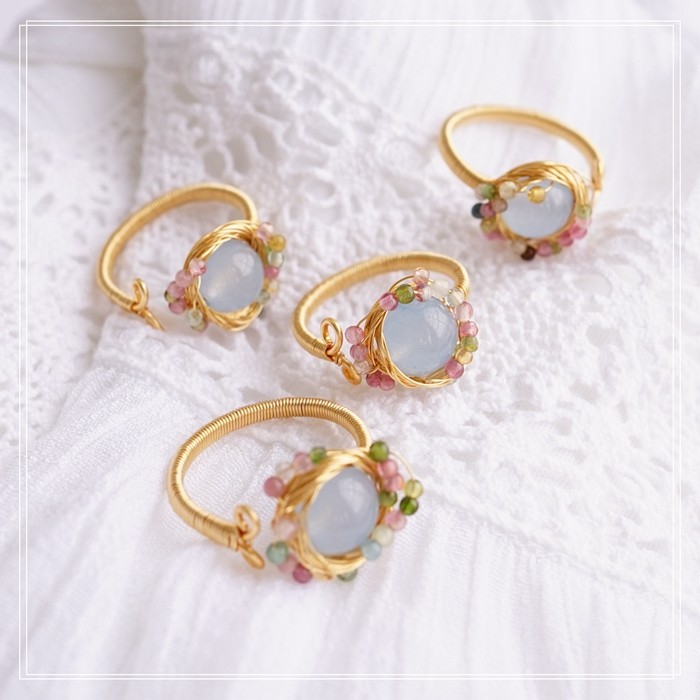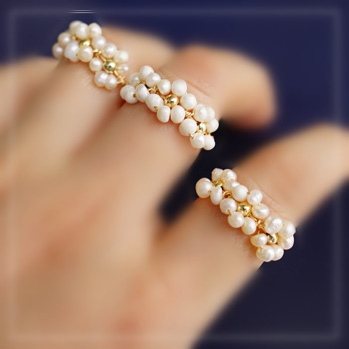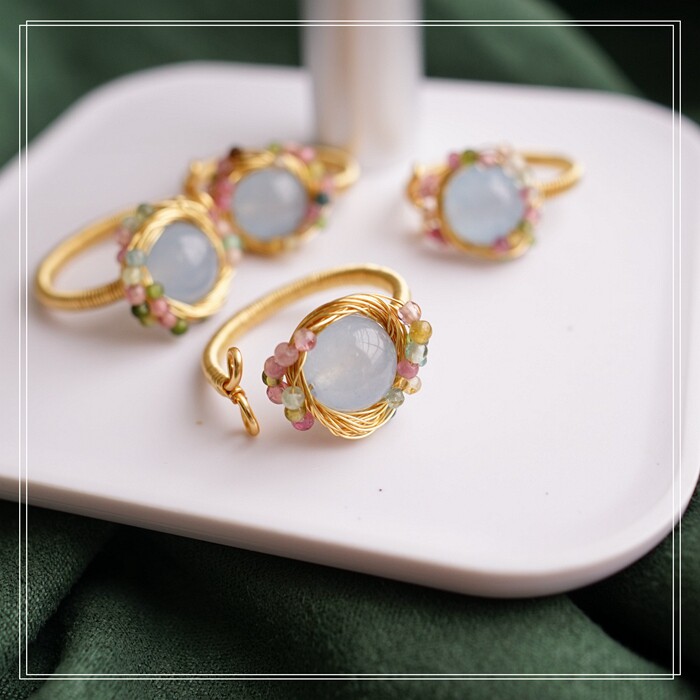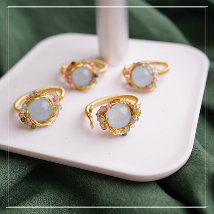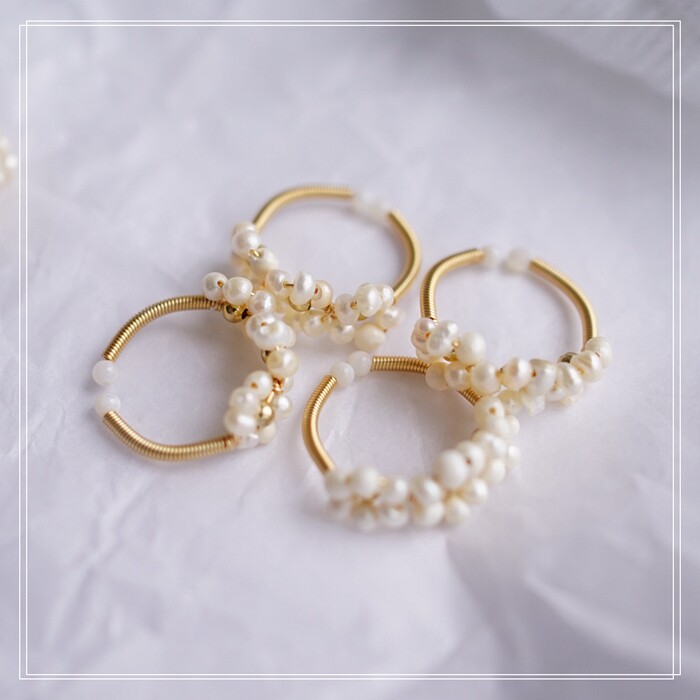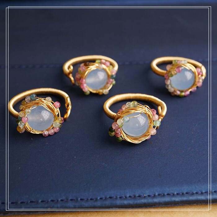 全部手工制作的14K戒指繞線纏繞 淡水珍珠珍珠蜜蠟碧璽等天然寶石