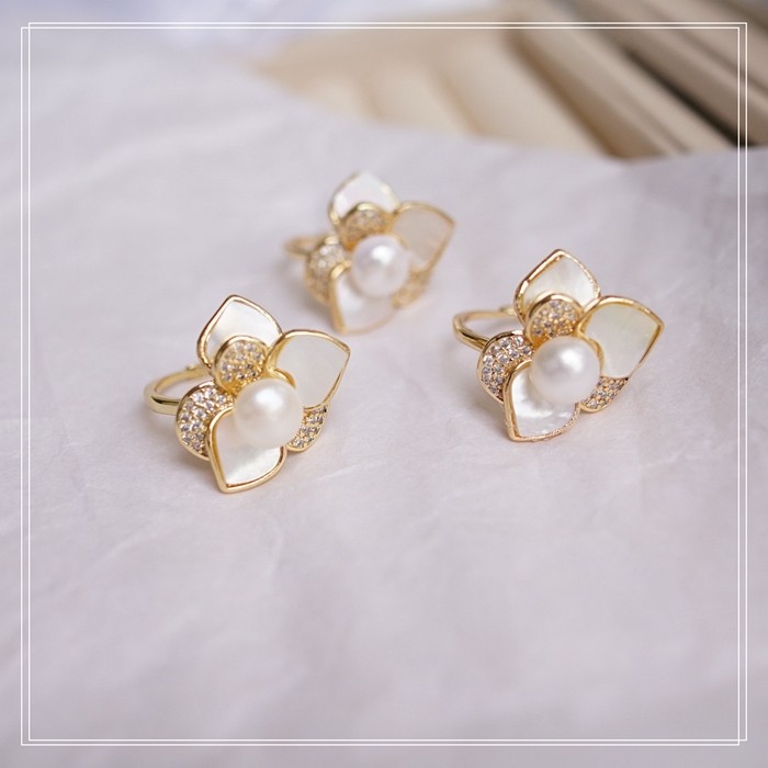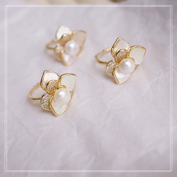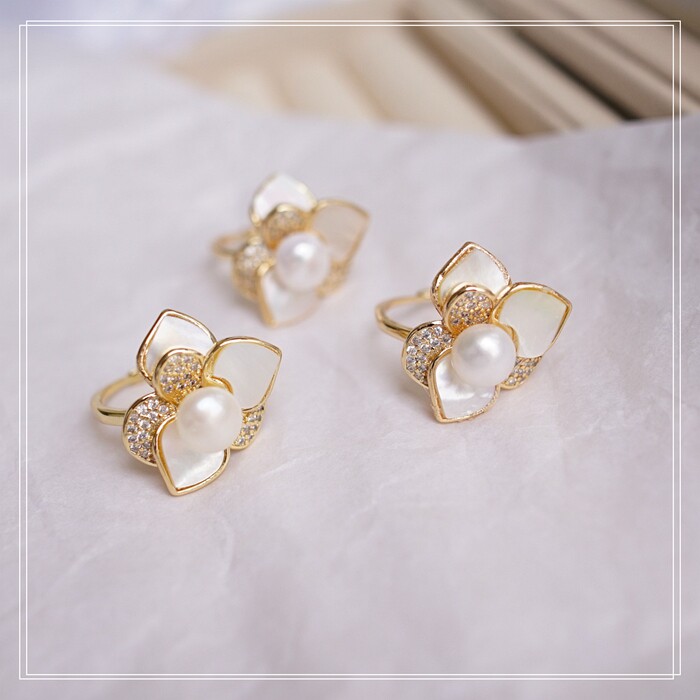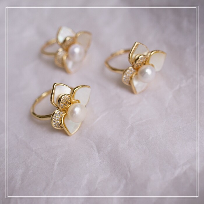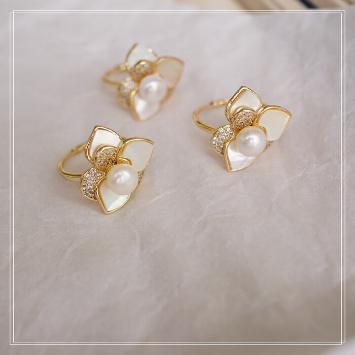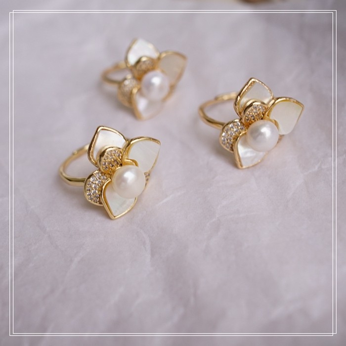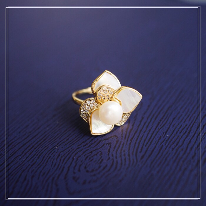 123#淡水珍珠+ 貝殼滿鉆微鑲活口戒指(戒面2CM)