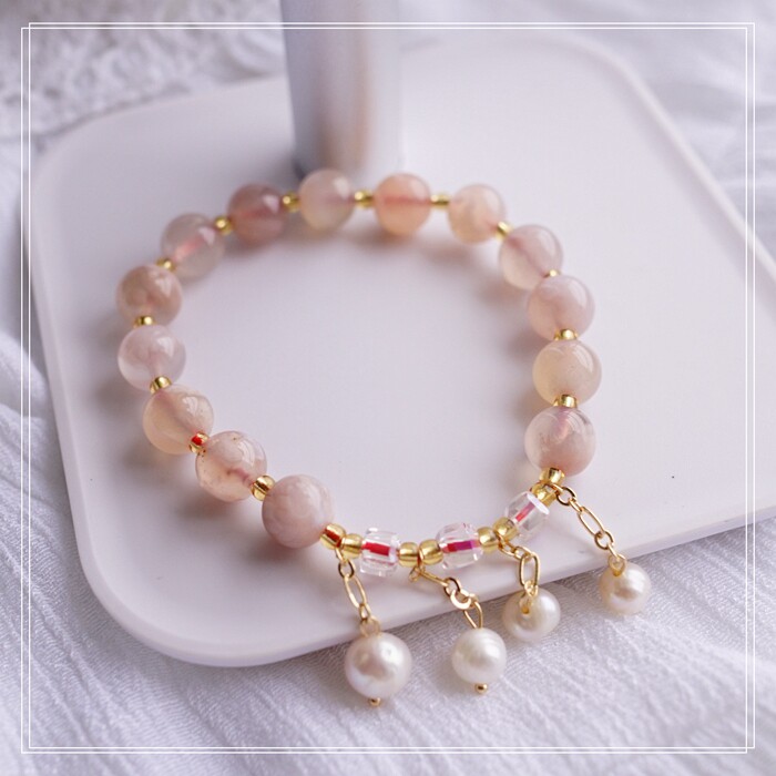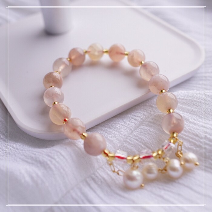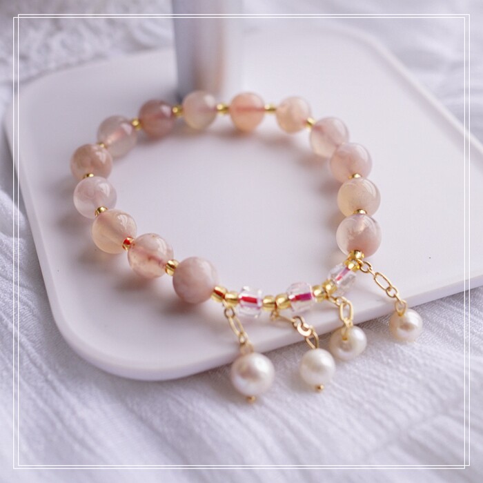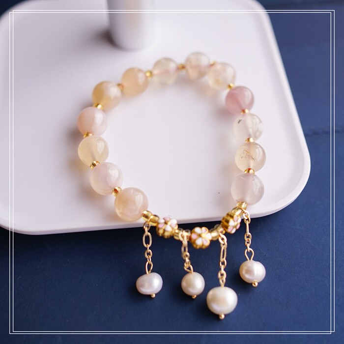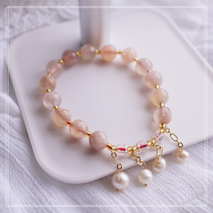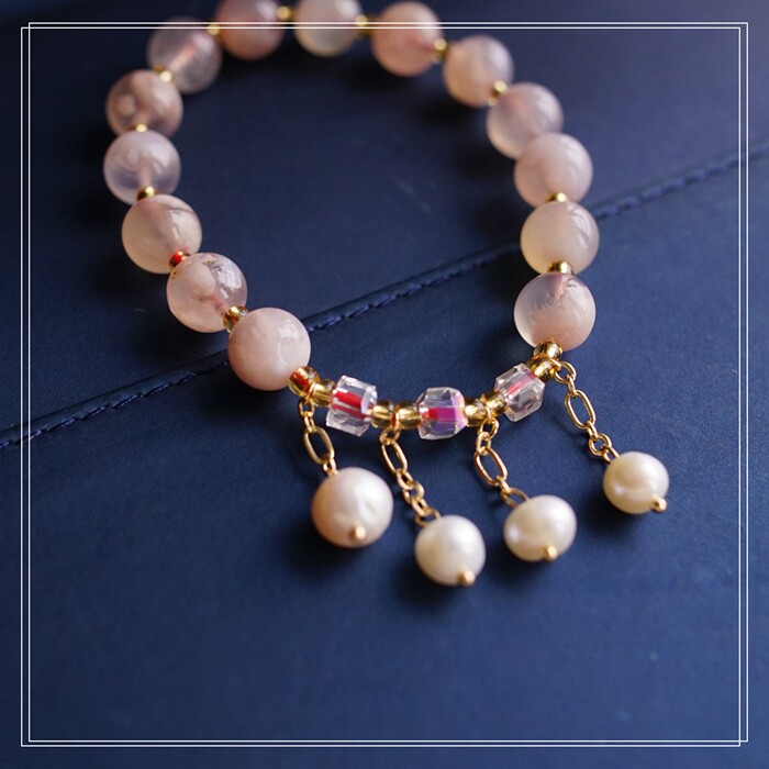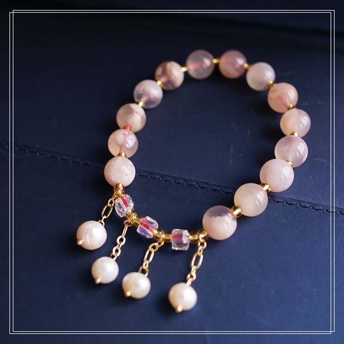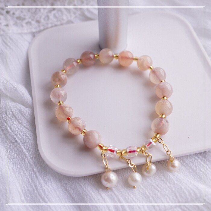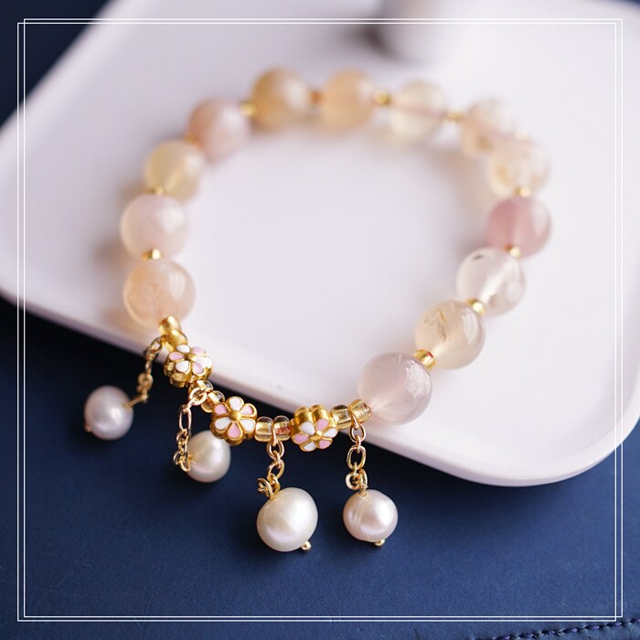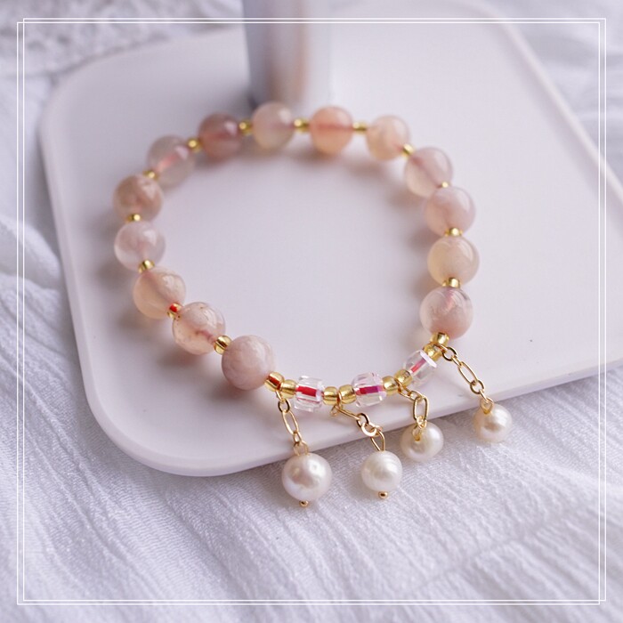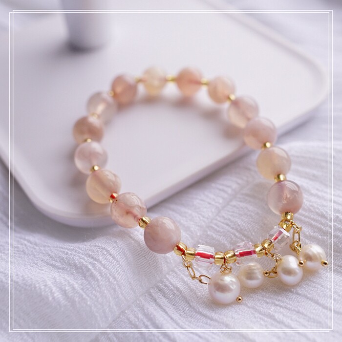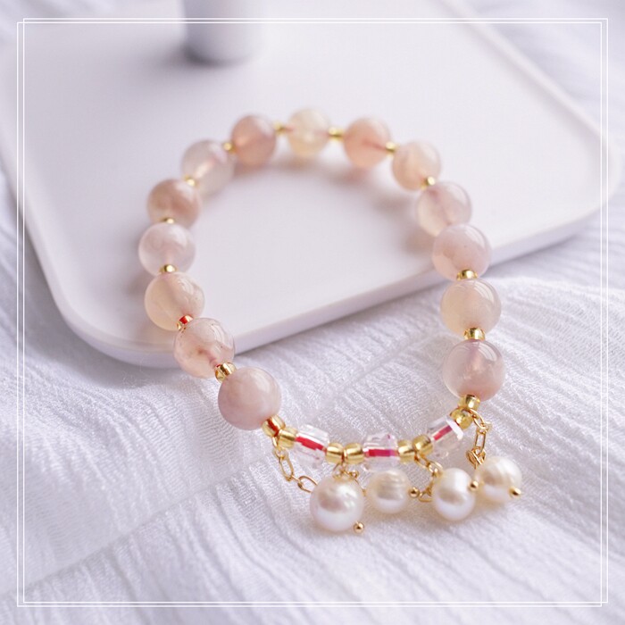 87#櫻花瑪瑙珍珠 周長15CM 彈力繩穿成 寬0.9CM