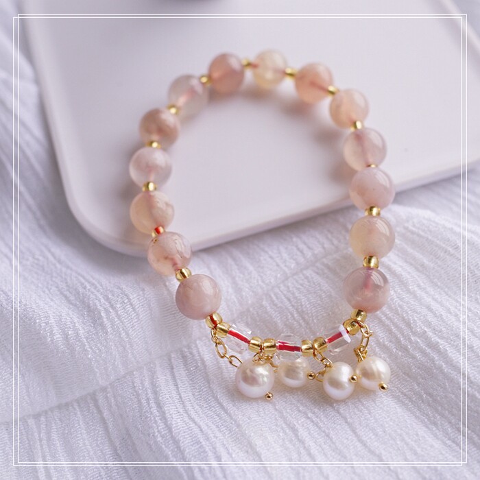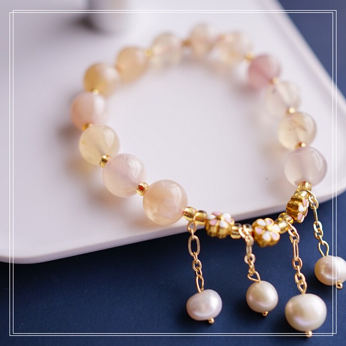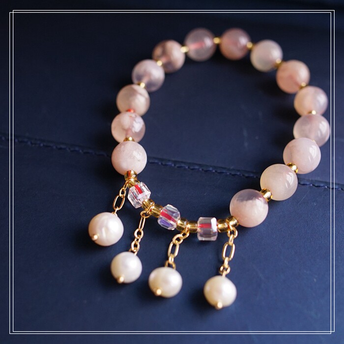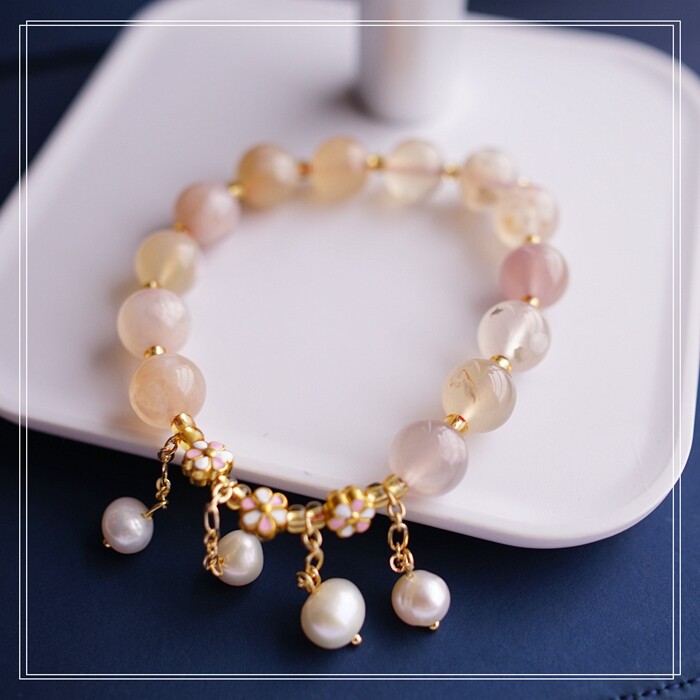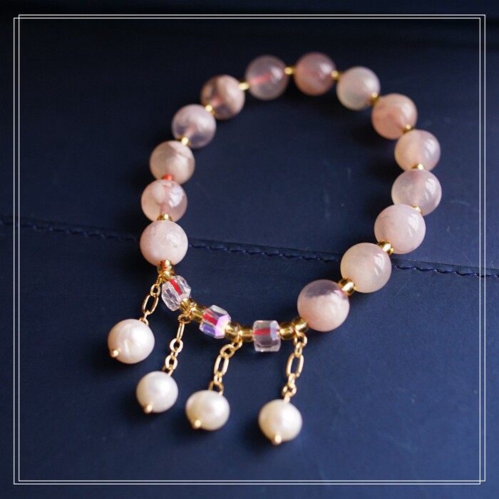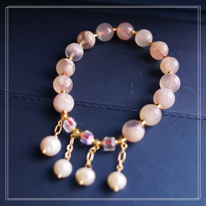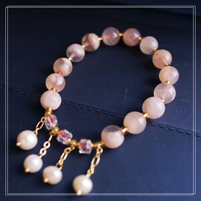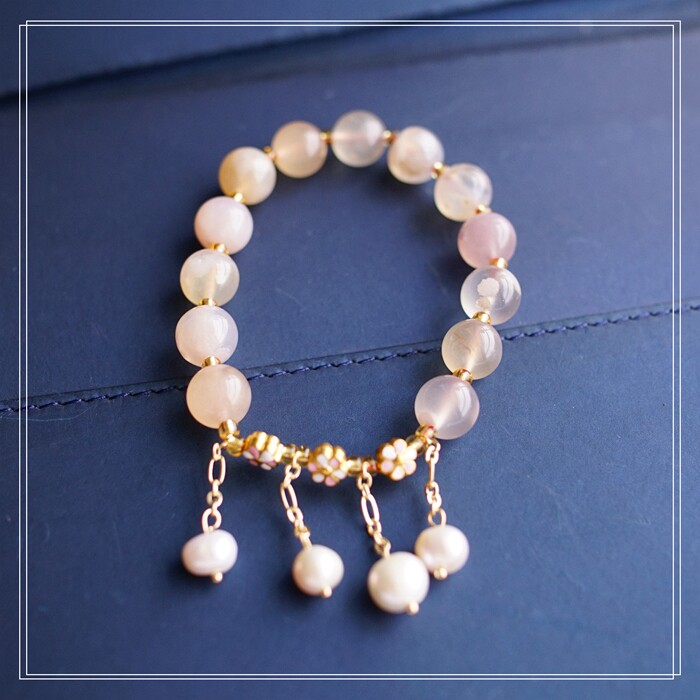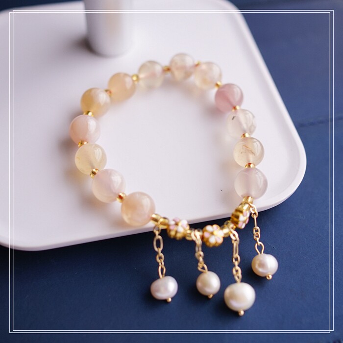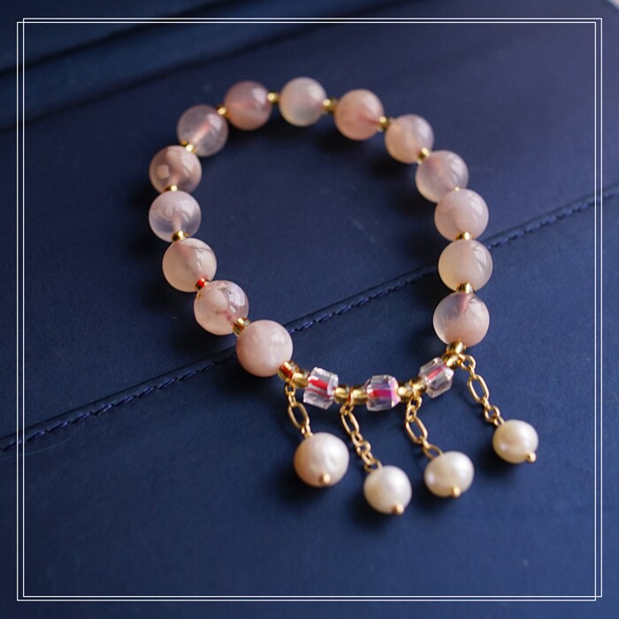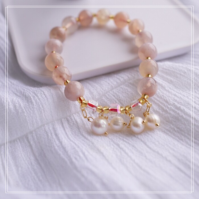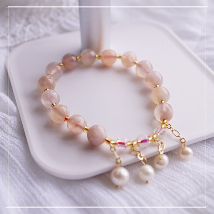 87#櫻花瑪瑙珍珠 周長15CM 彈力繩穿成 寬0.9CM