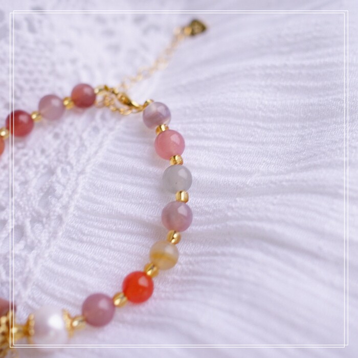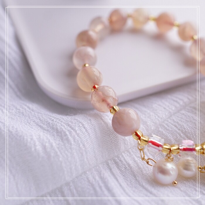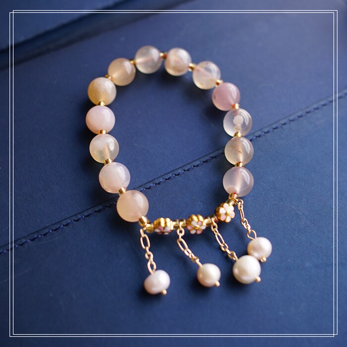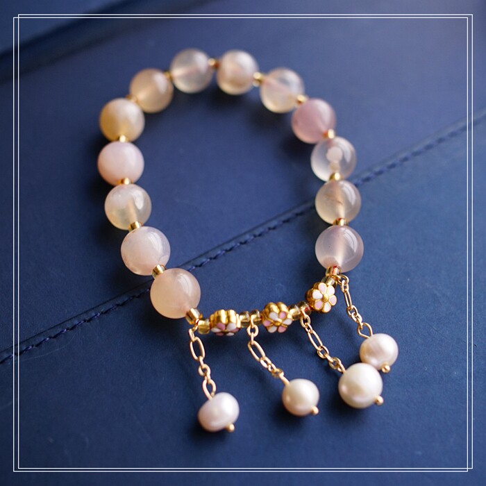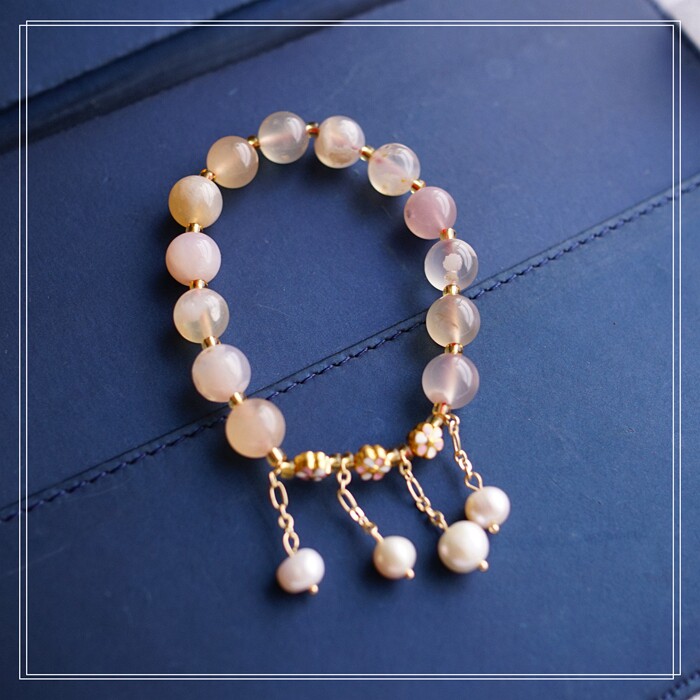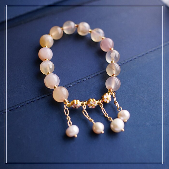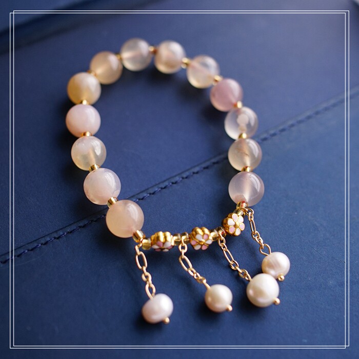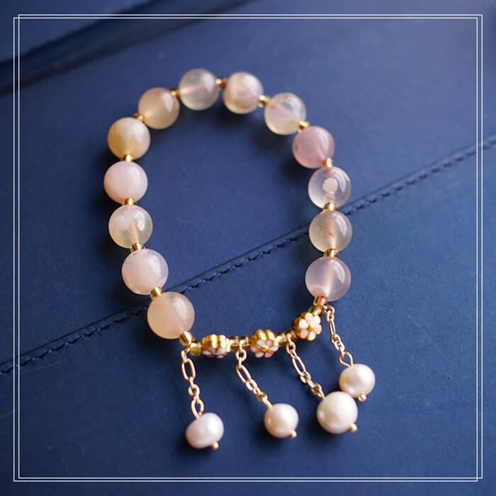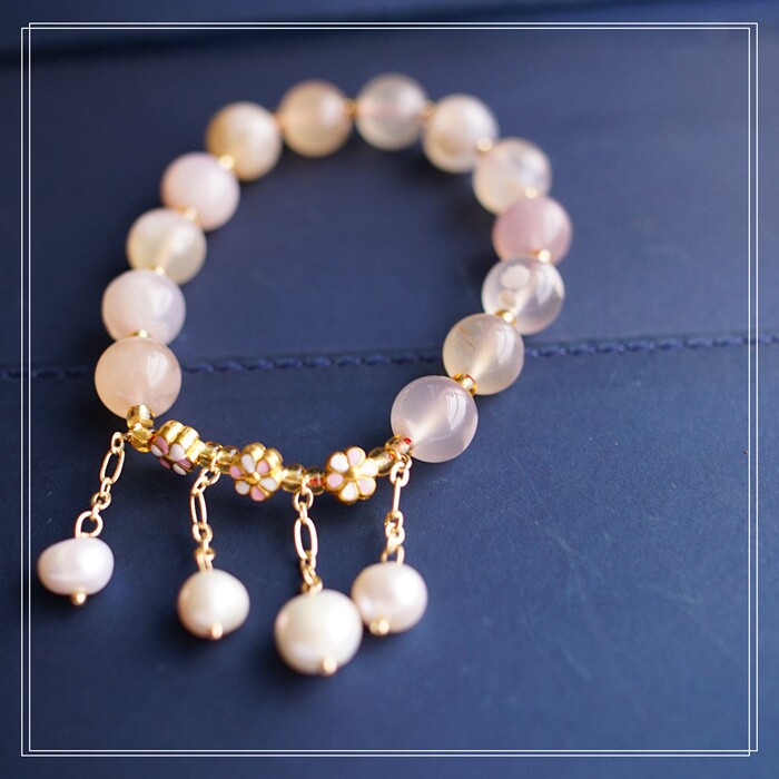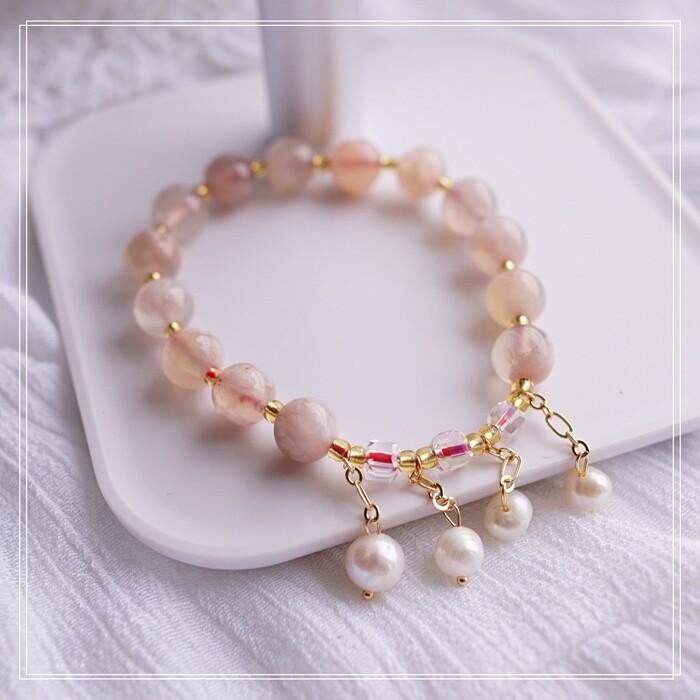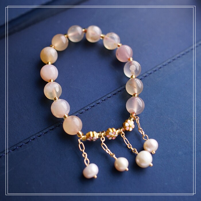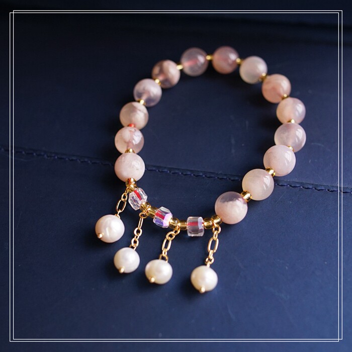 87#櫻花瑪瑙珍珠 周長15CM 彈力繩穿成 寬0.9CM