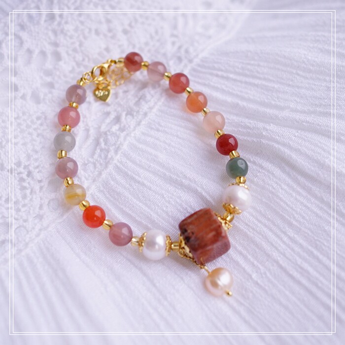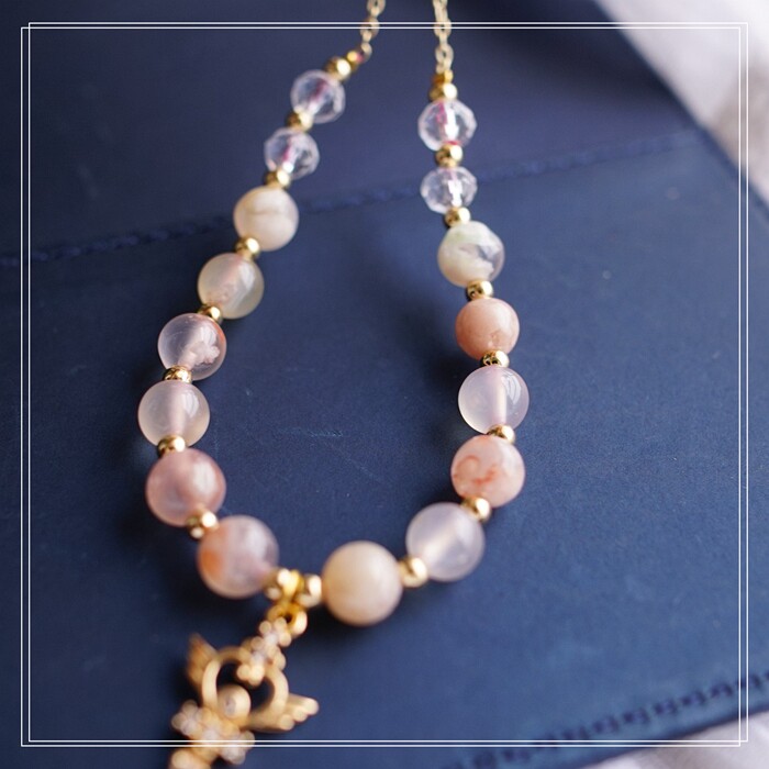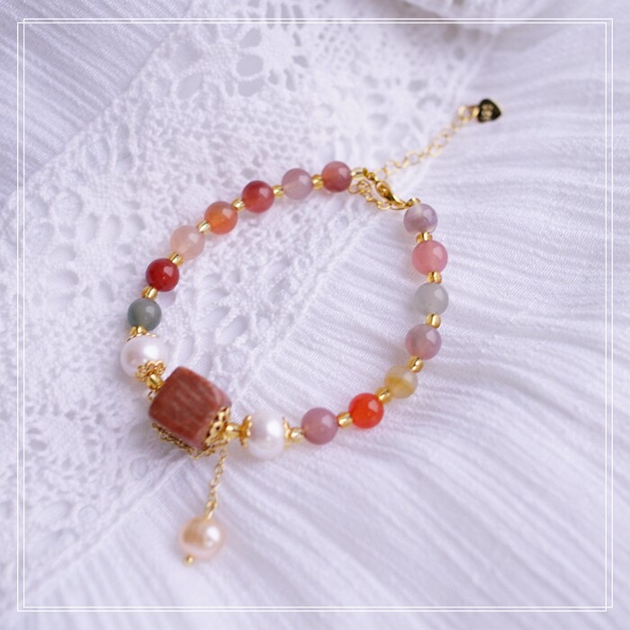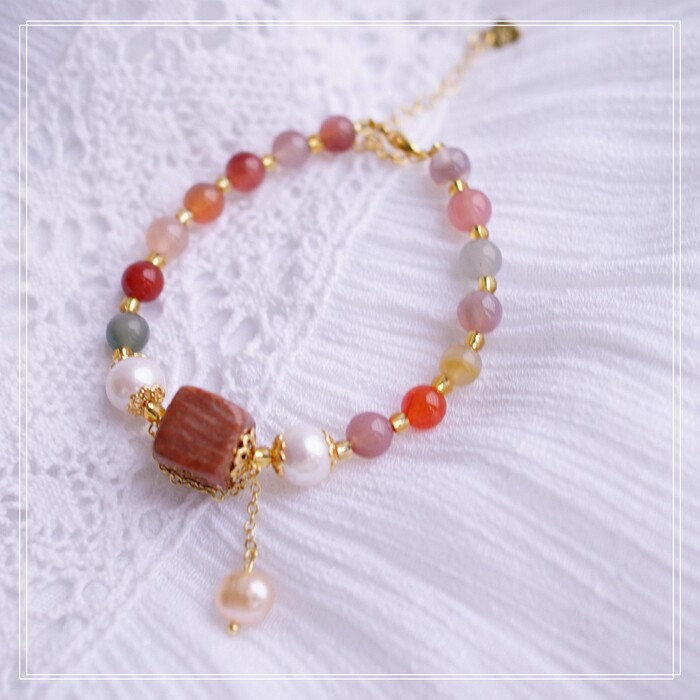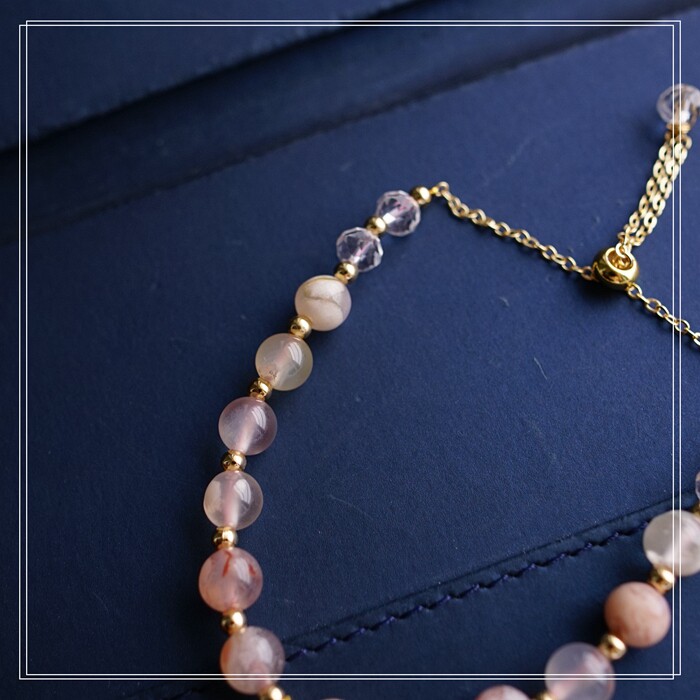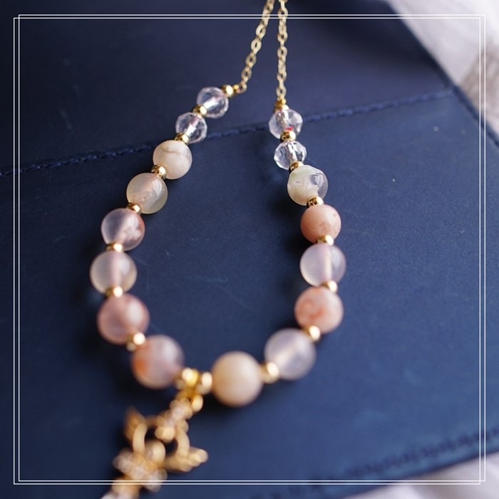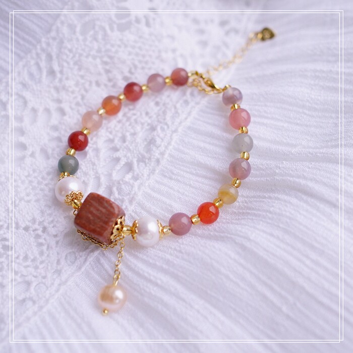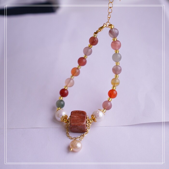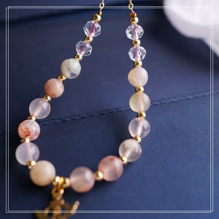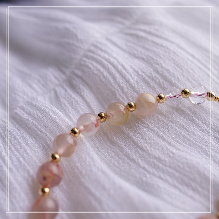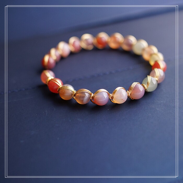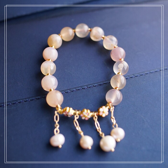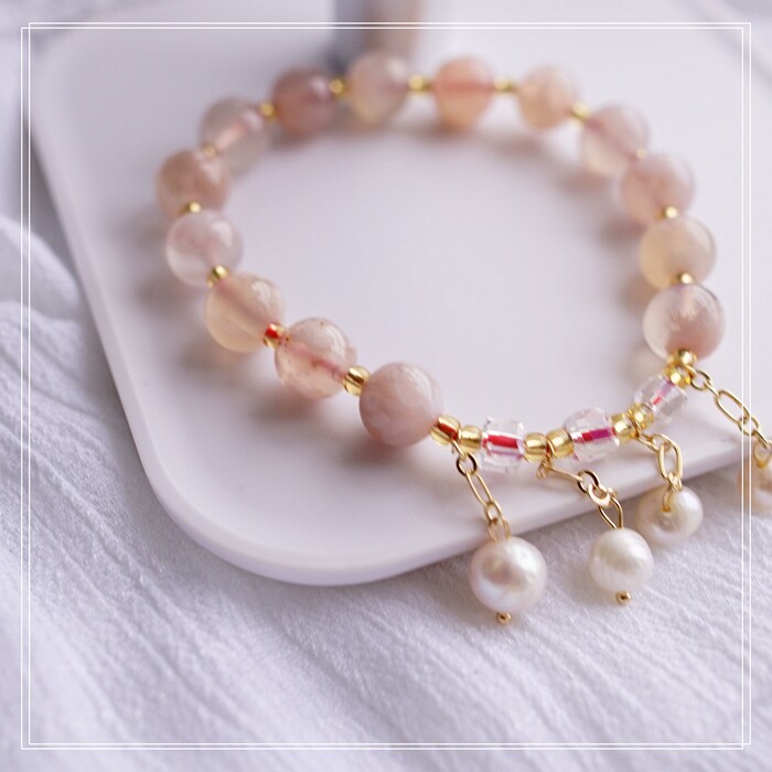 87#櫻花瑪瑙珍珠 周長15CM 彈力繩穿成 寬0.9CM