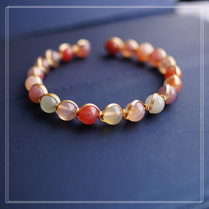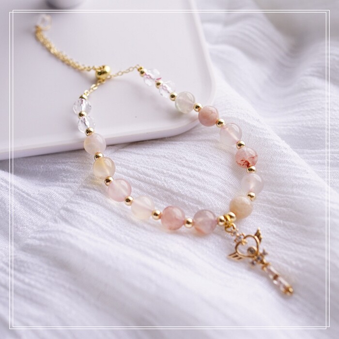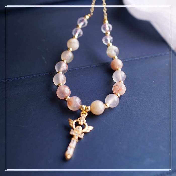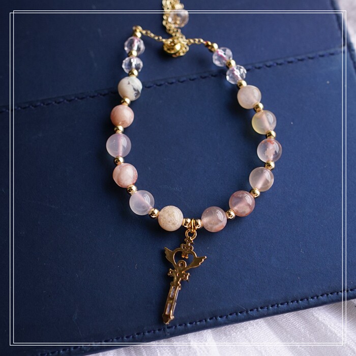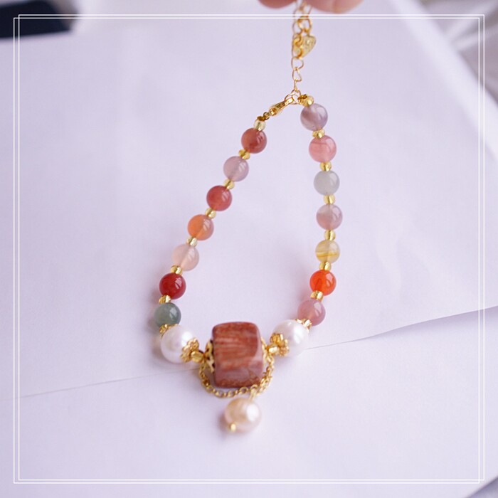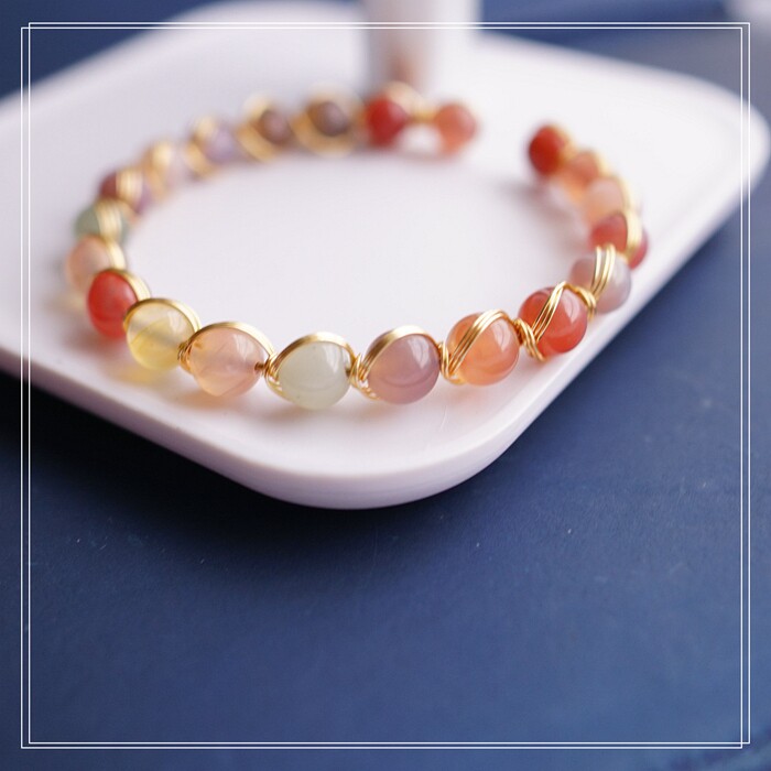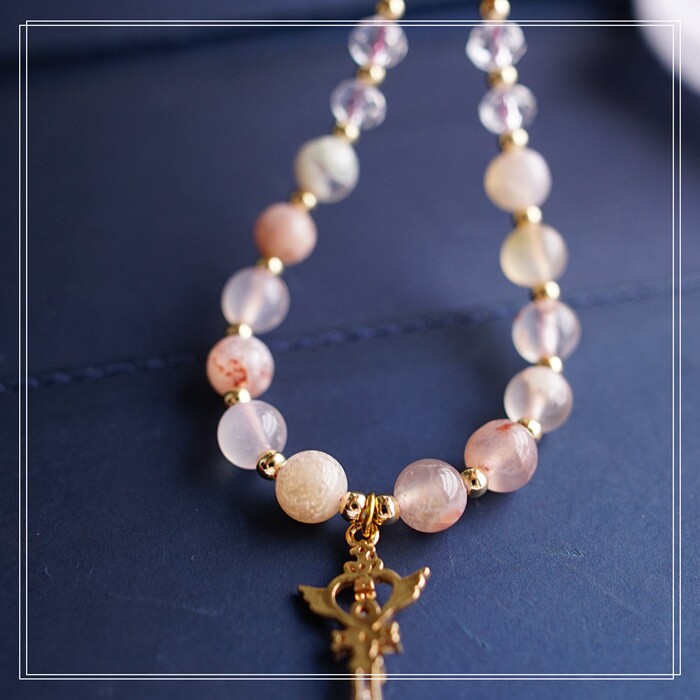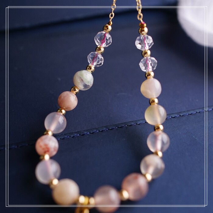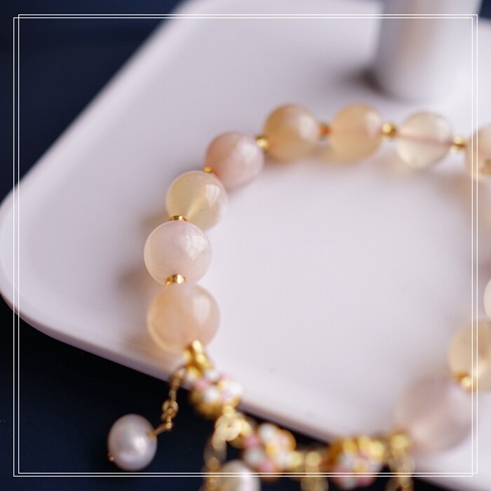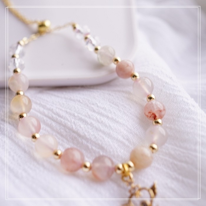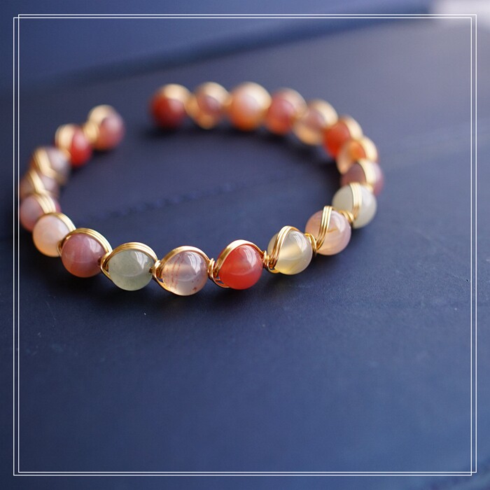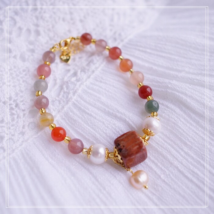 87#櫻花瑪瑙珍珠 周長15CM 彈力繩穿成 寬0.9CM
