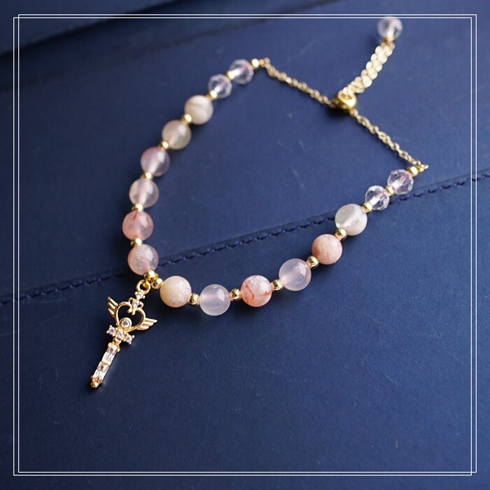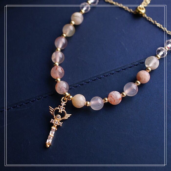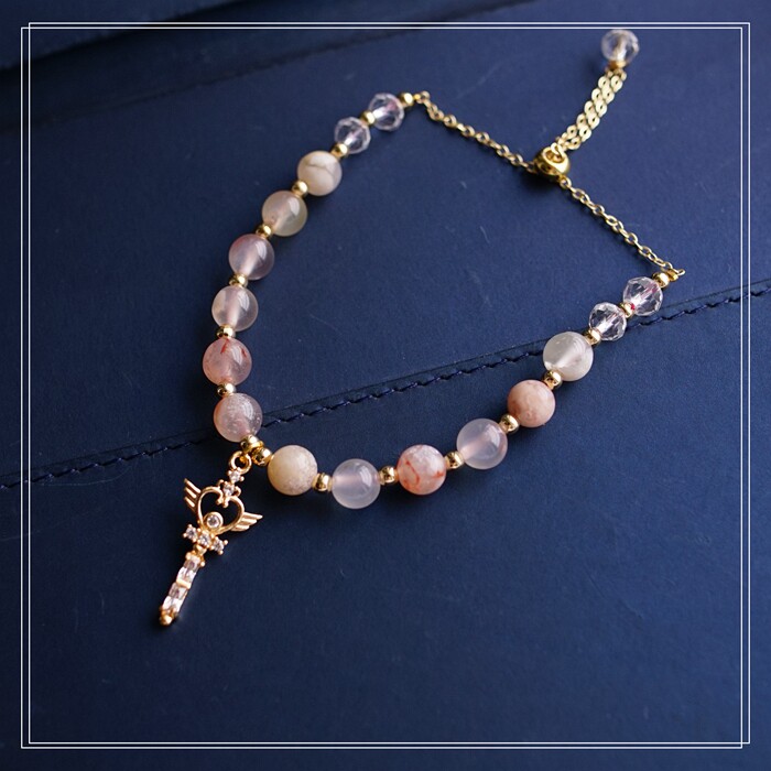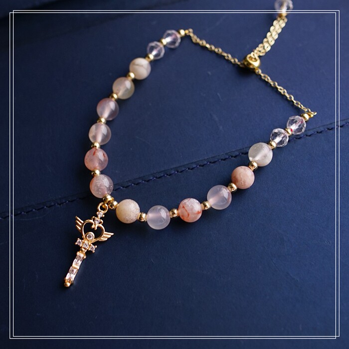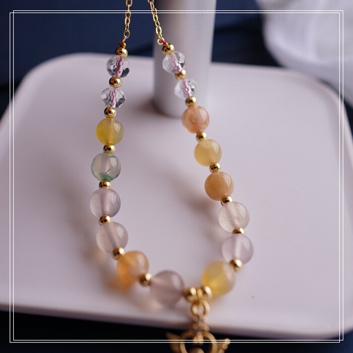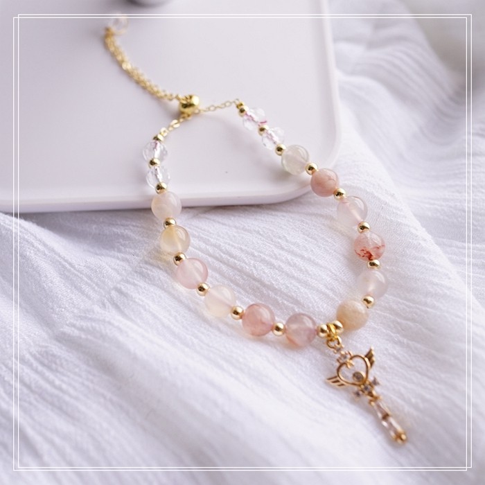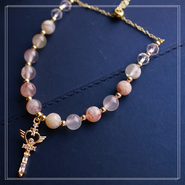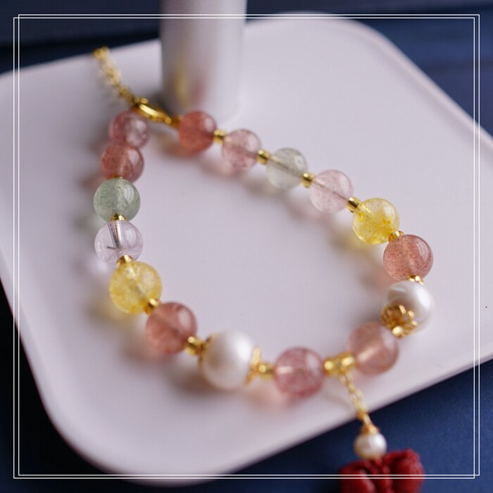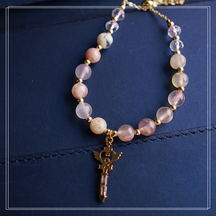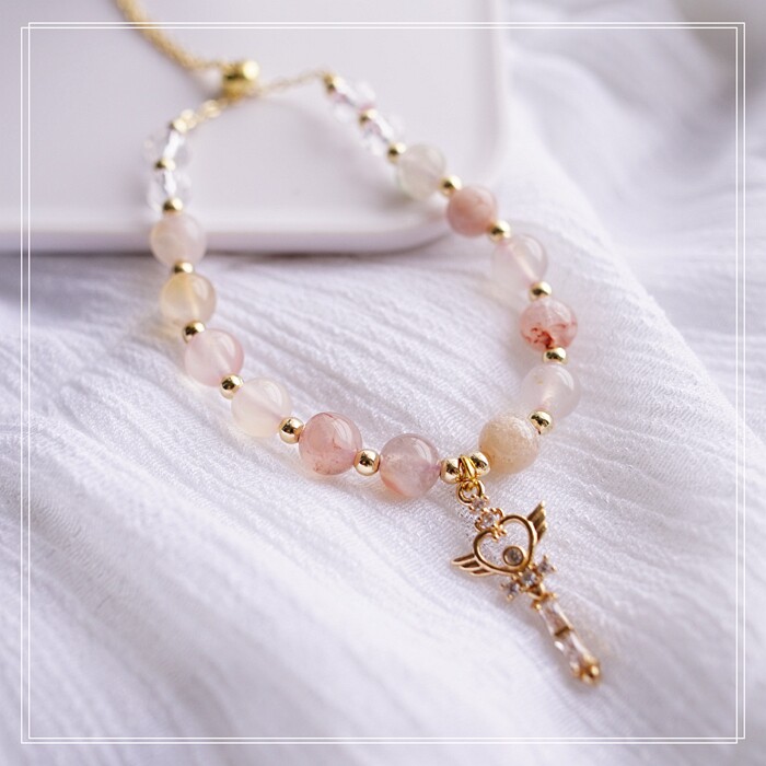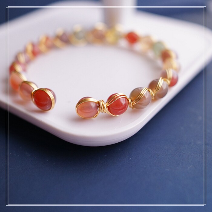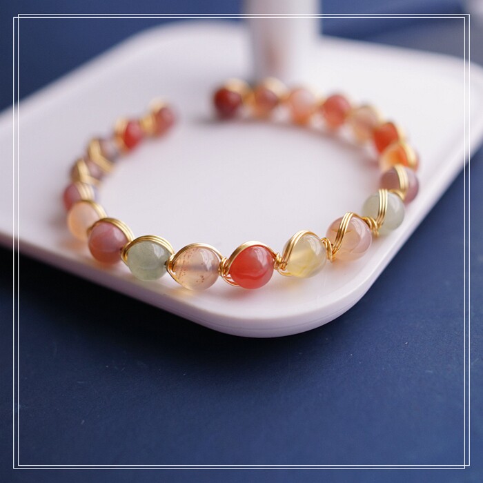 87#櫻花瑪瑙珍珠 周長15CM 彈力繩穿成 寬0.9CM