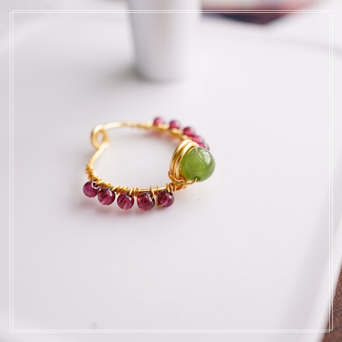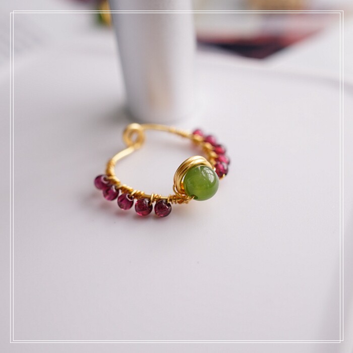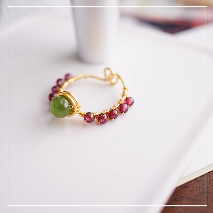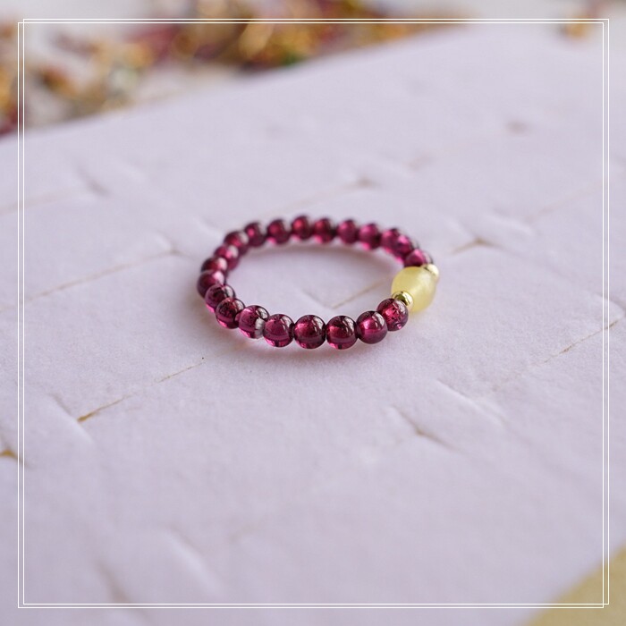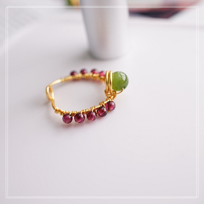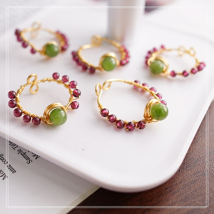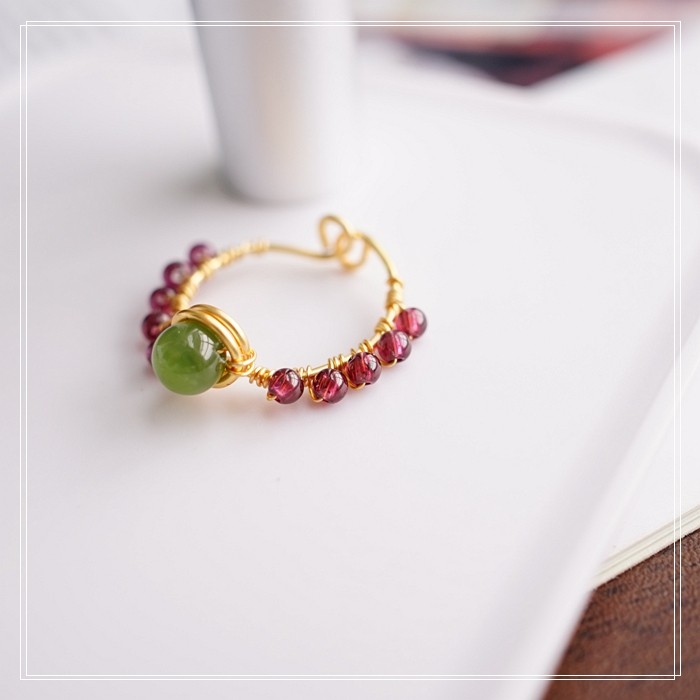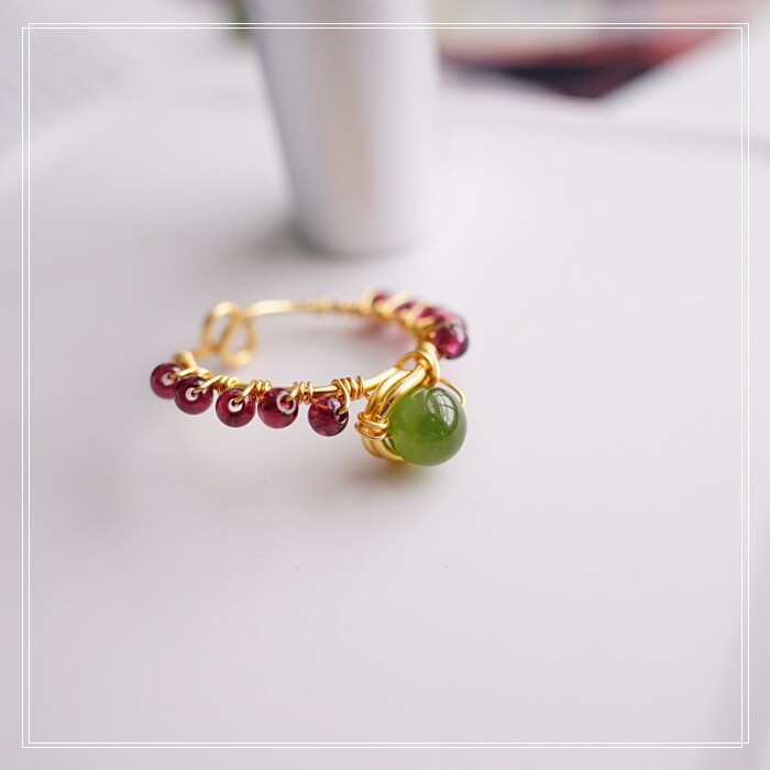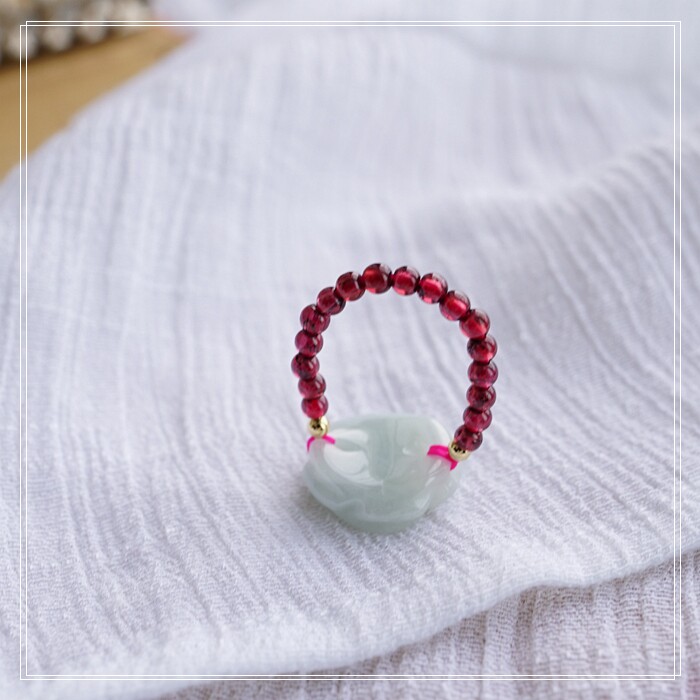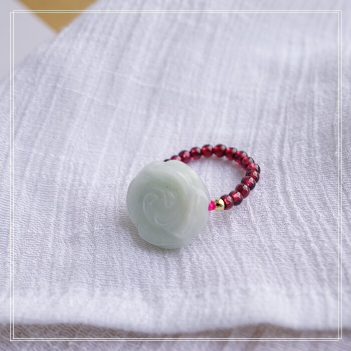 102#翡翠石榴石彈力繩戒指 玫瑰花1.5CM 石榴石0.2-0.3CM