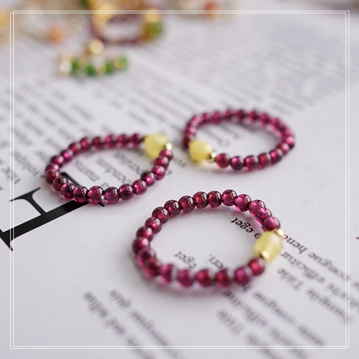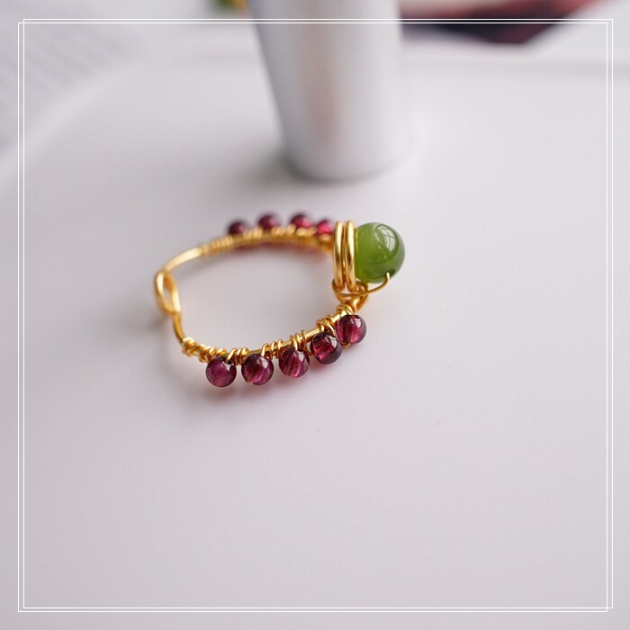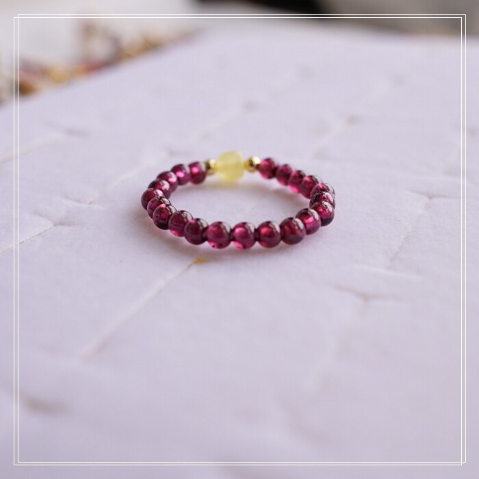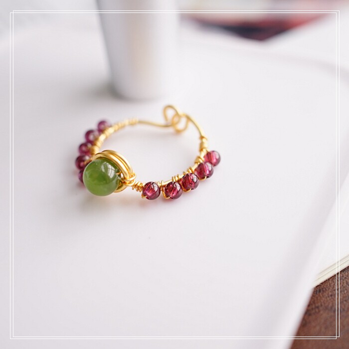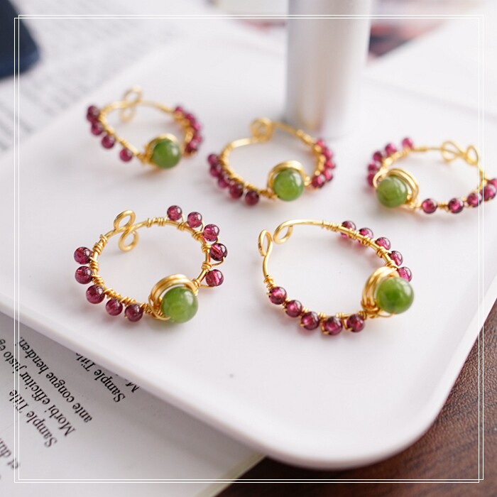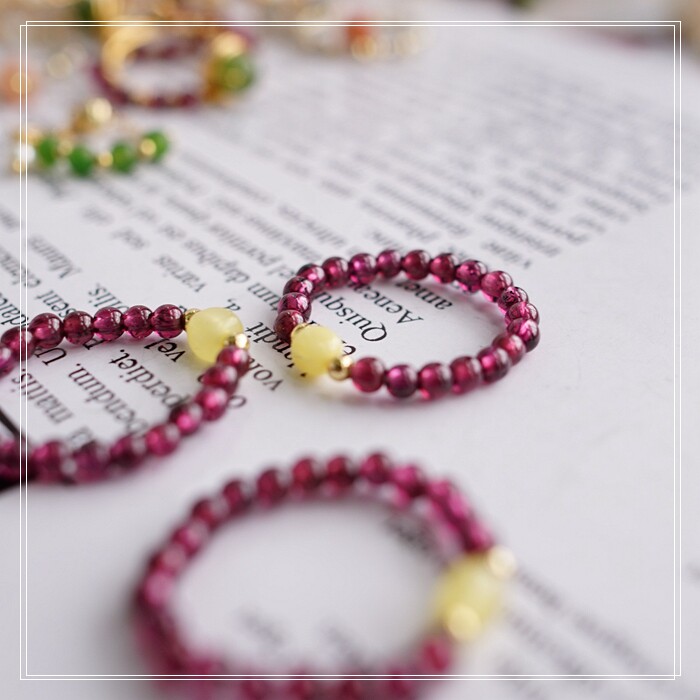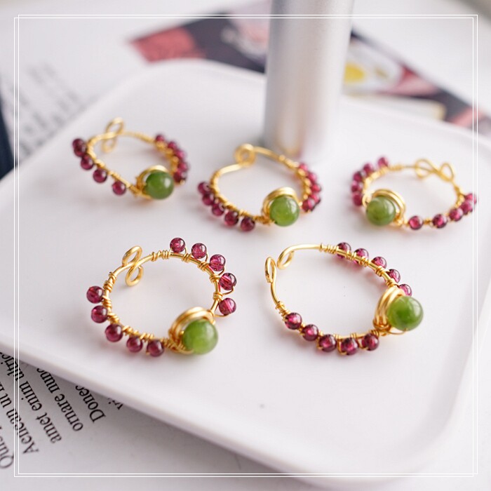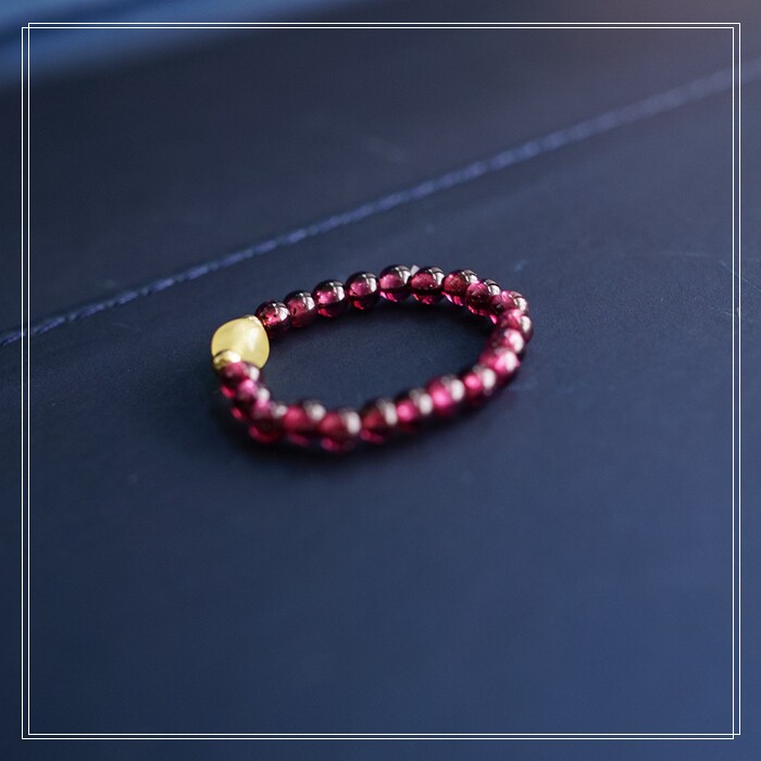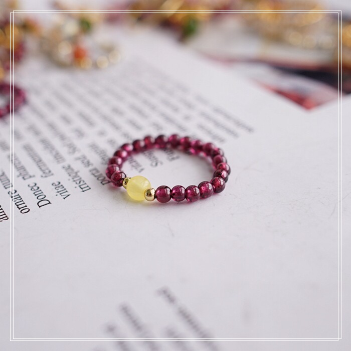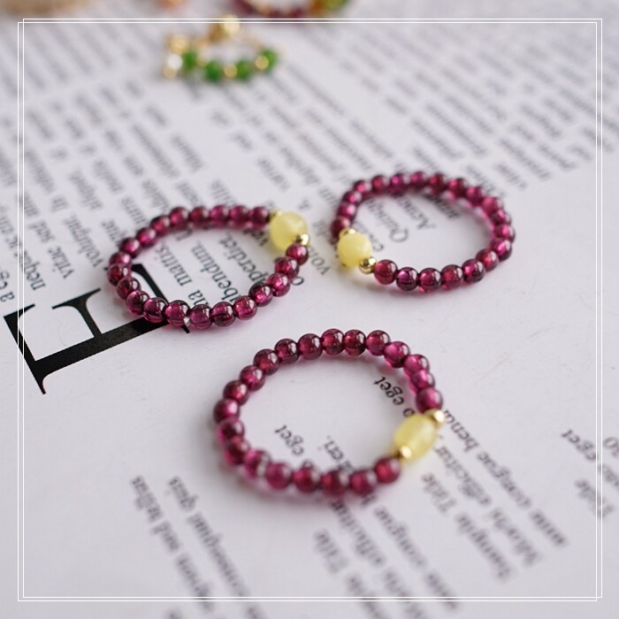 102#翡翠石榴石彈力繩戒指 玫瑰花1.5CM 石榴石0.2-0.3CM