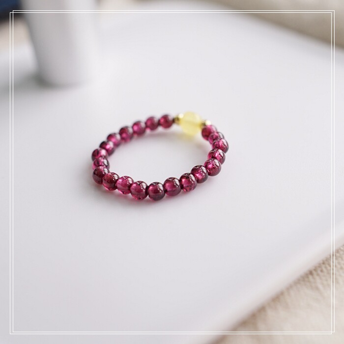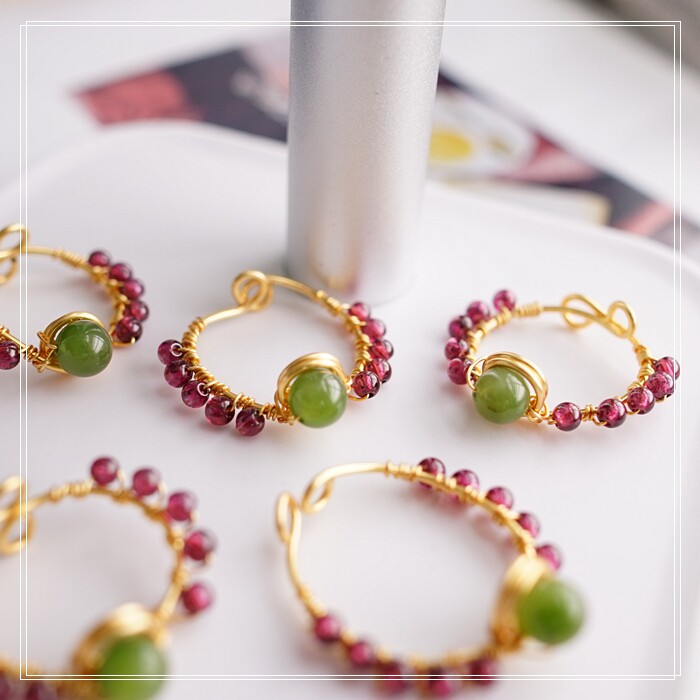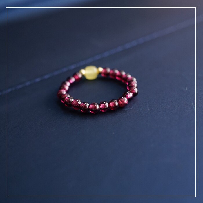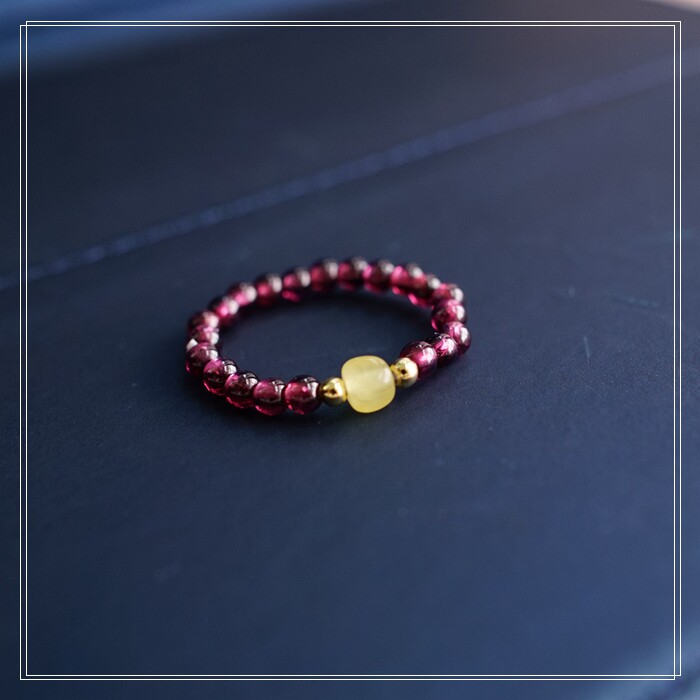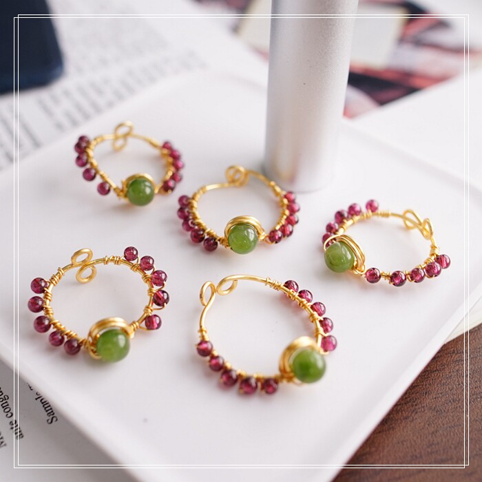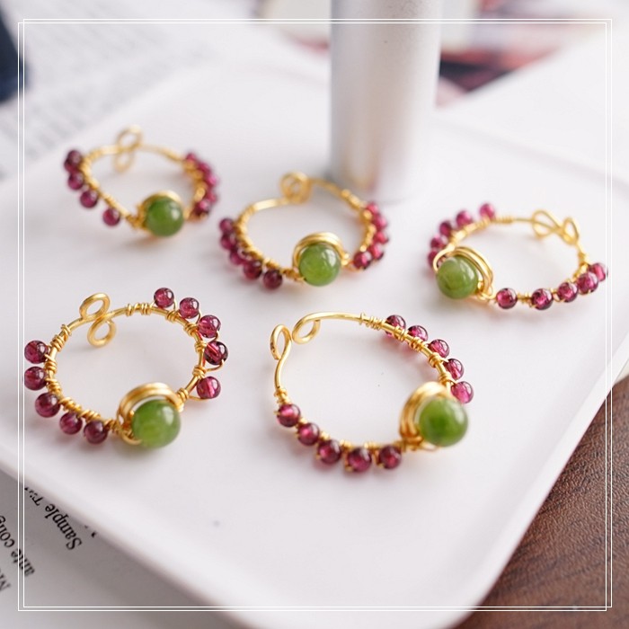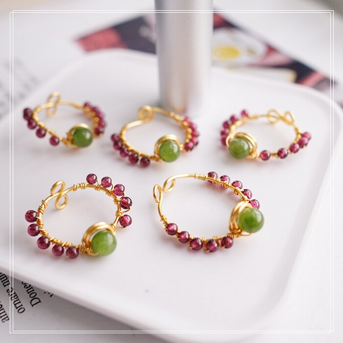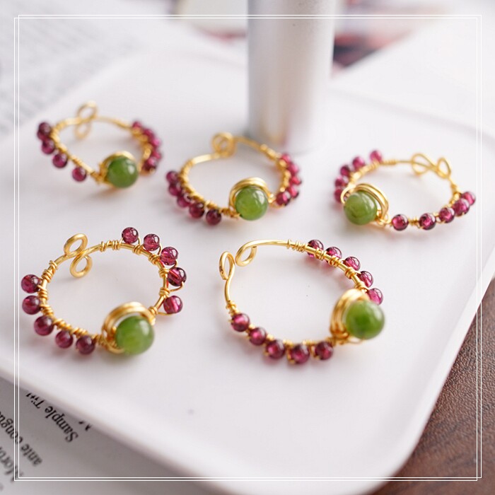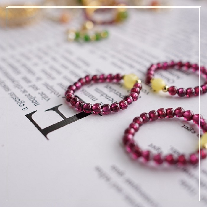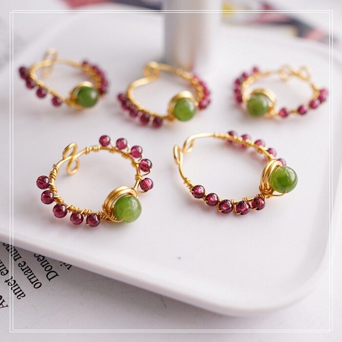 102#翡翠石榴石彈力繩戒指 玫瑰花1.5CM 石榴石0.2-0.3CM