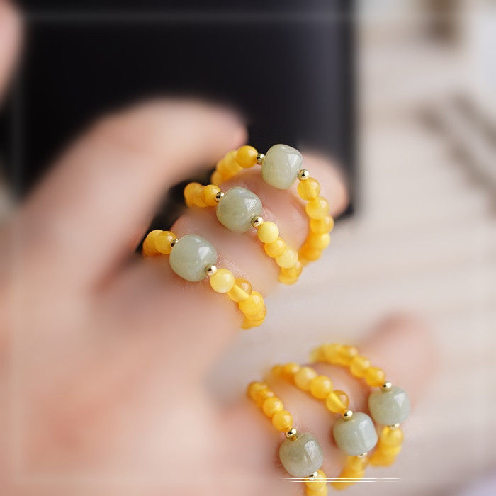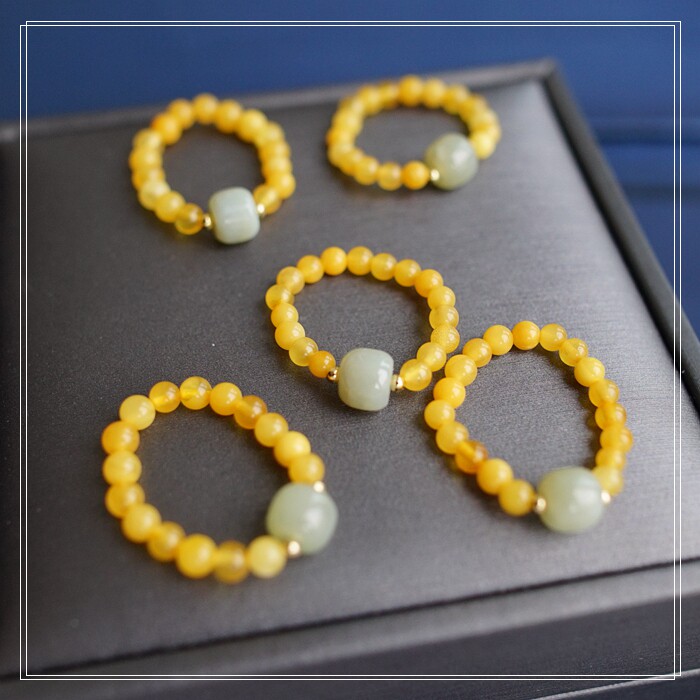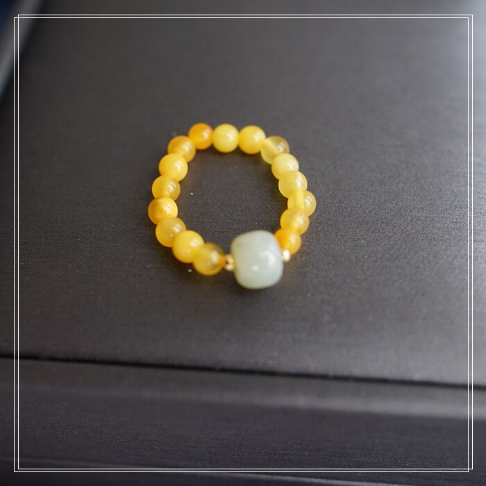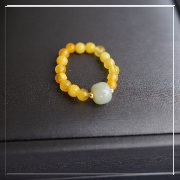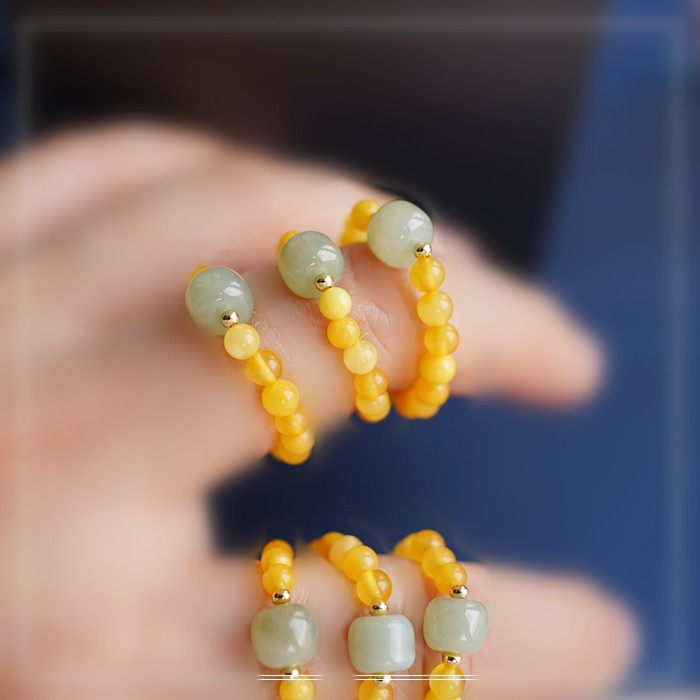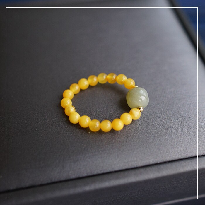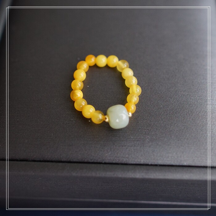 118#和田玉蜜蠟戒指寬0.4-0.7CM 彈力繩穿成