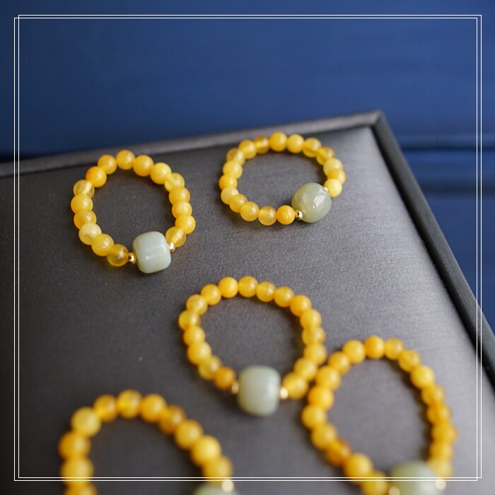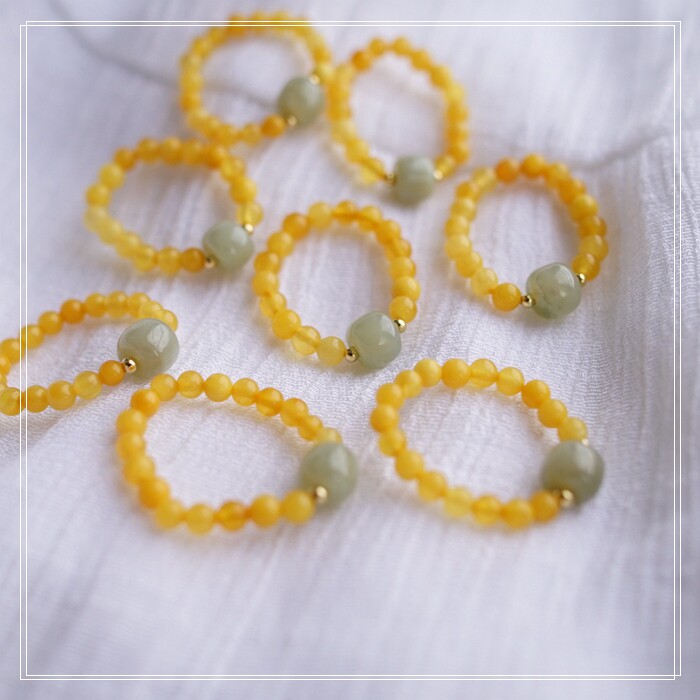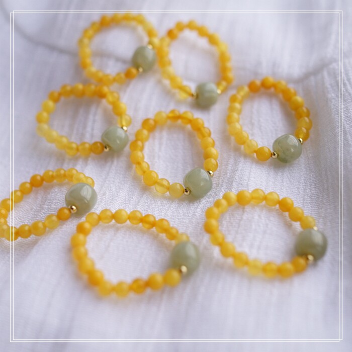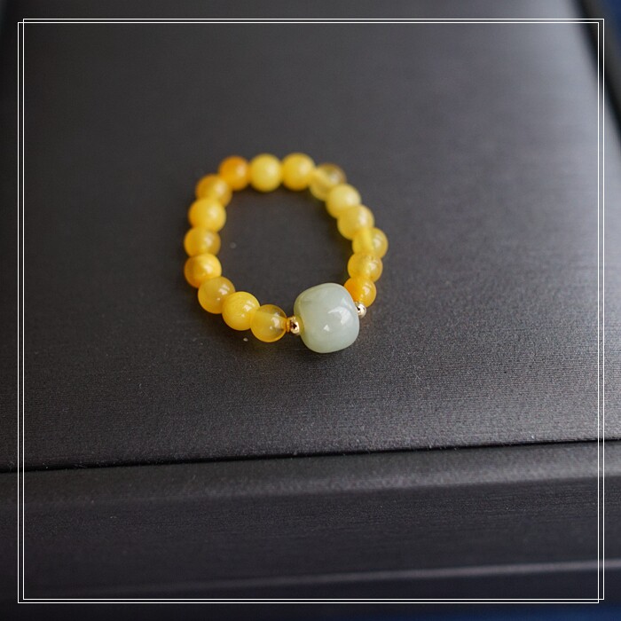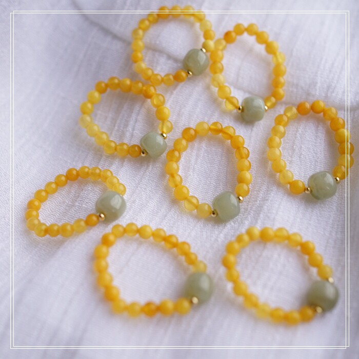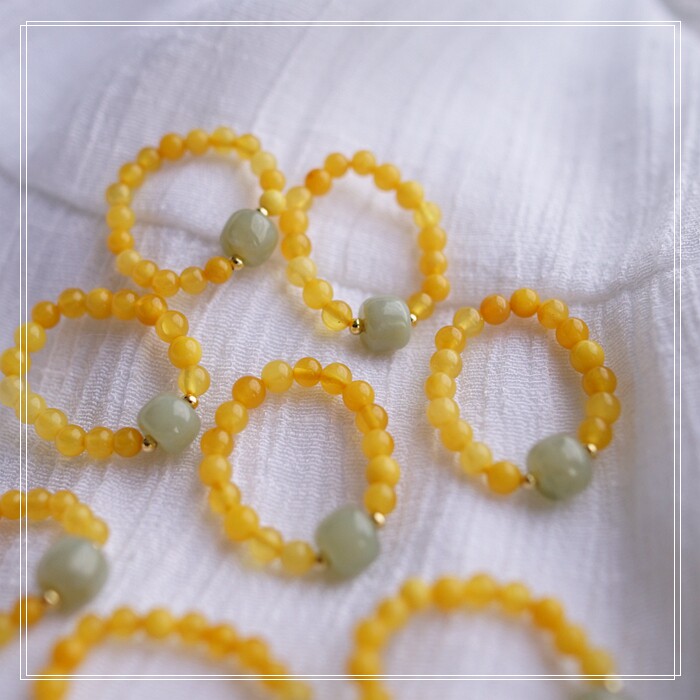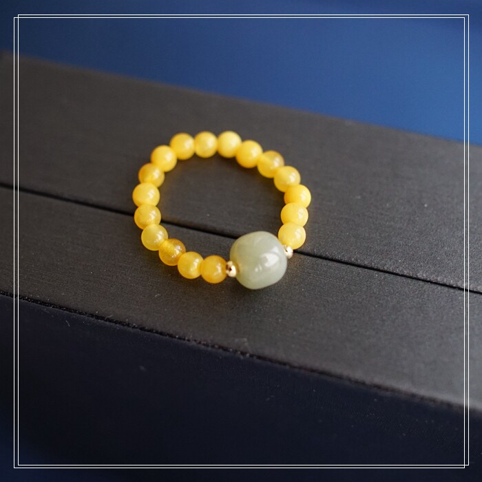 118#和田玉蜜蠟戒指寬0.4-0.7CM 彈力繩穿成