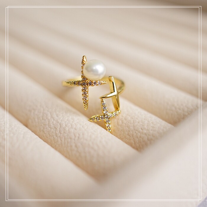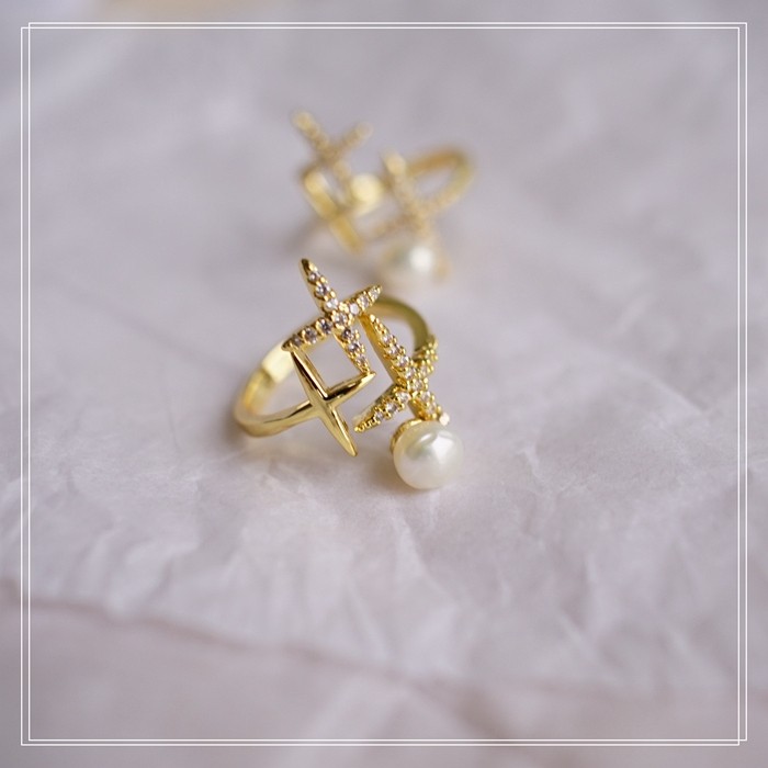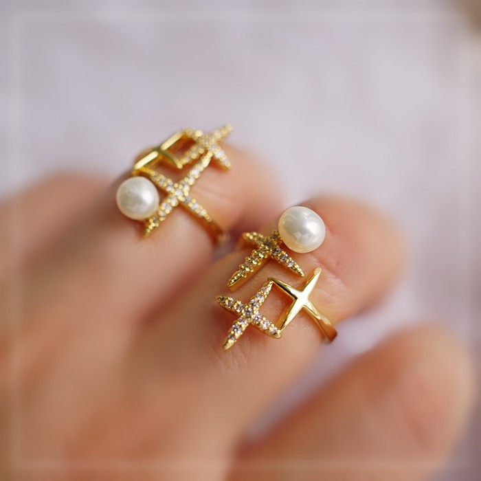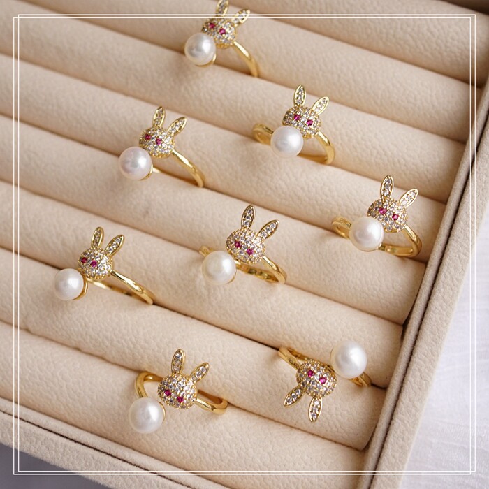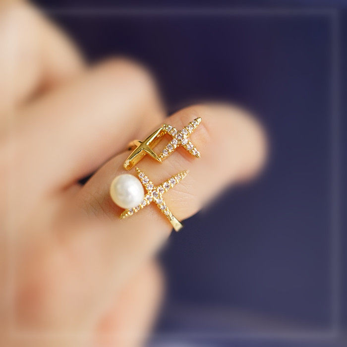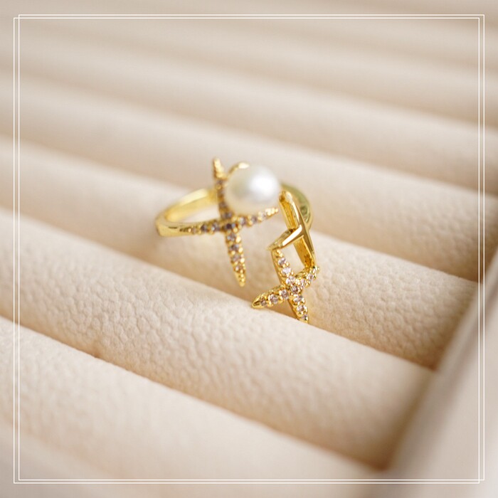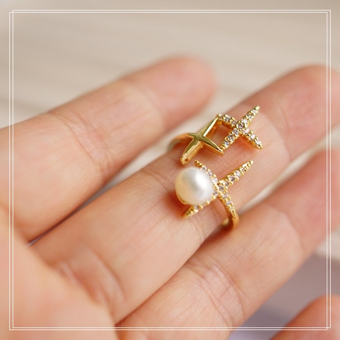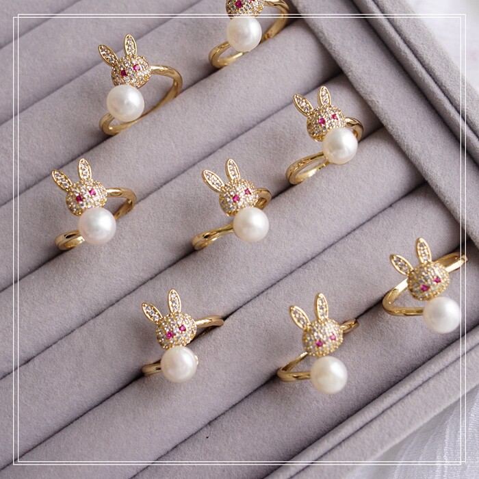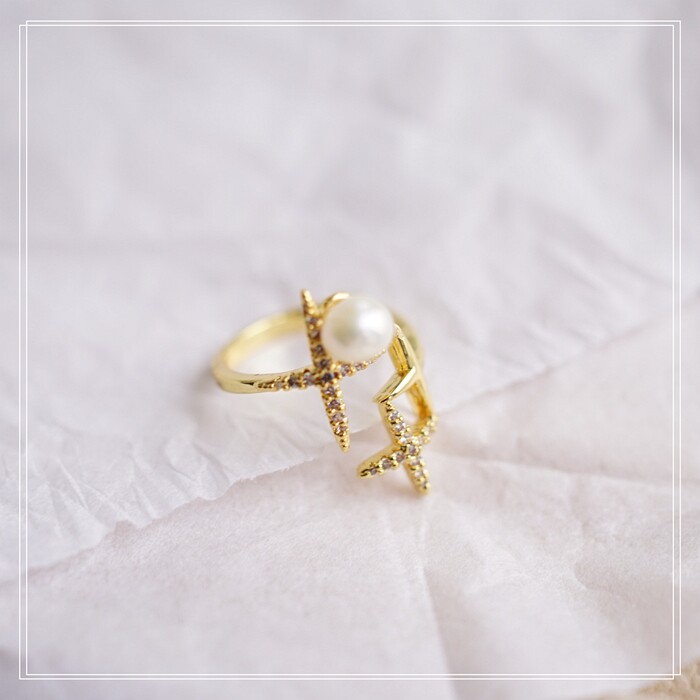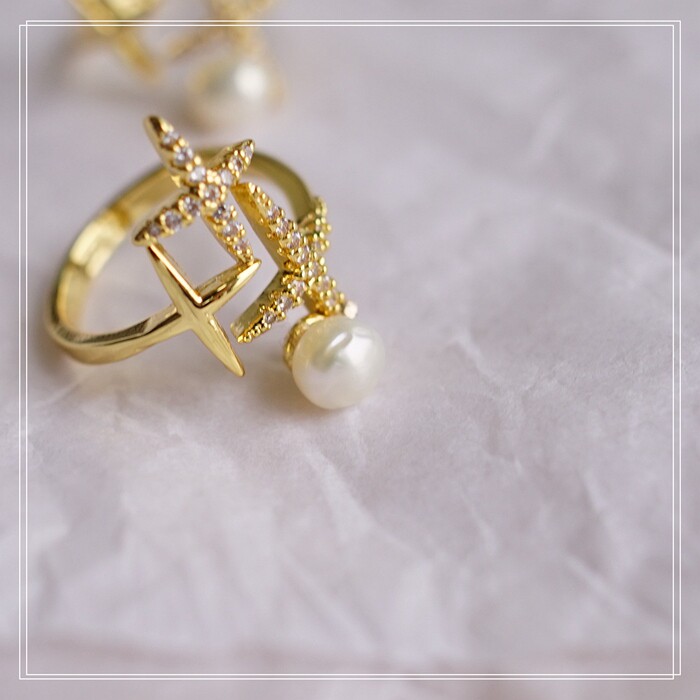 124#淡水珍珠滿鉆微鑲活口戒指(戒面寬2CM)