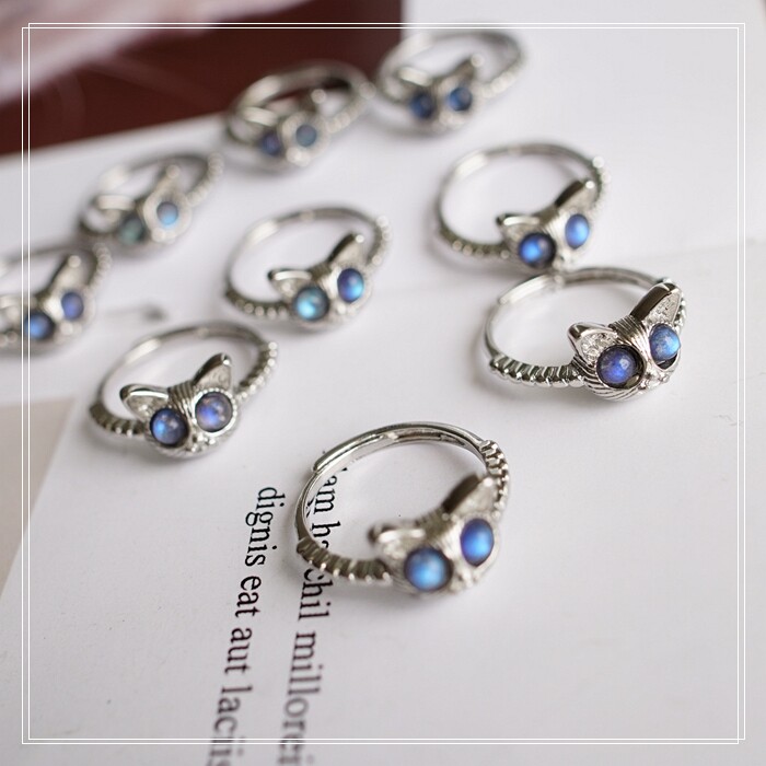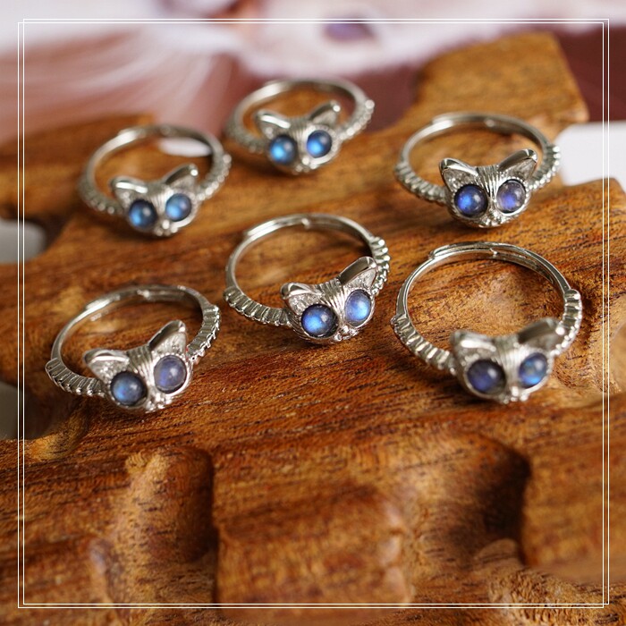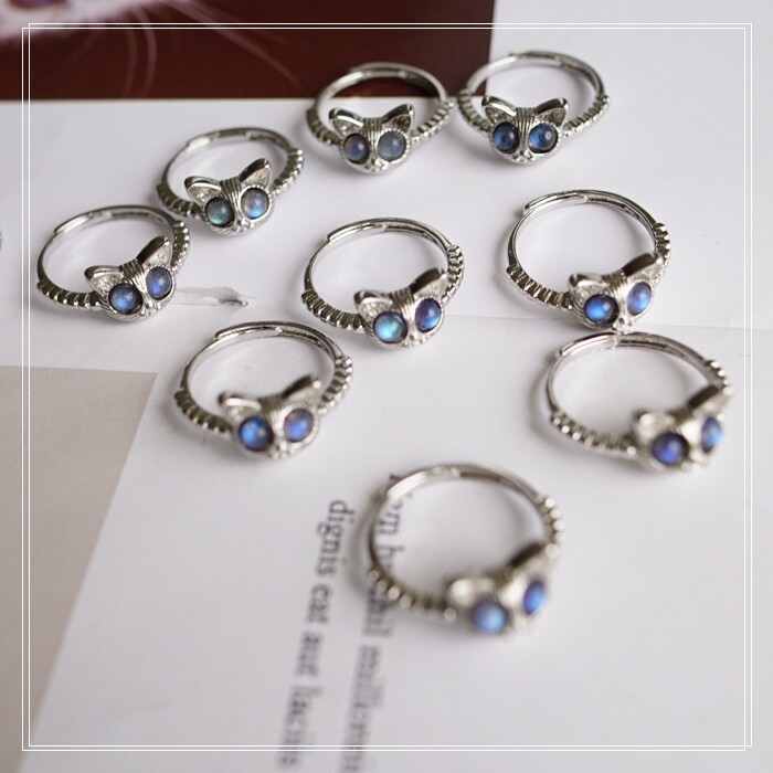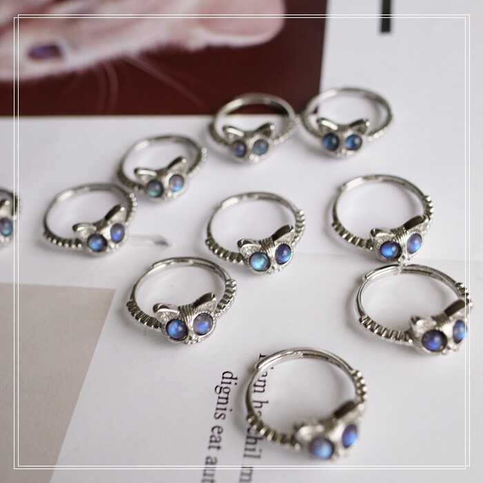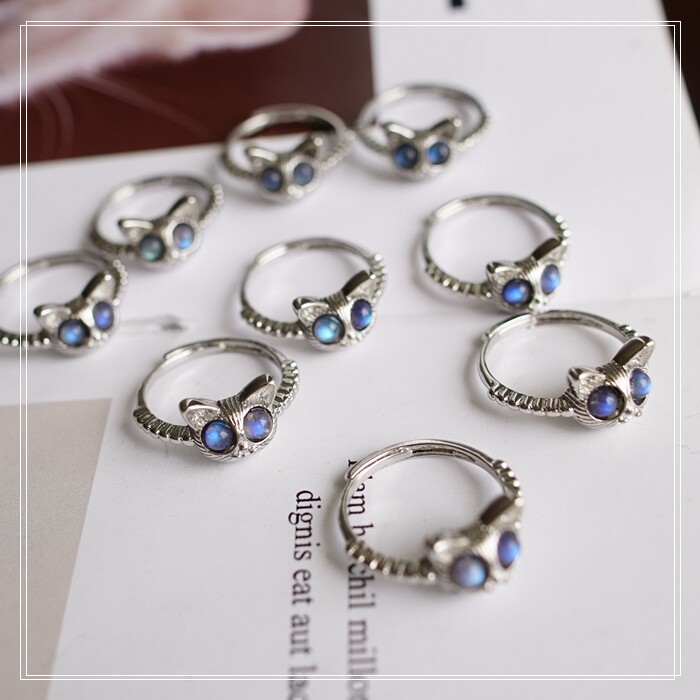 121#月光石戒指 一只的價格 活口可調節 戒面寬1CM 強藍光