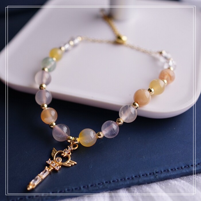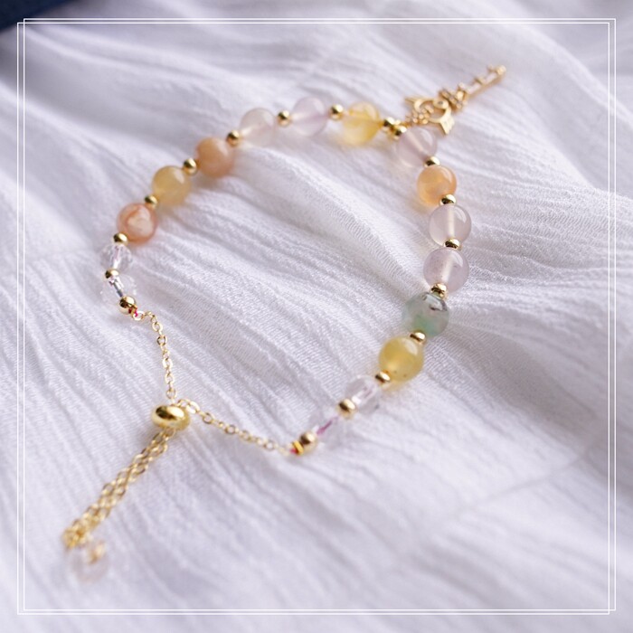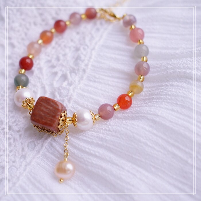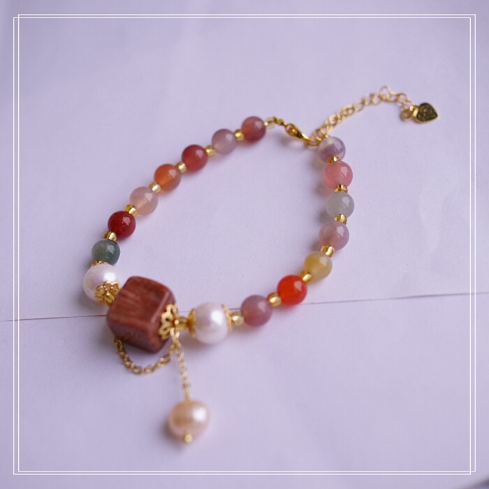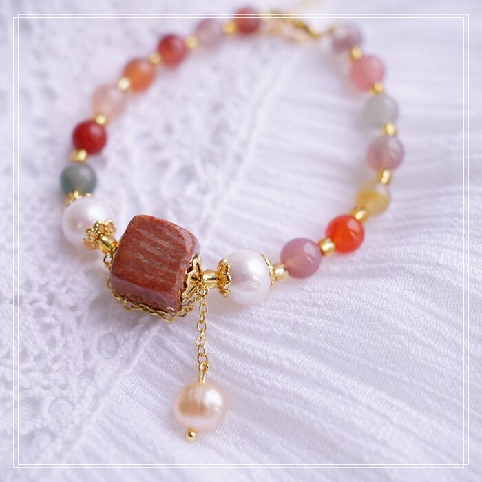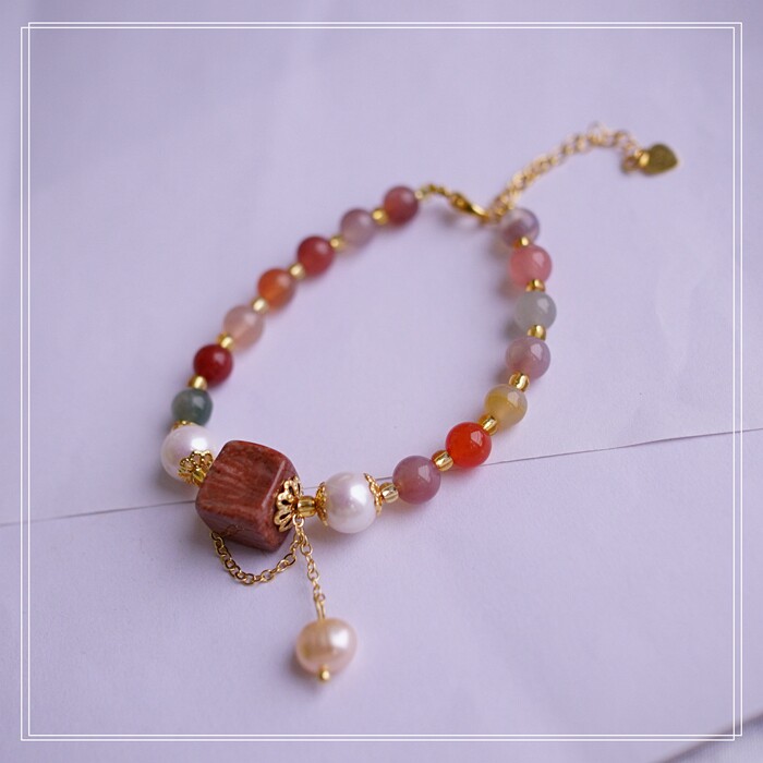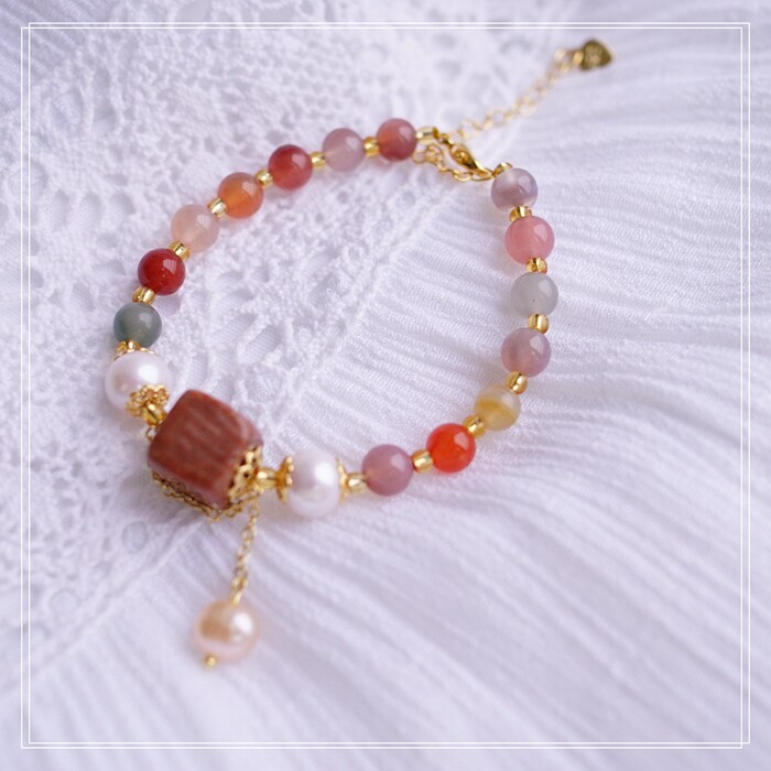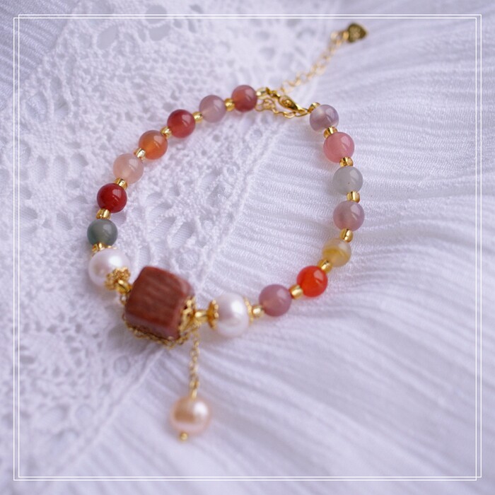 77#櫻花瑪瑙 方糖 手鏈可抽拉調節長度 寬 0.7CM