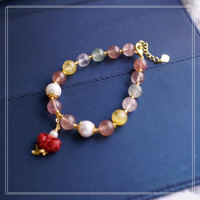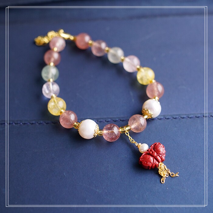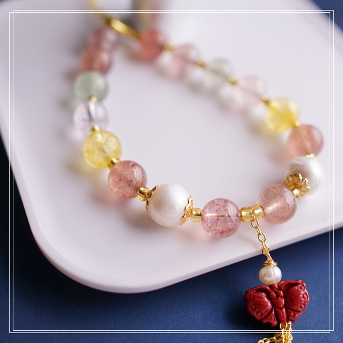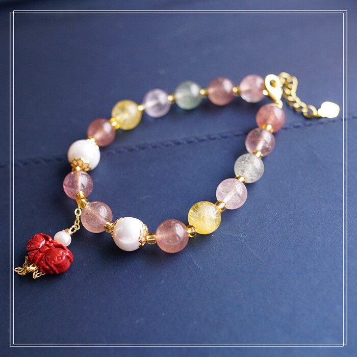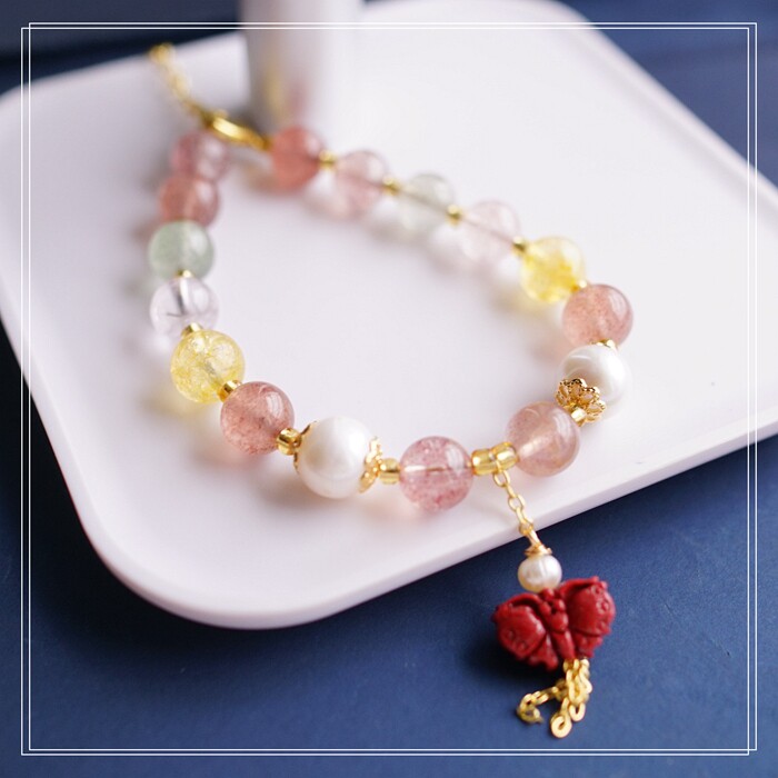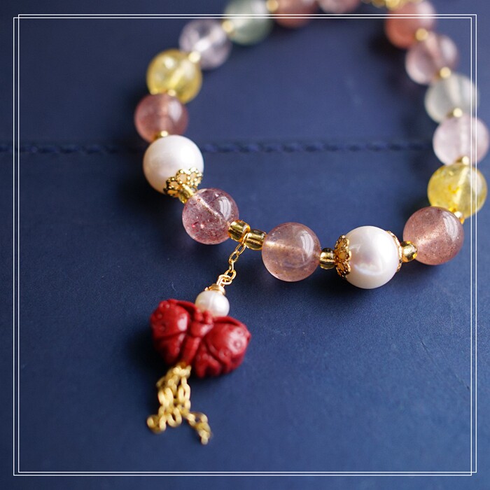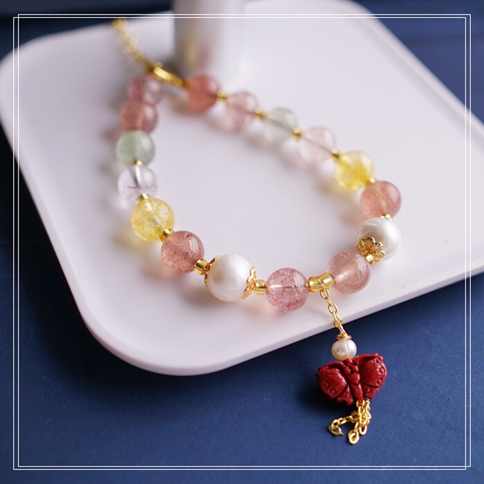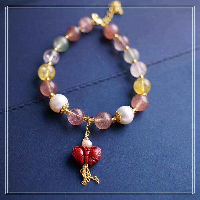 80#珍珠朱砂水晶 周長16+3CM 寬0.8CM 朱砂蝙蝠1.2*0.8CM