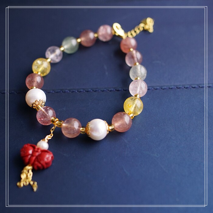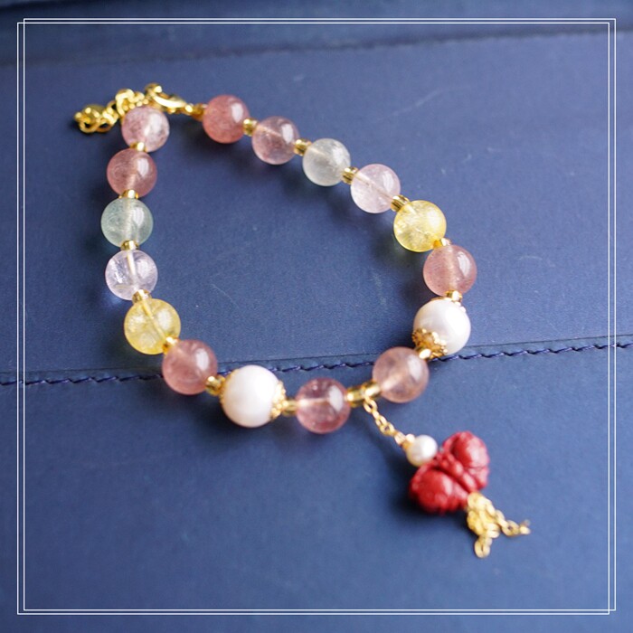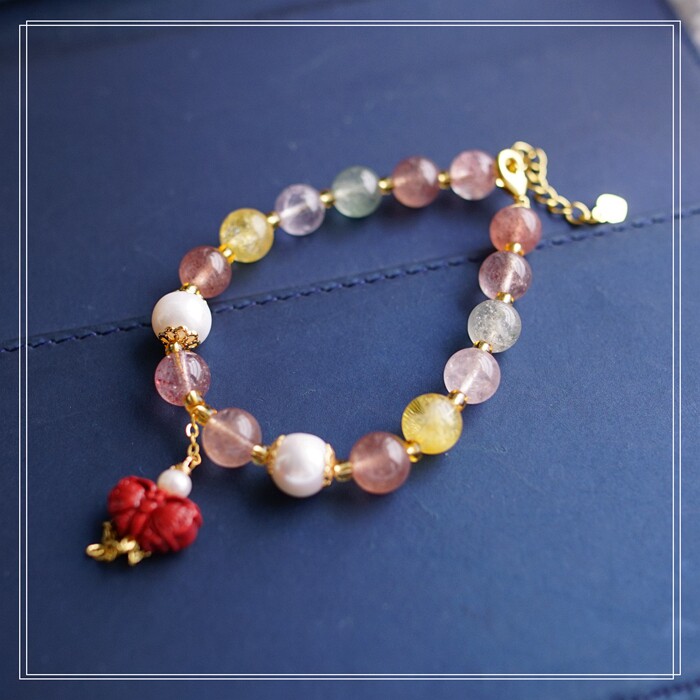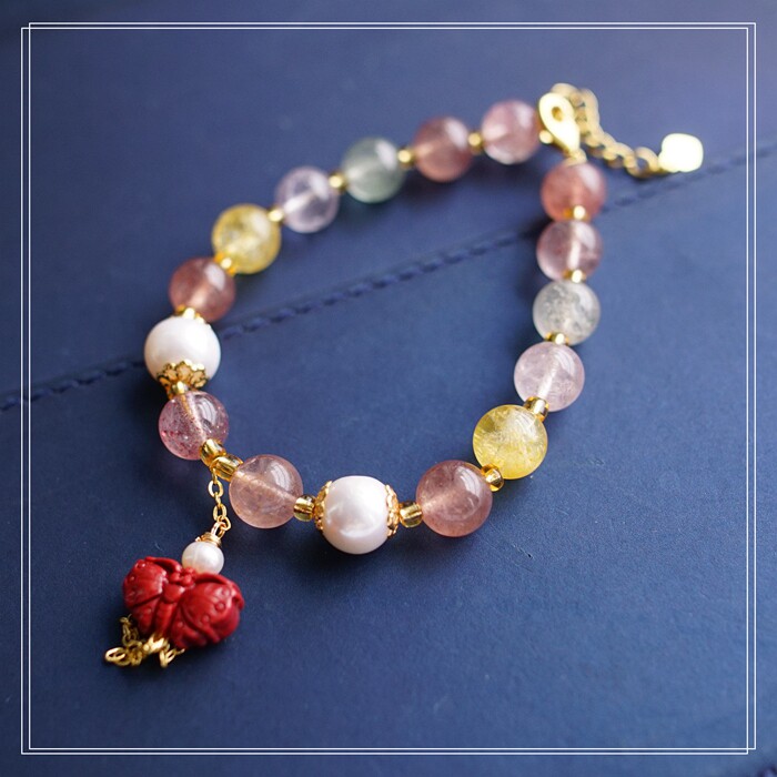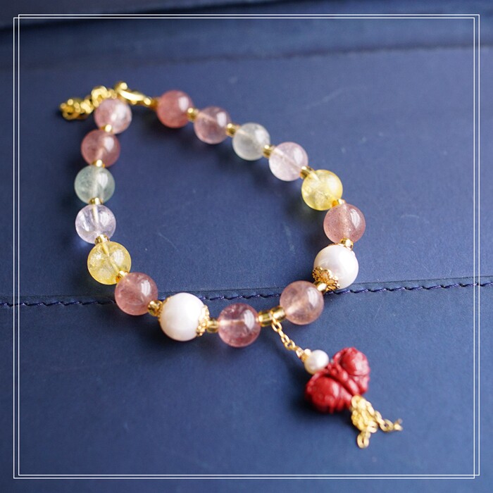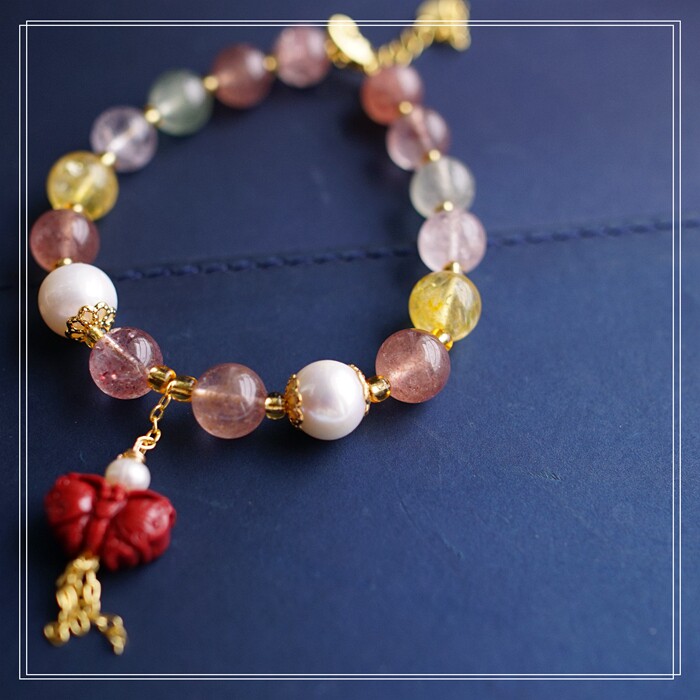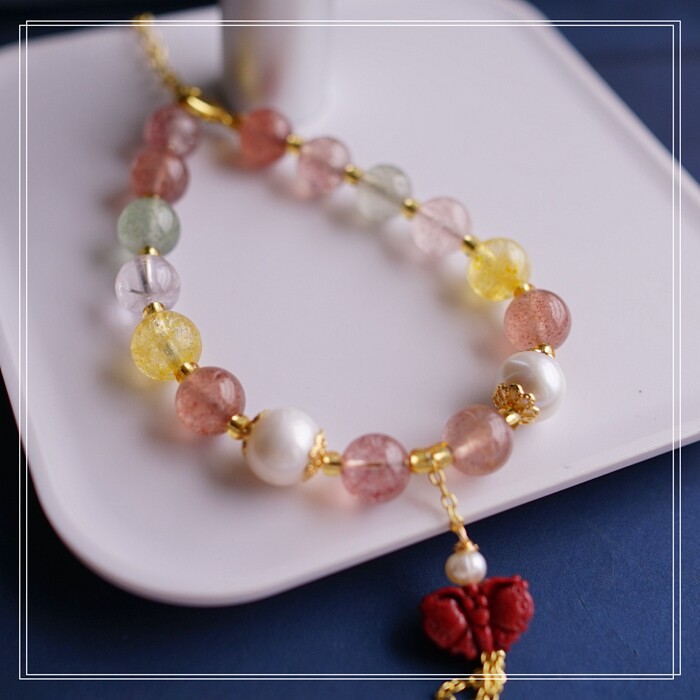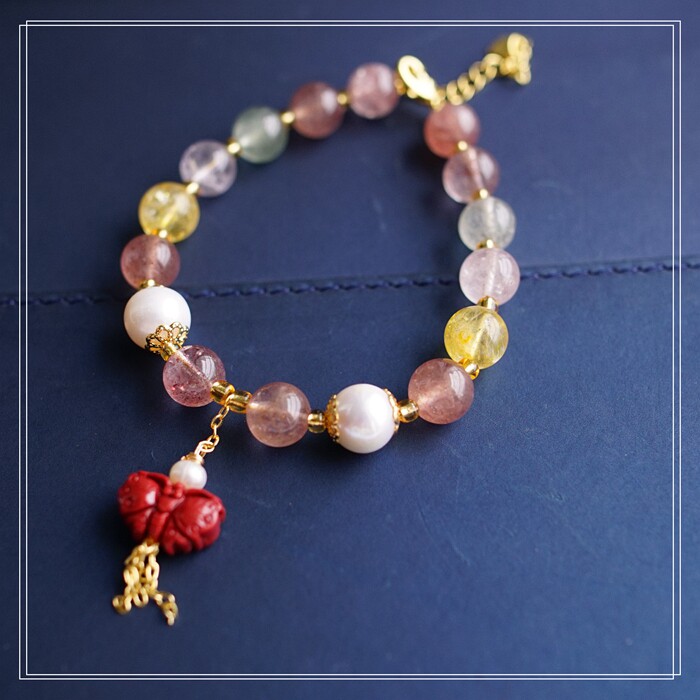80#珍珠朱砂水晶 周長16+3CM 寬0.8CM 朱砂蝙蝠1.2*0.8CM