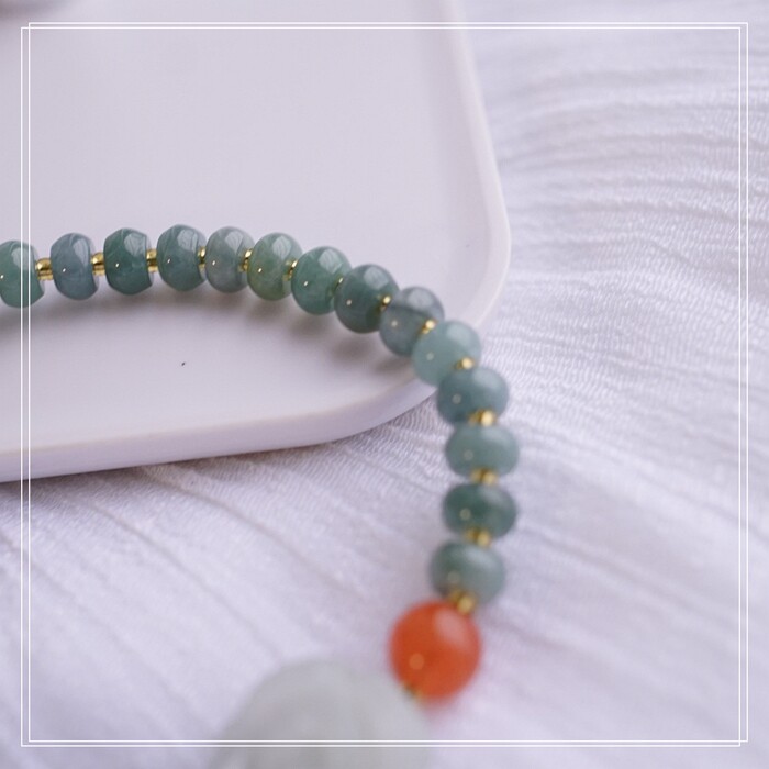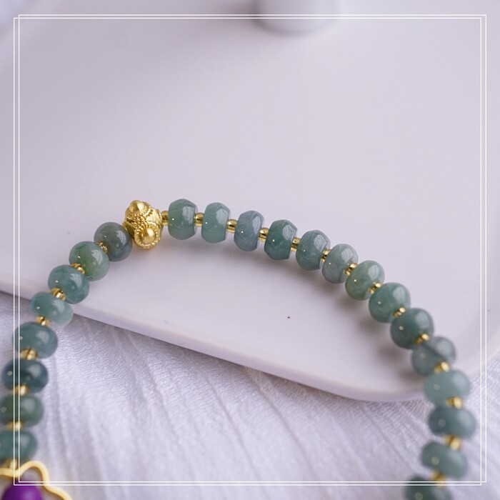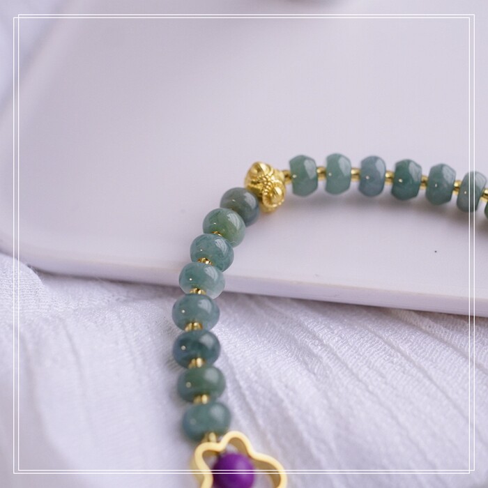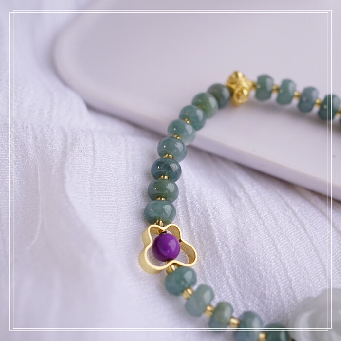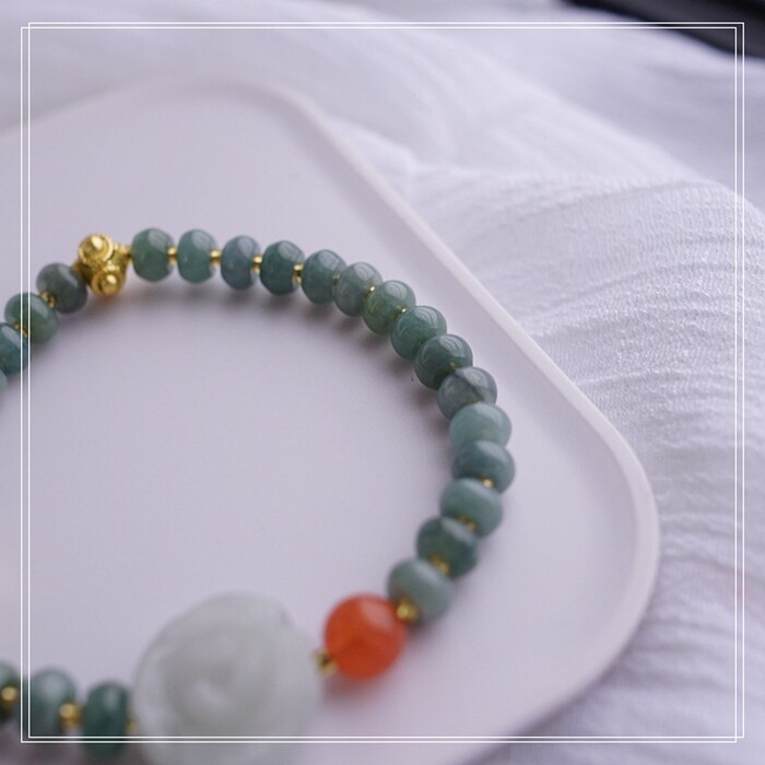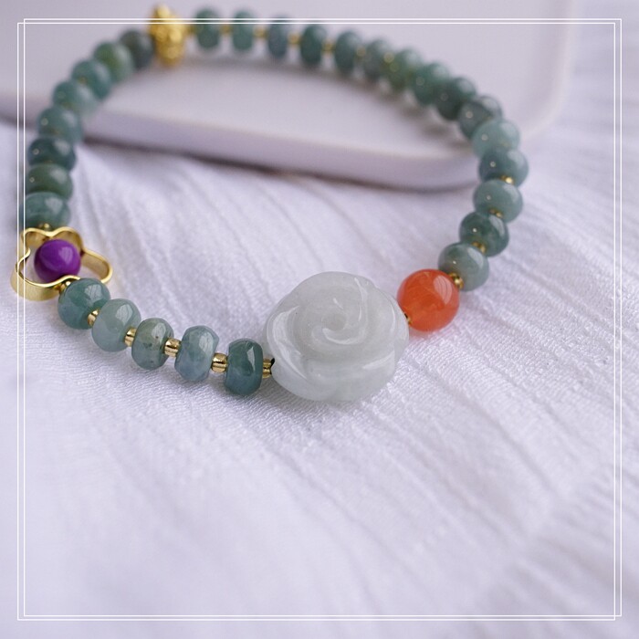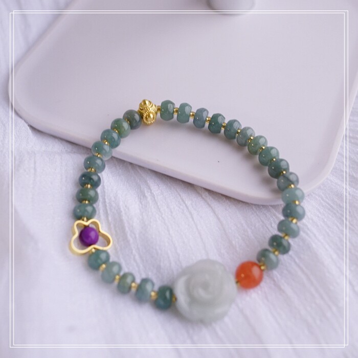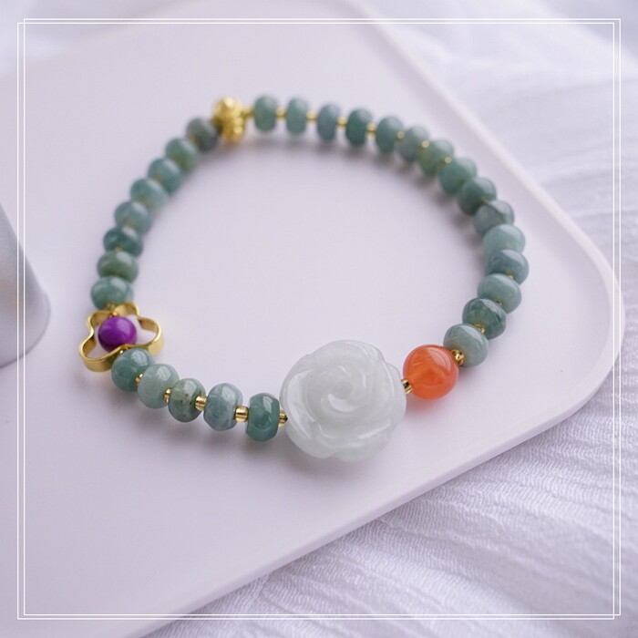 55#藍水翡翠手鏈 寬0.6CM 玫瑰花雕刻1.5CM 南紅瑪瑙紫玉