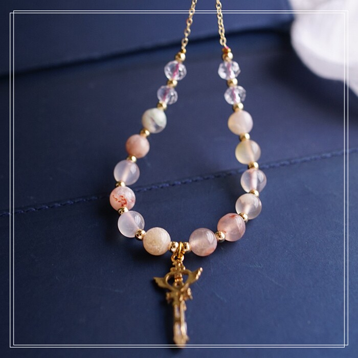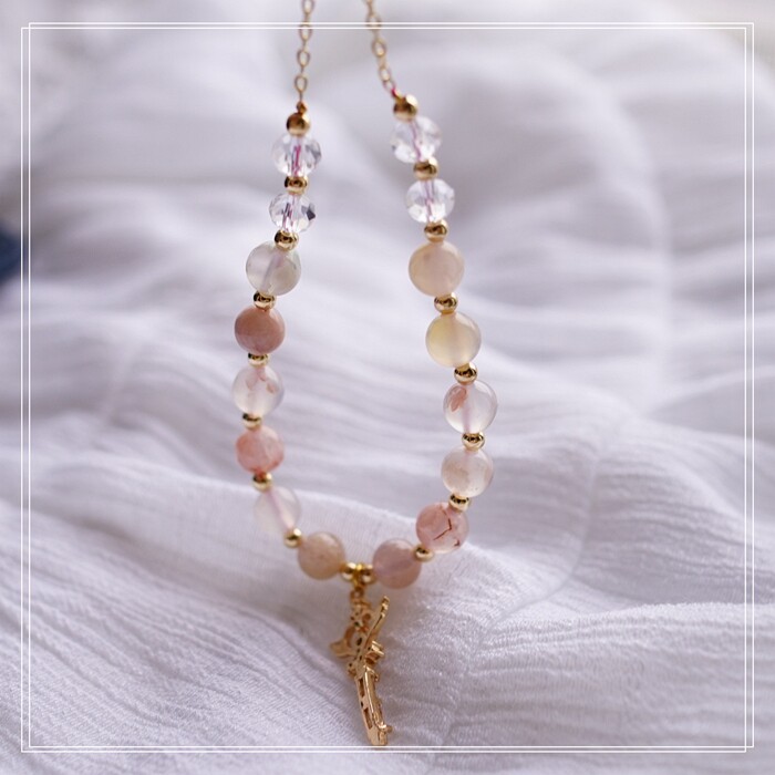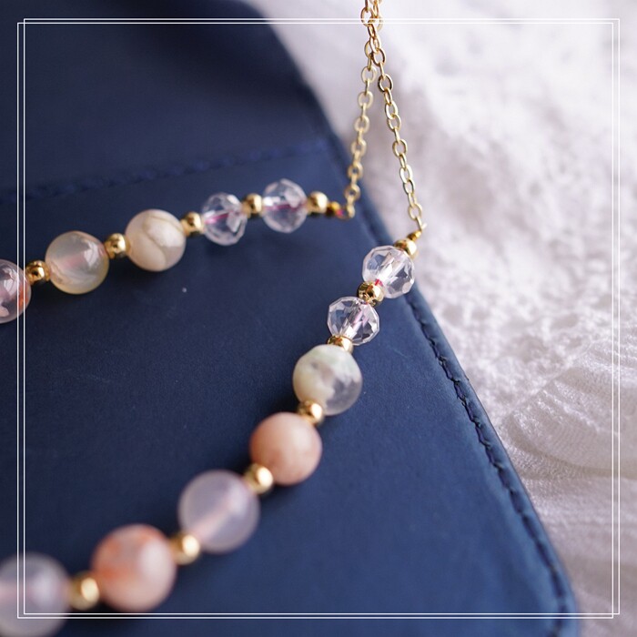 25#粉貝+淡水珍珠+尖晶