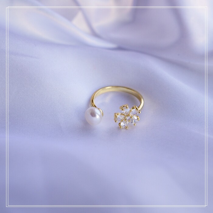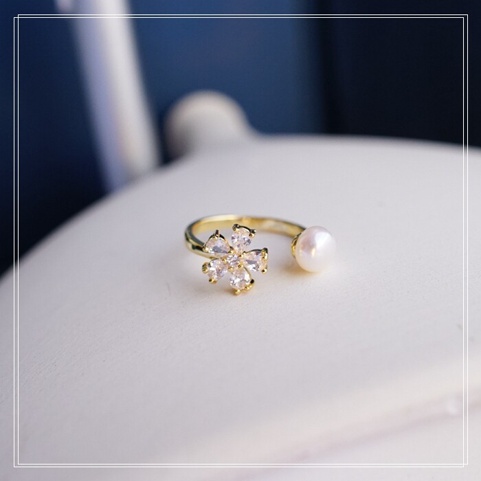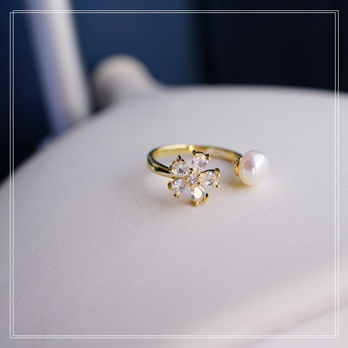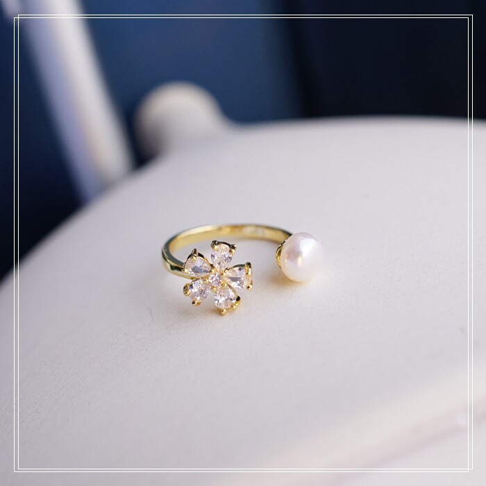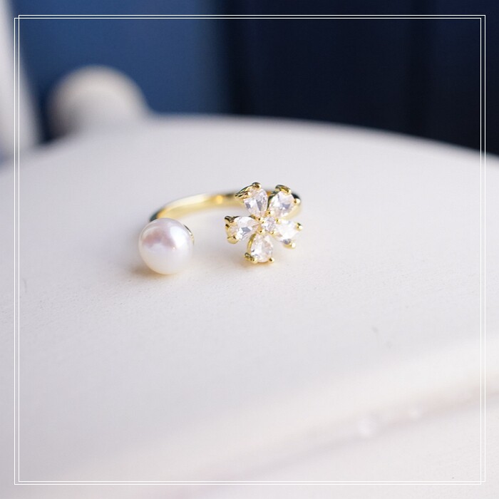 108#淡水珍珠戒指 淡水珍珠0.7CM 滿鉆花朵1CM