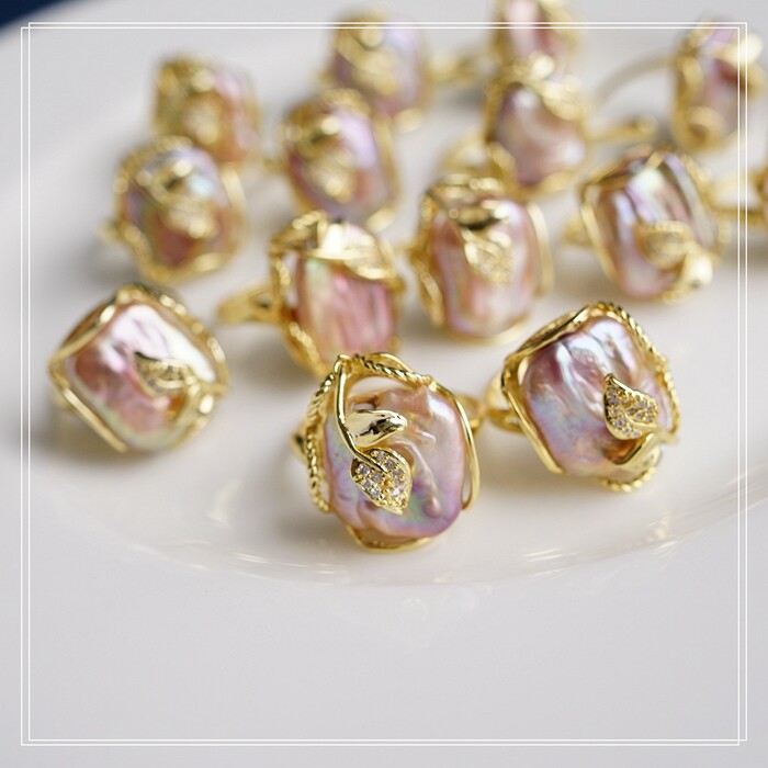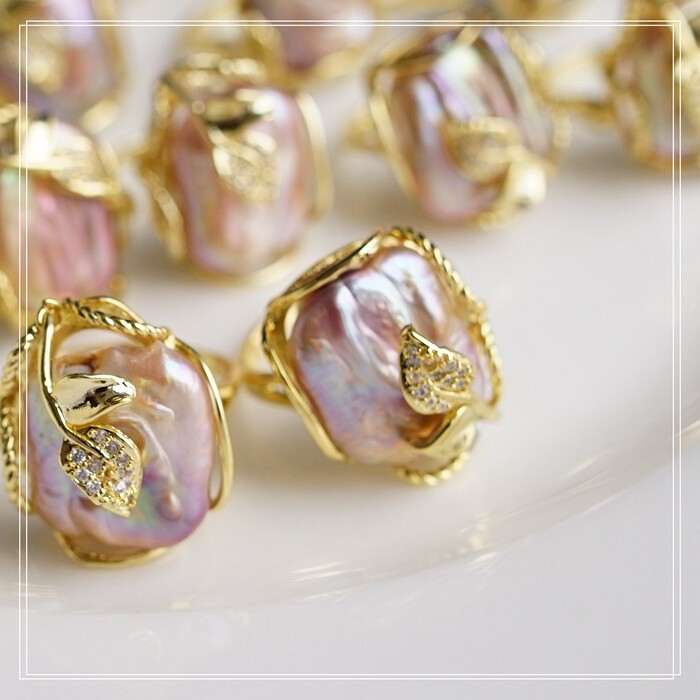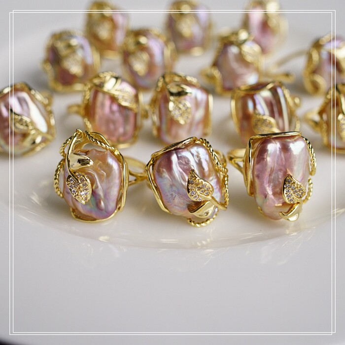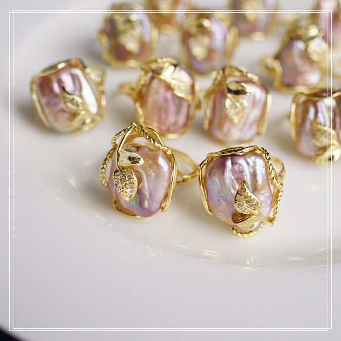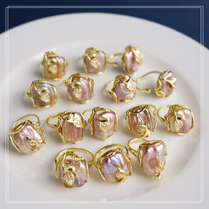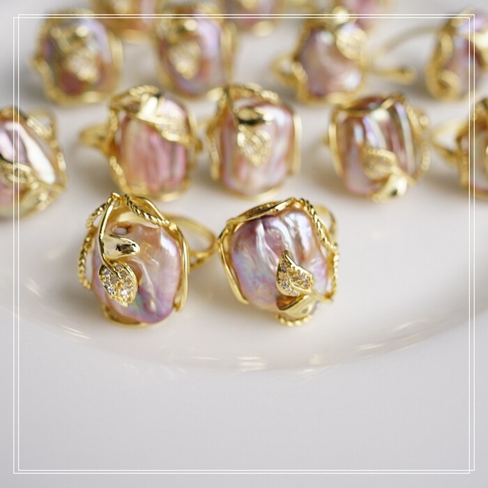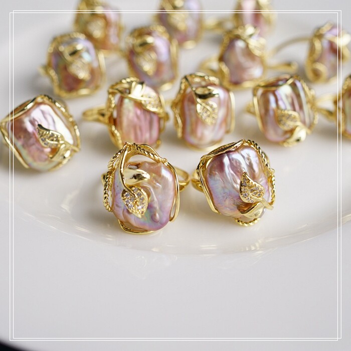 1#福利款 巴洛克淡水珍珠開口可調戒指(戒面約2CM)