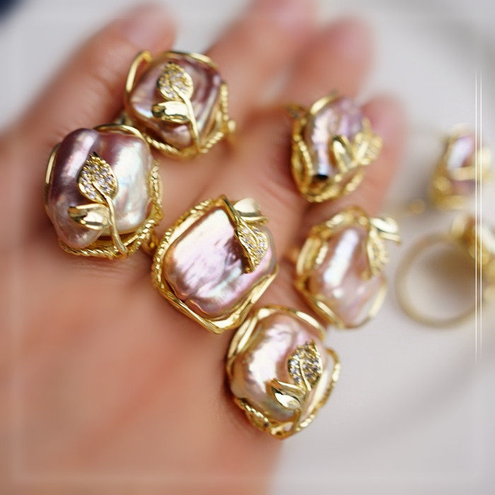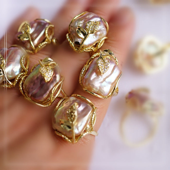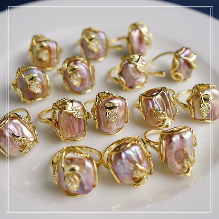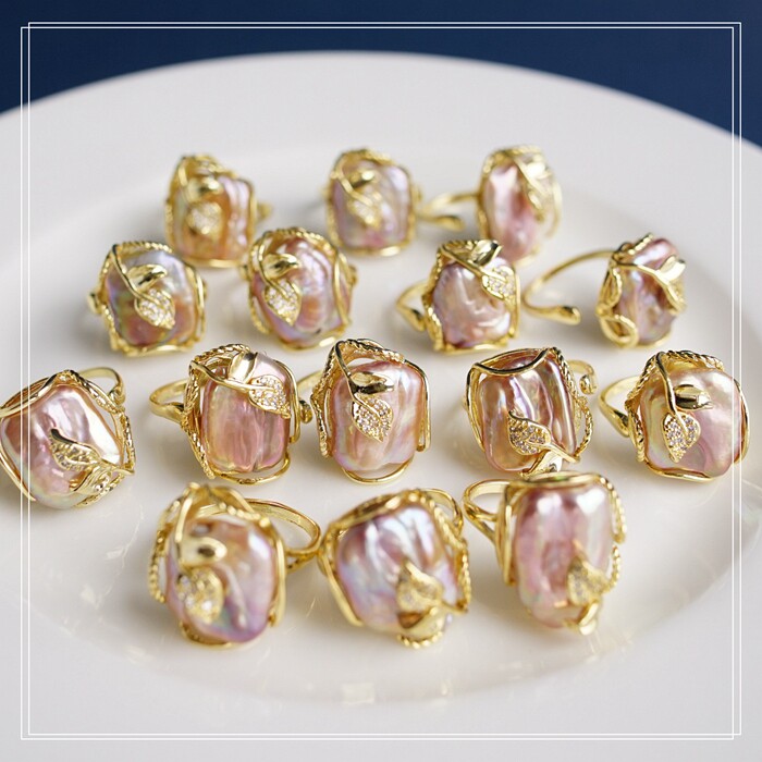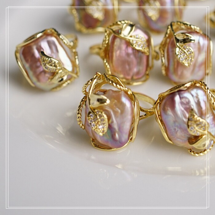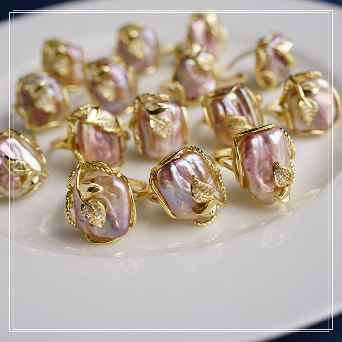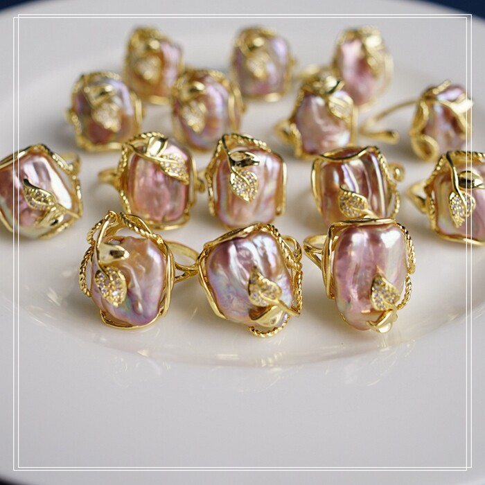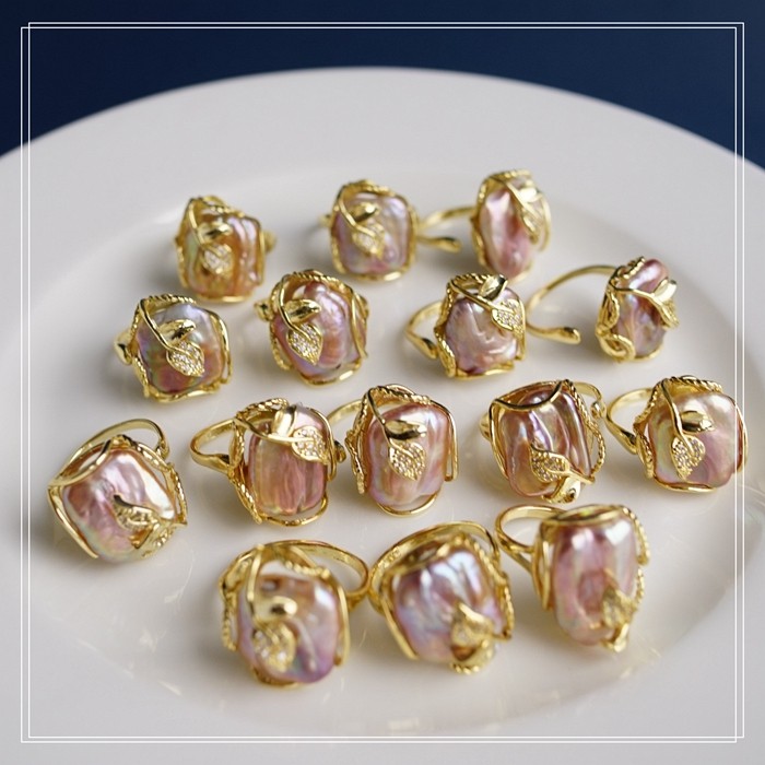 1#福利款 巴洛克淡水珍珠開口可調戒指(戒面約2CM)