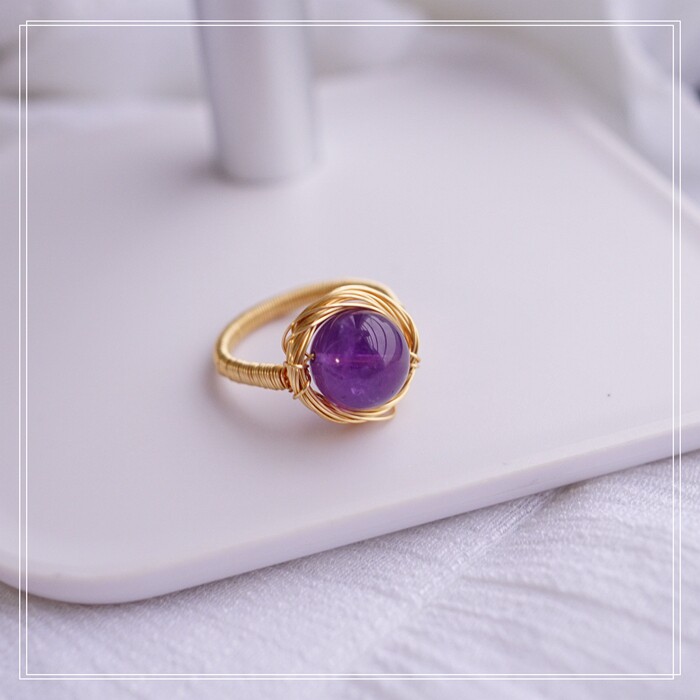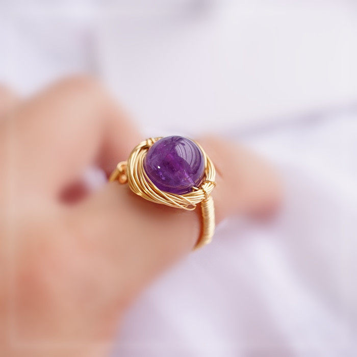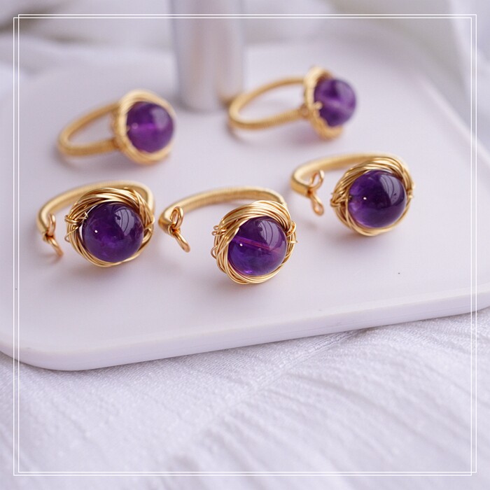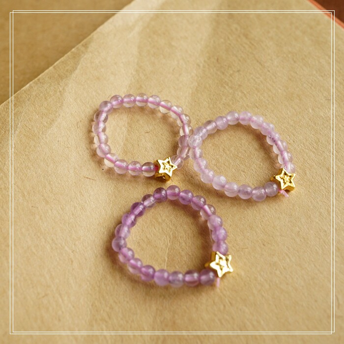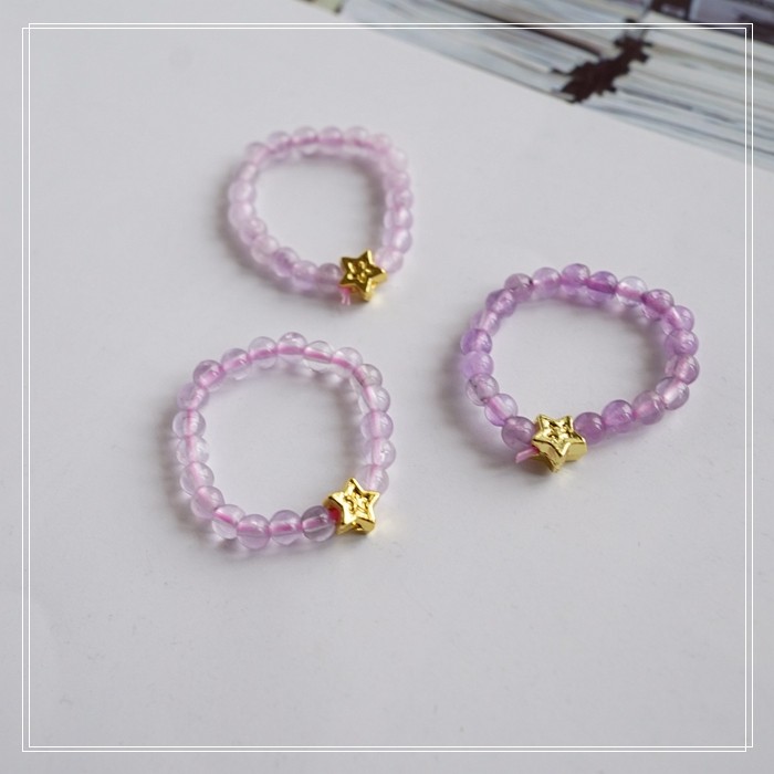 110#紫水晶彈力繩子戒指(一個的價格) 寬0.3-0.4 深淺隨機發貨
