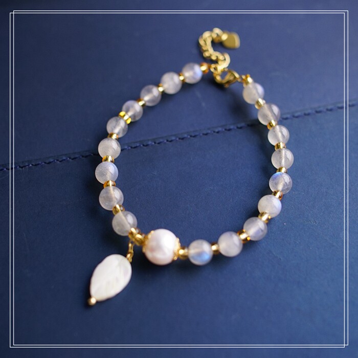 81#月光石 珍珠 周長16+3CM 寬0.6、0.8CM