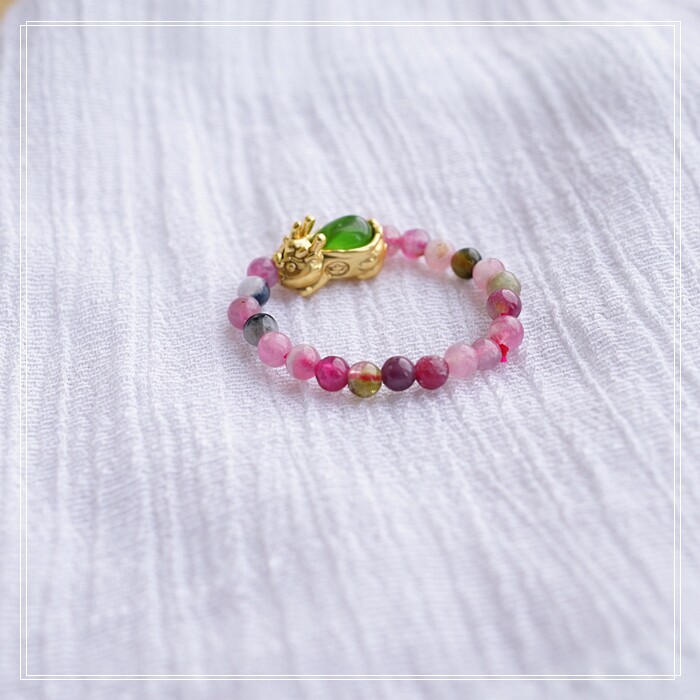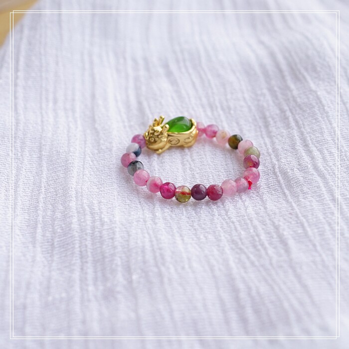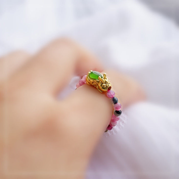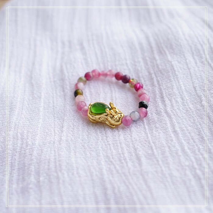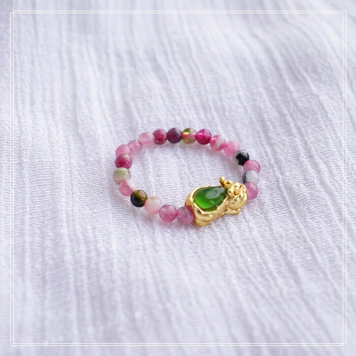 101#碧璽+貔貅戒指彈力繩( 一個價格) 碧璽0.3CM