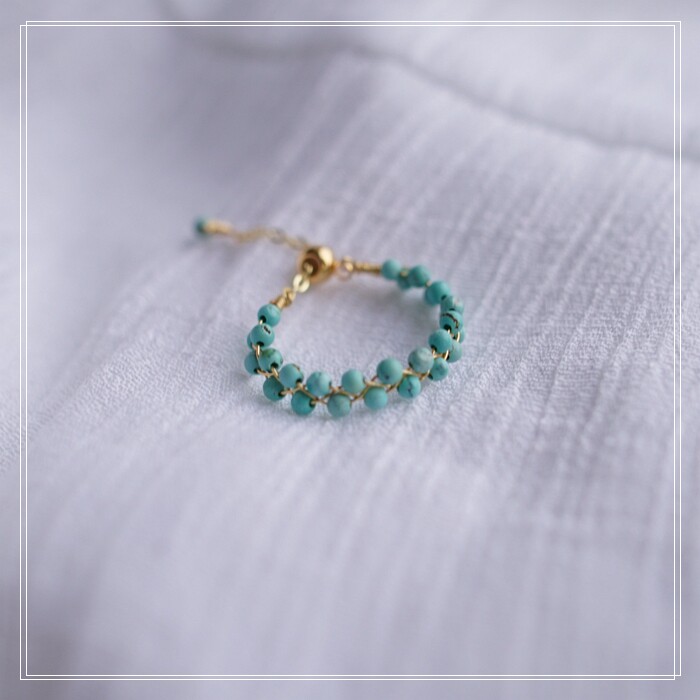 120#綠松石戒鏈 抽拉調節