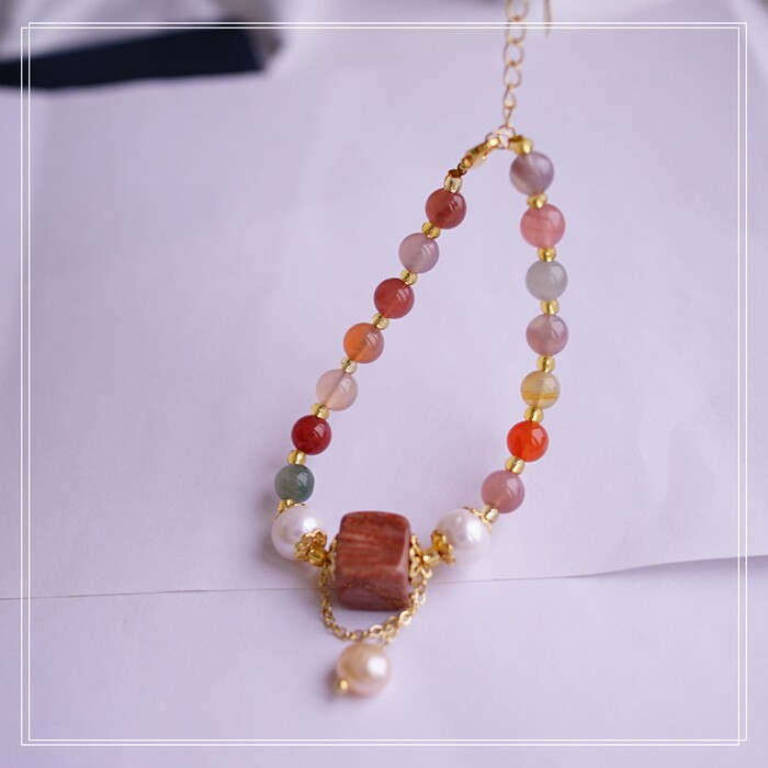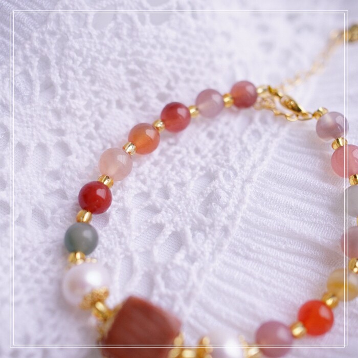 59#手鏈 瑪瑙+珊瑚玉 +淡水珍珠 周長16CM 延長鏈 5CM 寬0.6-0.8-1.2CM