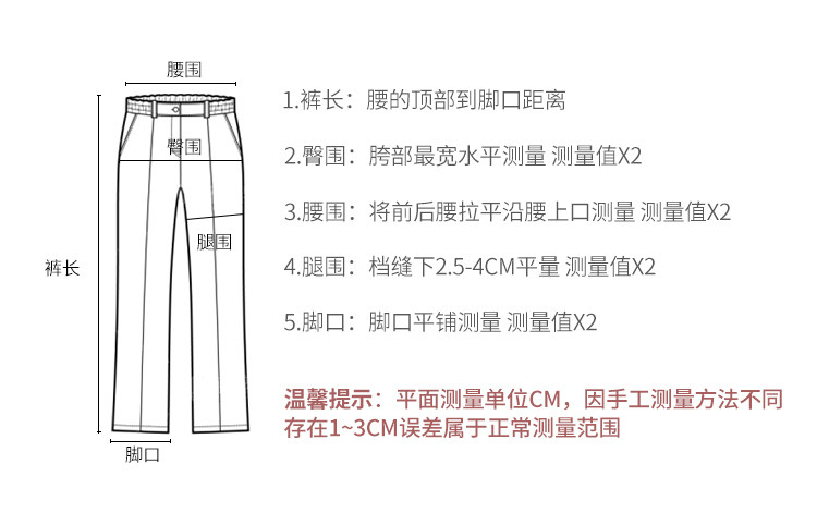 -Size/休閑褲尺碼手工測量可能存在1-2cm誤差,不作為退換證(單位:cm)