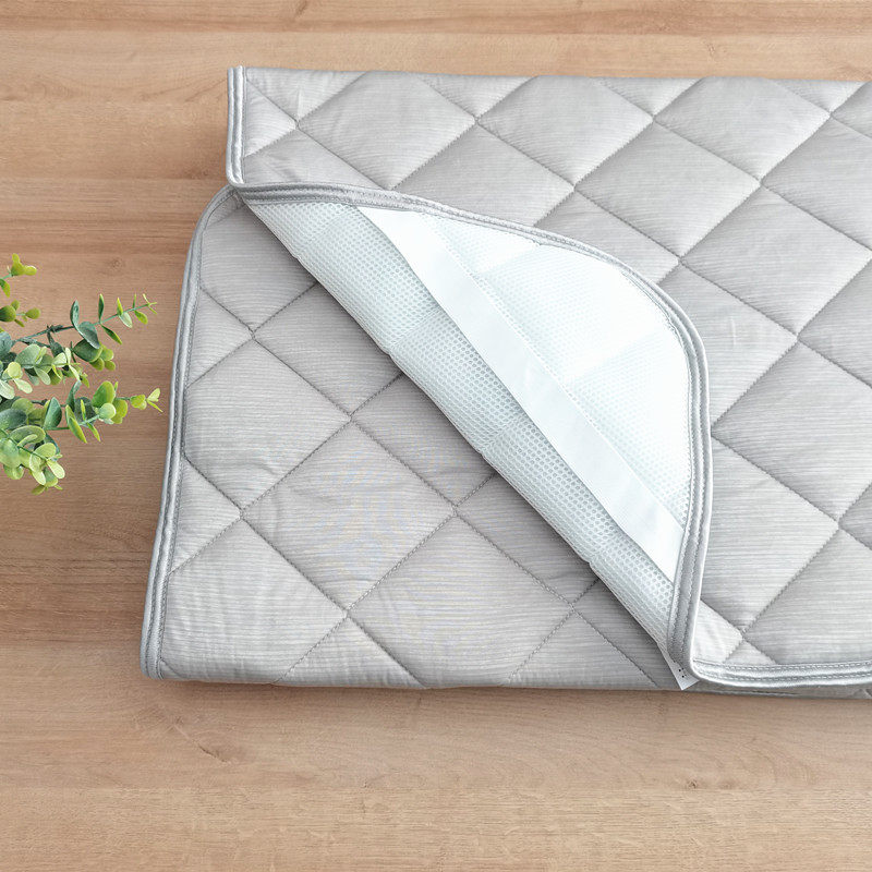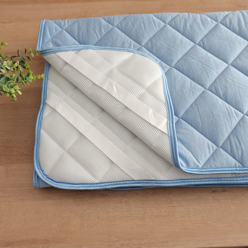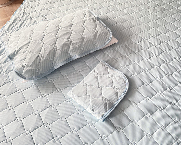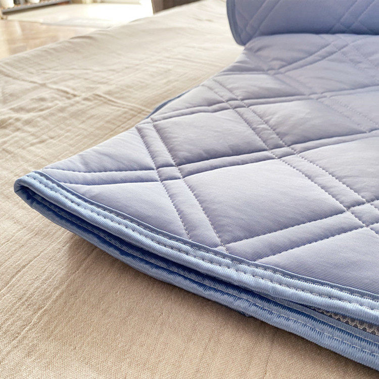 此款超冷感床墊是用出口日本外貿高端定制面料制作,面料特殊的設計肌理不粘身,直接貼身使用,透氣涼爽。是夏季優良的防暑超冷感軟涼席