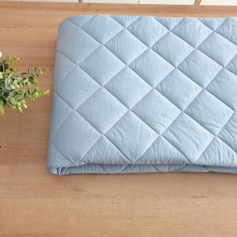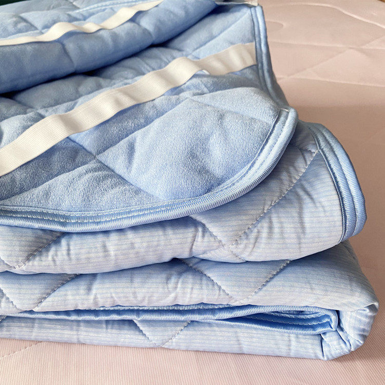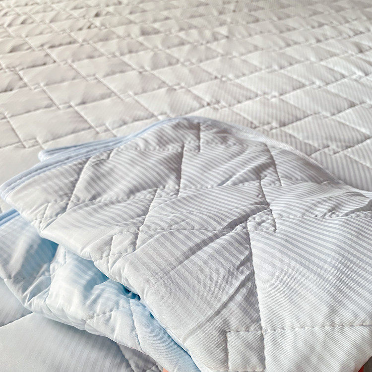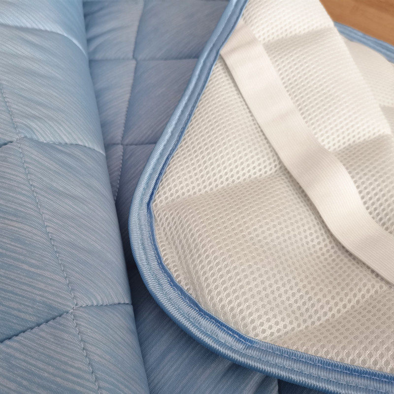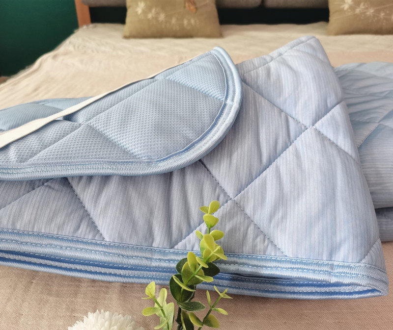 不同于市場的藍色條紋冷感床墊,這款的冷感度和紗線配比更優質,紗線含有日本進口超冷感PE紗線,比較高端,手感更加順滑,冷感度更加強大。可以瞬間降低體溫5度左右,品質優秀
