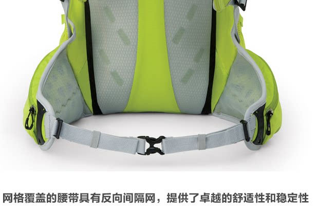 帶彈力網紗的腰帶包、結構采用開孔泡棉覆蓋網紗。改良的直拉式ErgoPull腰帶系統,讓跑者輕松穿戴。
