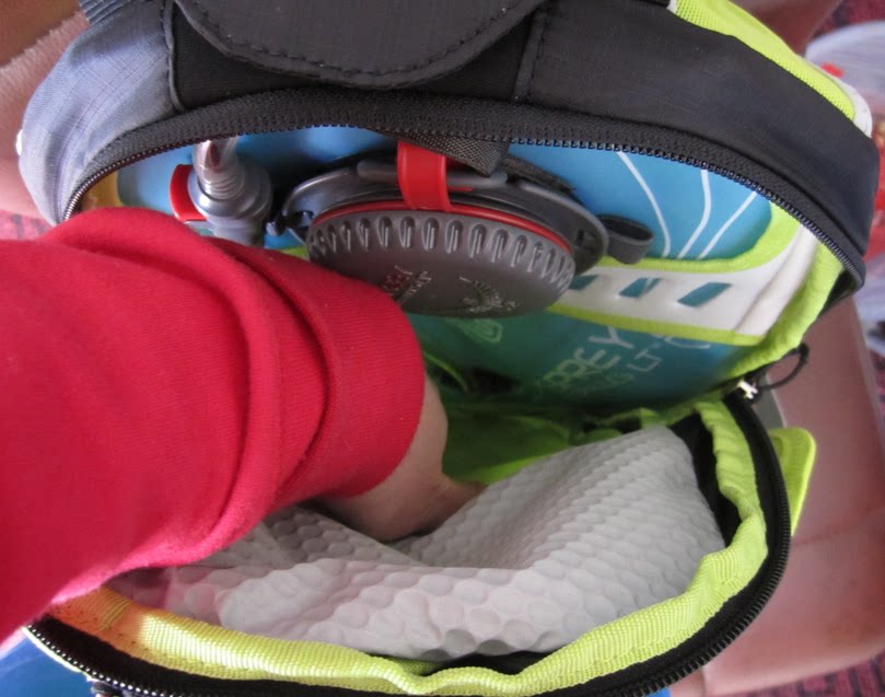 此時的背包穿了一件男士短袖和一件男士厚的衛衣運動褲后還有點容積放置小雜物(水袋沒有灌水情況下)
