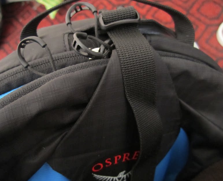 如果鞋子放入后用這個伸縮繩子拉緊可以更好的固定背包。使背包的運動中更穩固