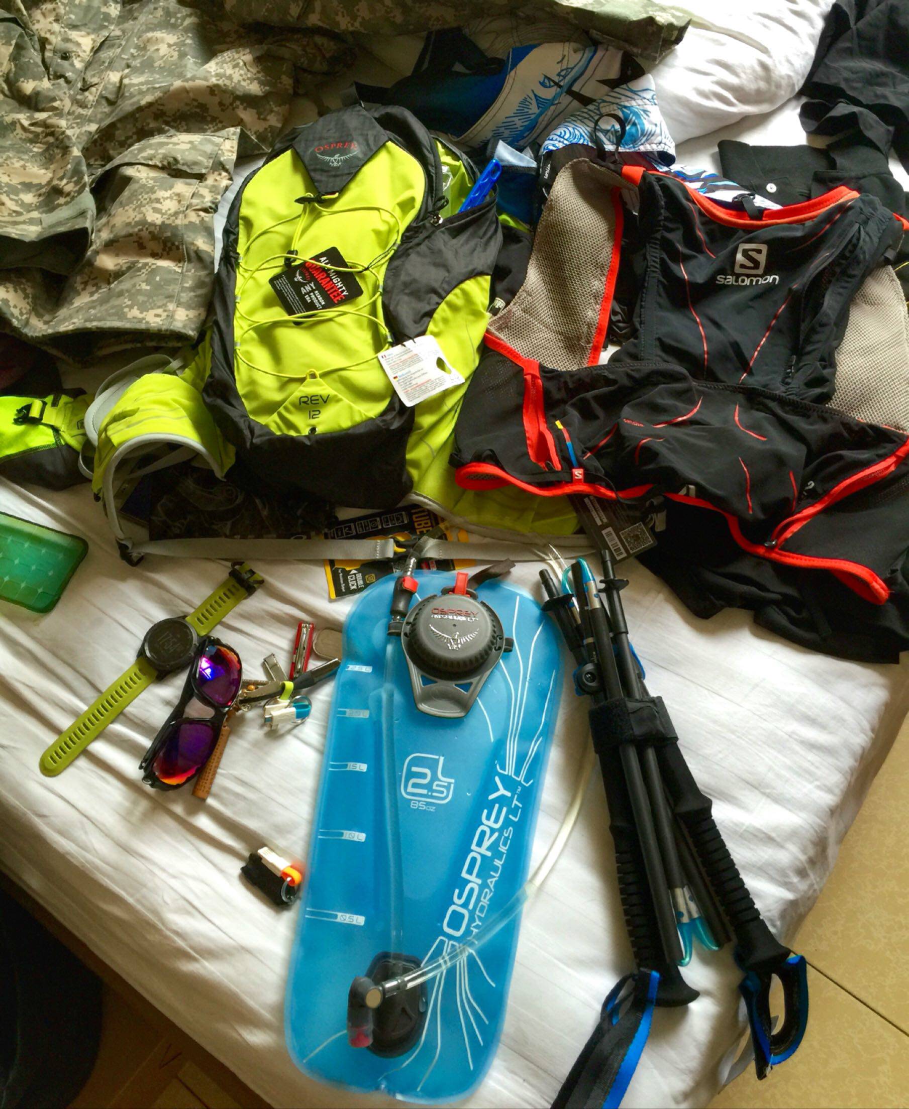 穿越裝備:羽絨服、皮膚風衣、沖鋒衣(薄)、護小腿、護臂、腰包、X-上衣、短褲、速干褲、換洗T恤、彈力褲、手電、眼鏡、帽子、雨褲、相機、救生毯、彈力紗布、路餐若干。。。