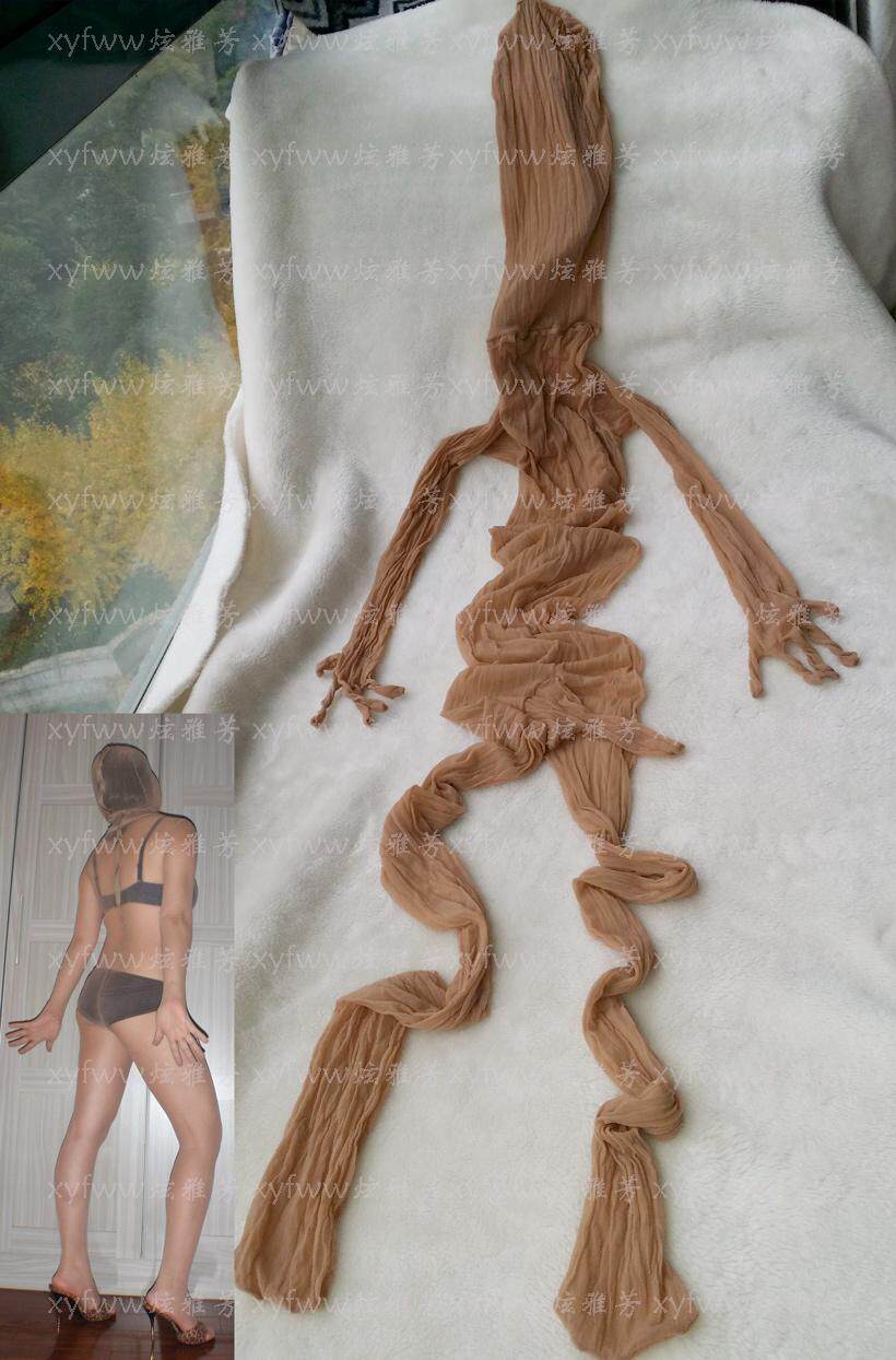 【顏色款式厚度】20d包芯絲全透明全包不開襠帶頭套手指男士連身襪。