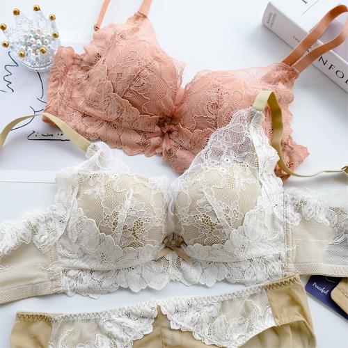法式蕾絲小胸變波霸聚攏上薄下厚收副乳內衣套裝無鋼圈私房文胸罩