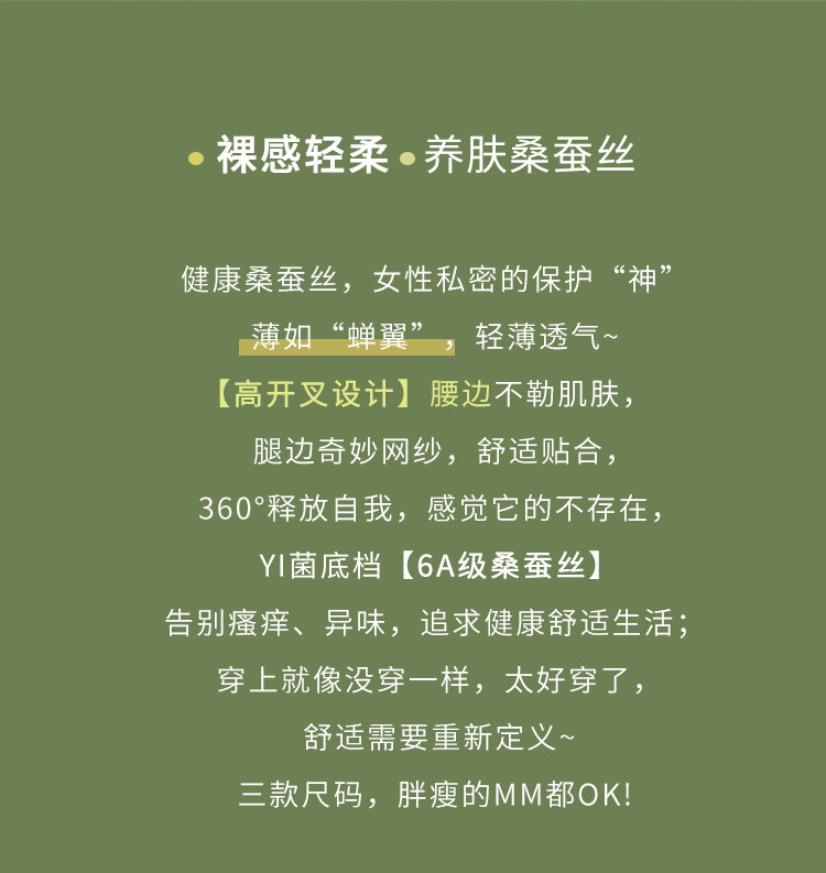 “100%蠶絲襠 輕薄無感 自由呼吸不悶汗”