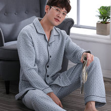 秋冬新款男士純棉絨布睡衣套長袖長褲家居服套裝氣質款
