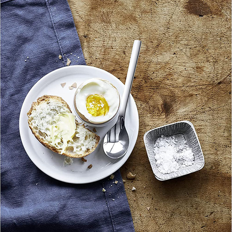 比通常的咖啡勺稍小,但有一個更緊湊、更圓的勺頭,可以很好地適應蛋殼的弧度,挖取蛋白蛋黃;