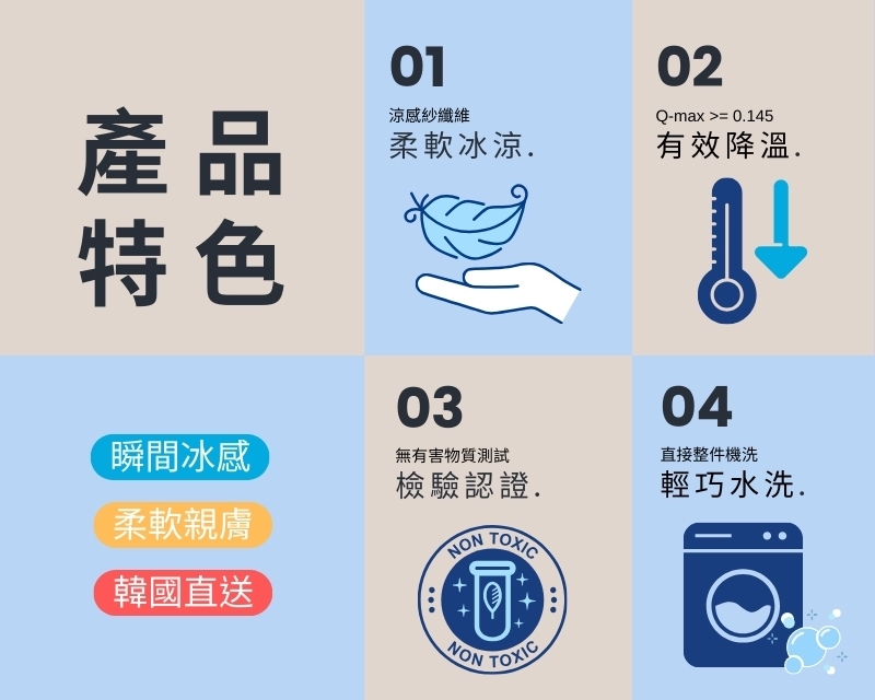 ◎本產品宣稱之涼感及降溫效果係根據代理商提供韓國紡織檢測所測試報告,惟涼感效果依個人感受有所不同。