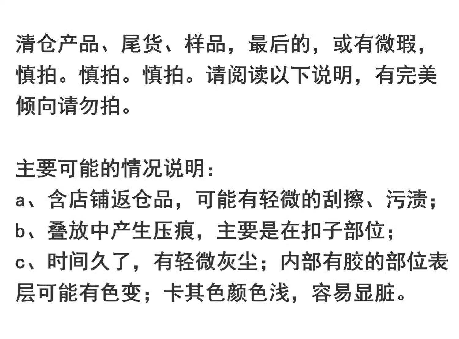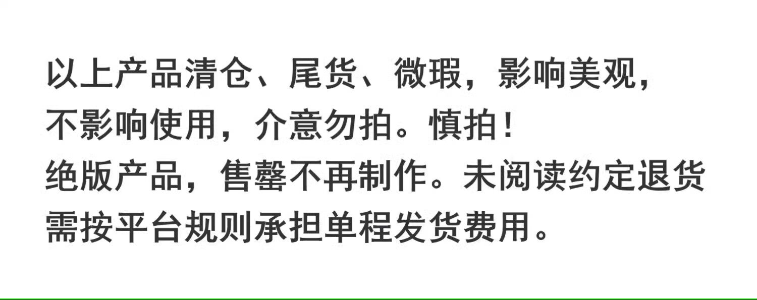 若商品存在瑕疵,請於簽收後7日內提出申請,並提供全程拆封錄影作為依據。商品是否為瑕疵將由廠商最終確認。運輸過程中的輕微碰撞痕跡不影響使用,不屬於瑕疵範疇。