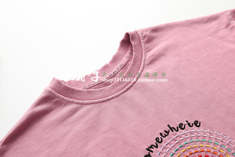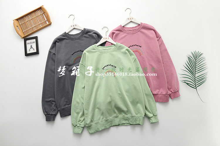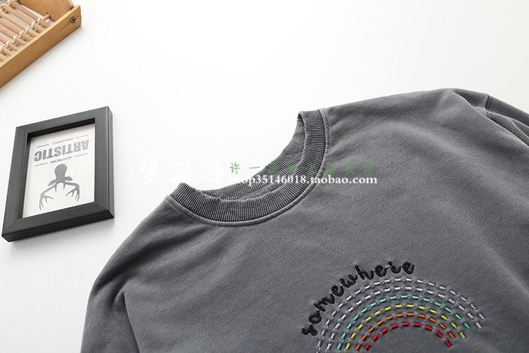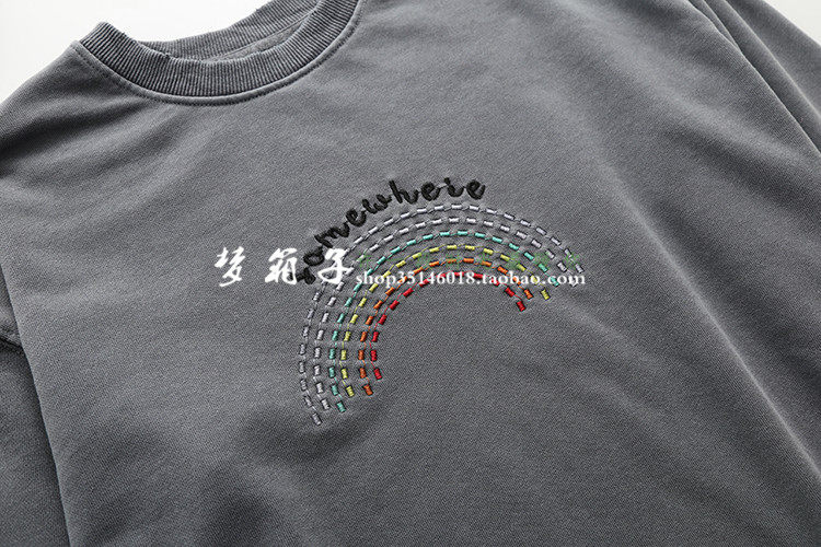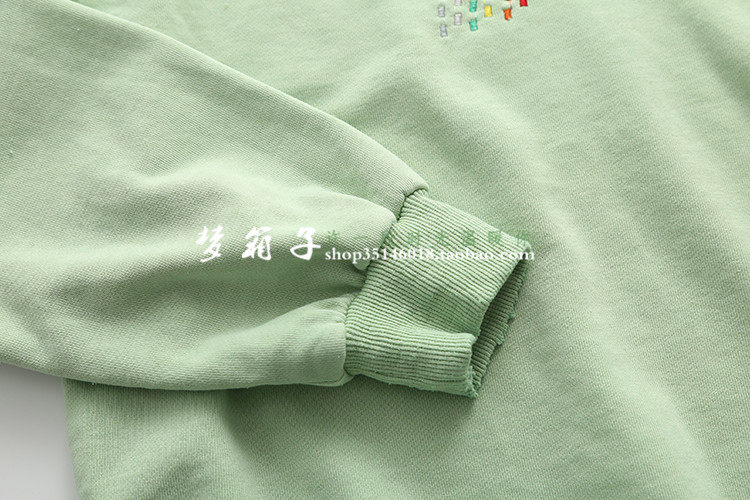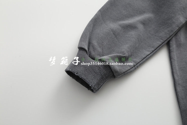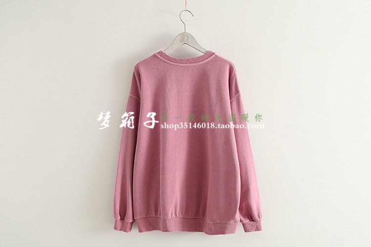 領口袖口及下擺磨破設計,圓領套頭寬松休閑款