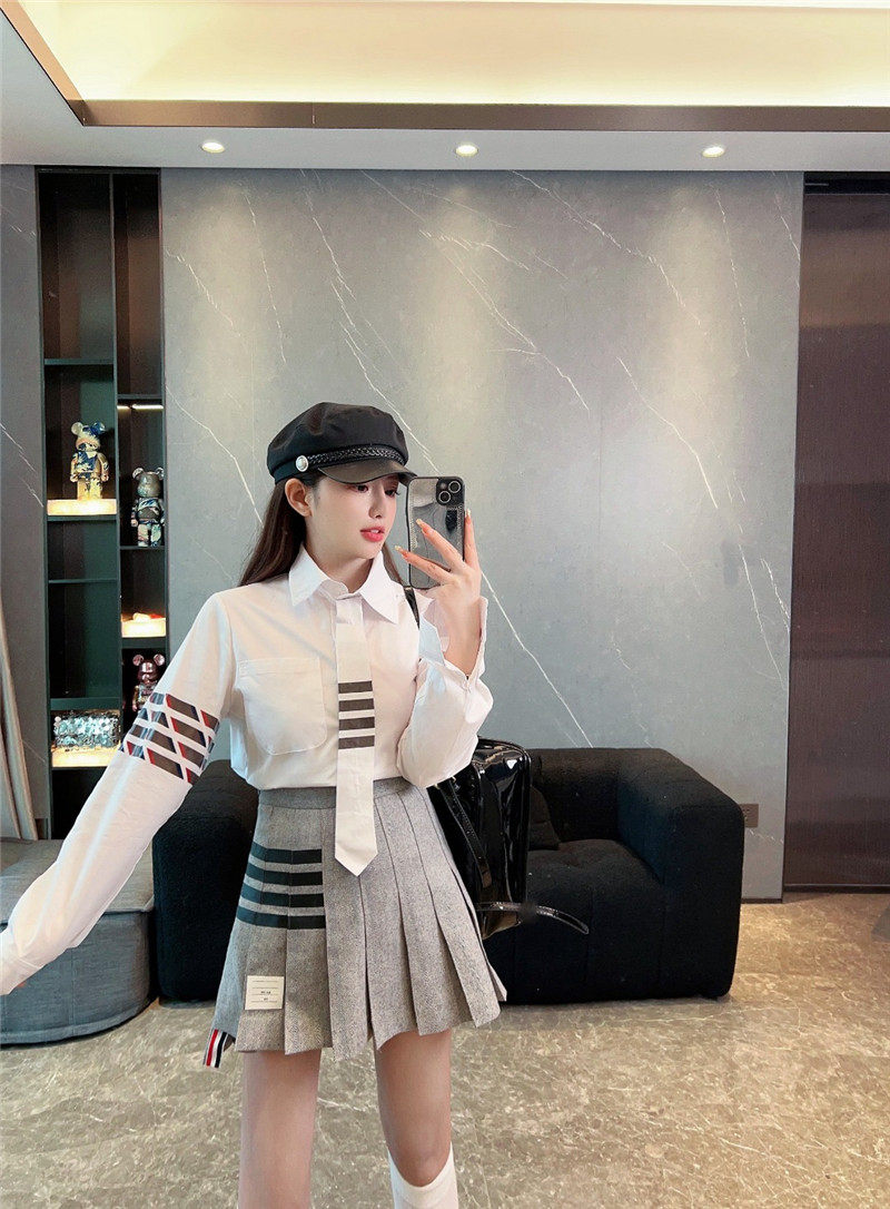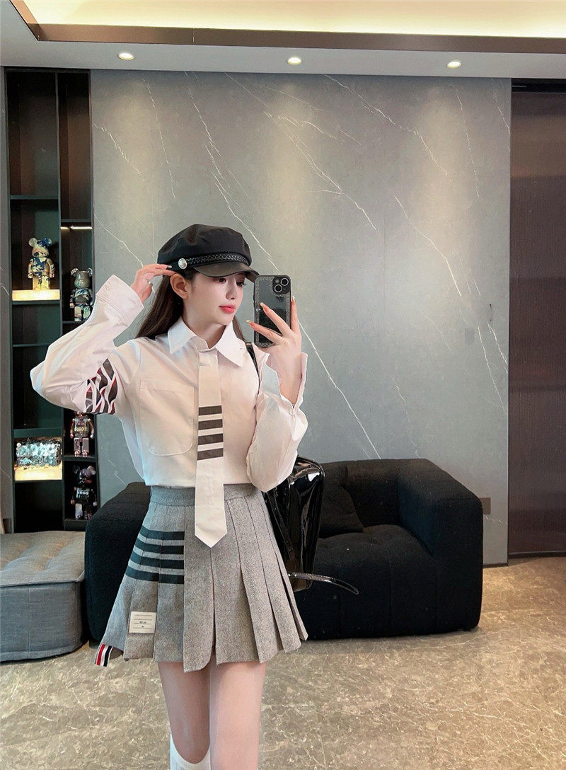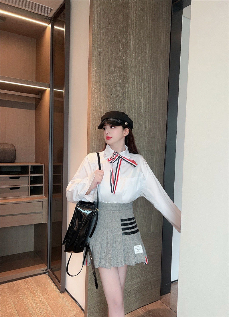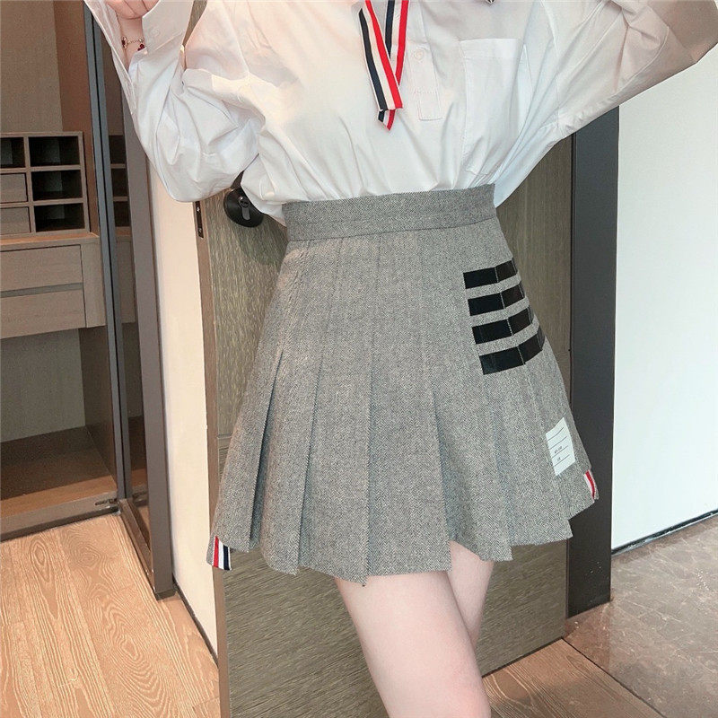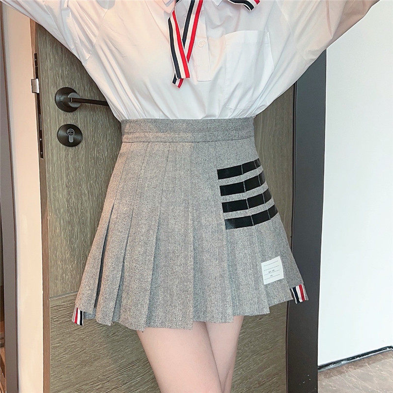 前短后長的百褶裙,
