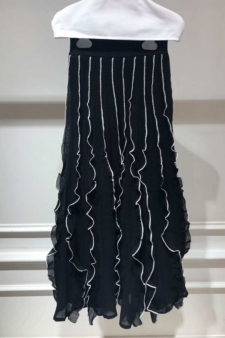 法式浪漫飄逸撞色立體荷葉邊針織半身裙